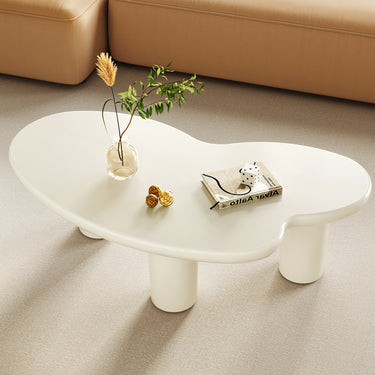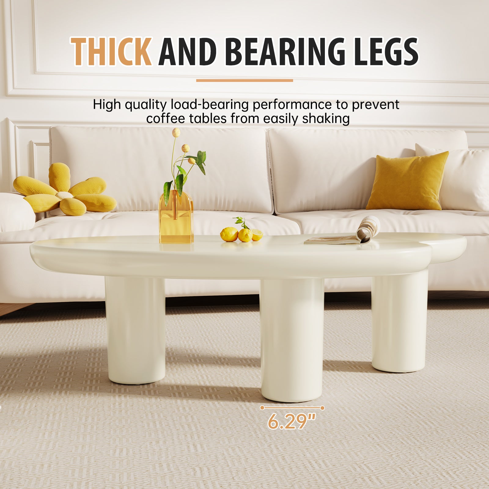 Guyii 42.24" Cream White Cloud Coffee Table, Irregular Modern Table with 3 Legs