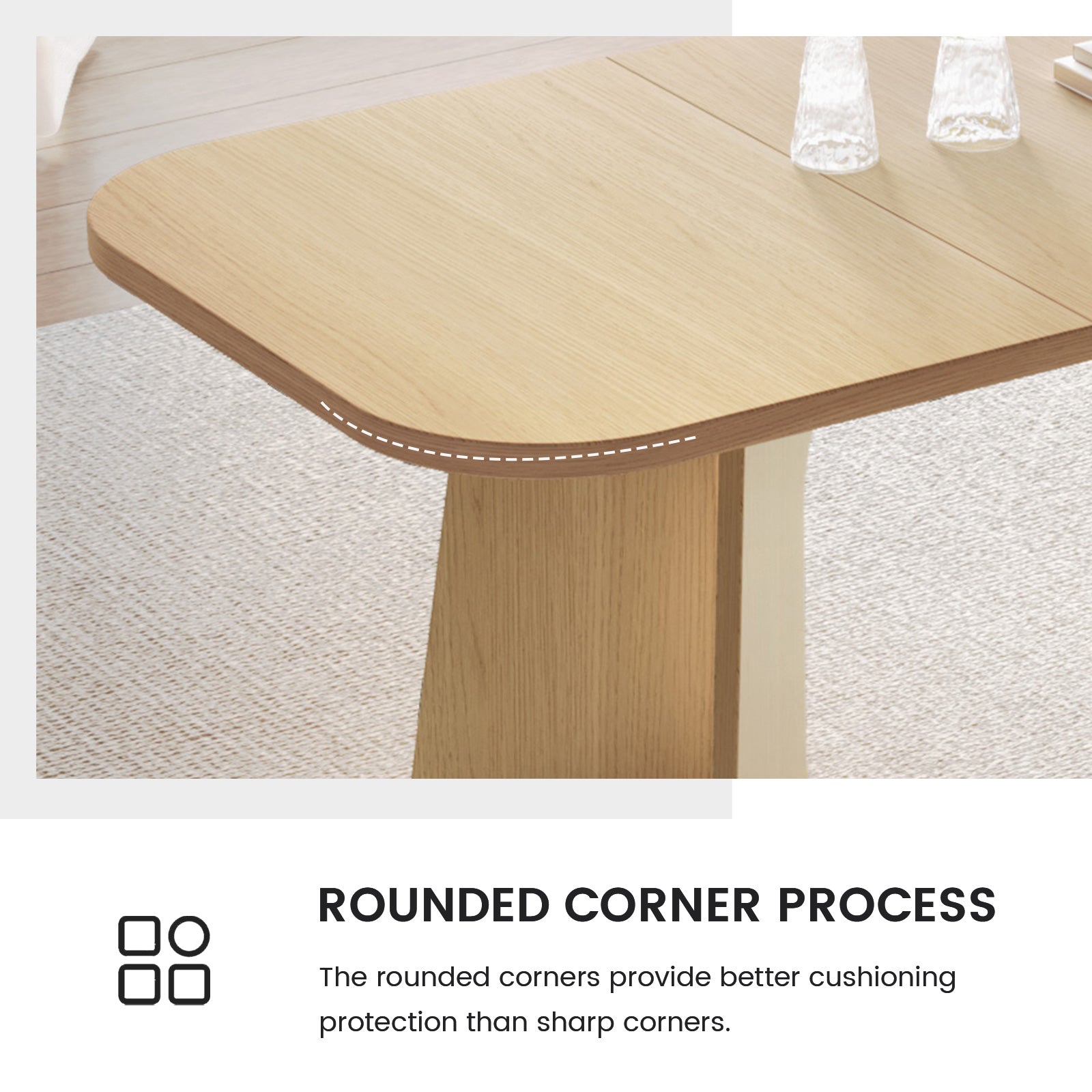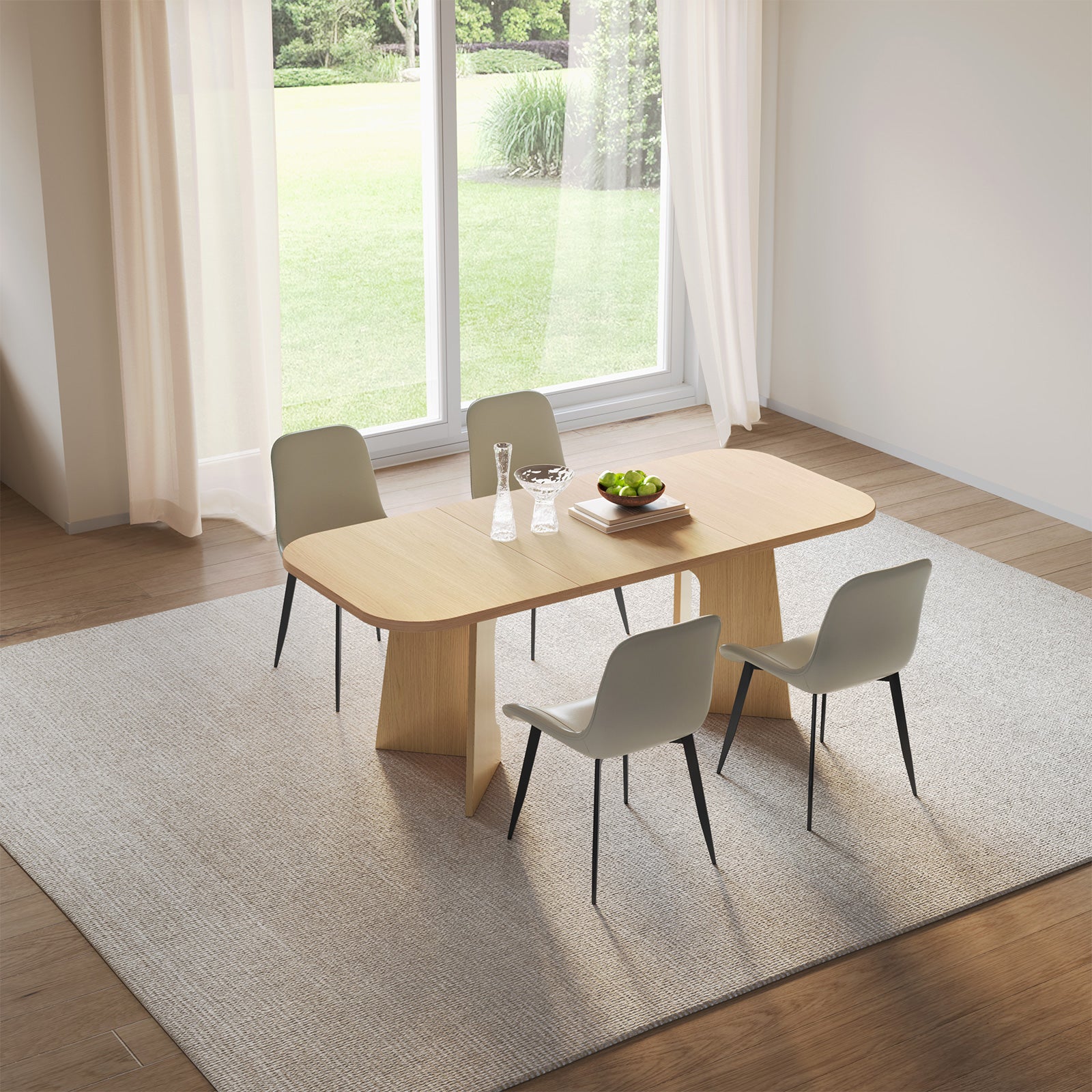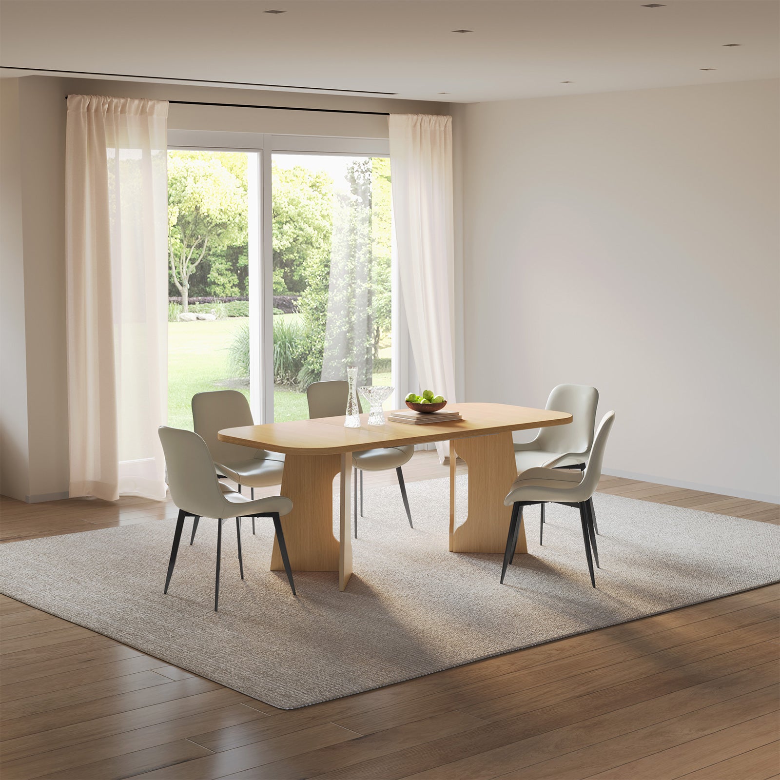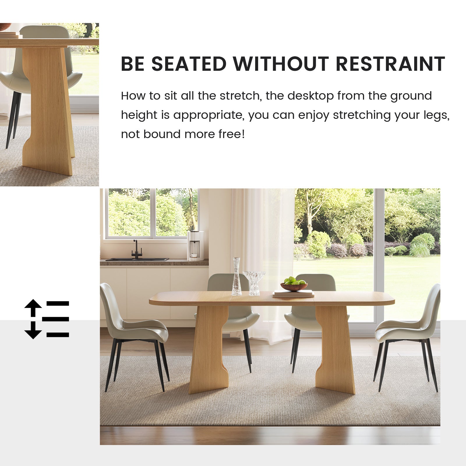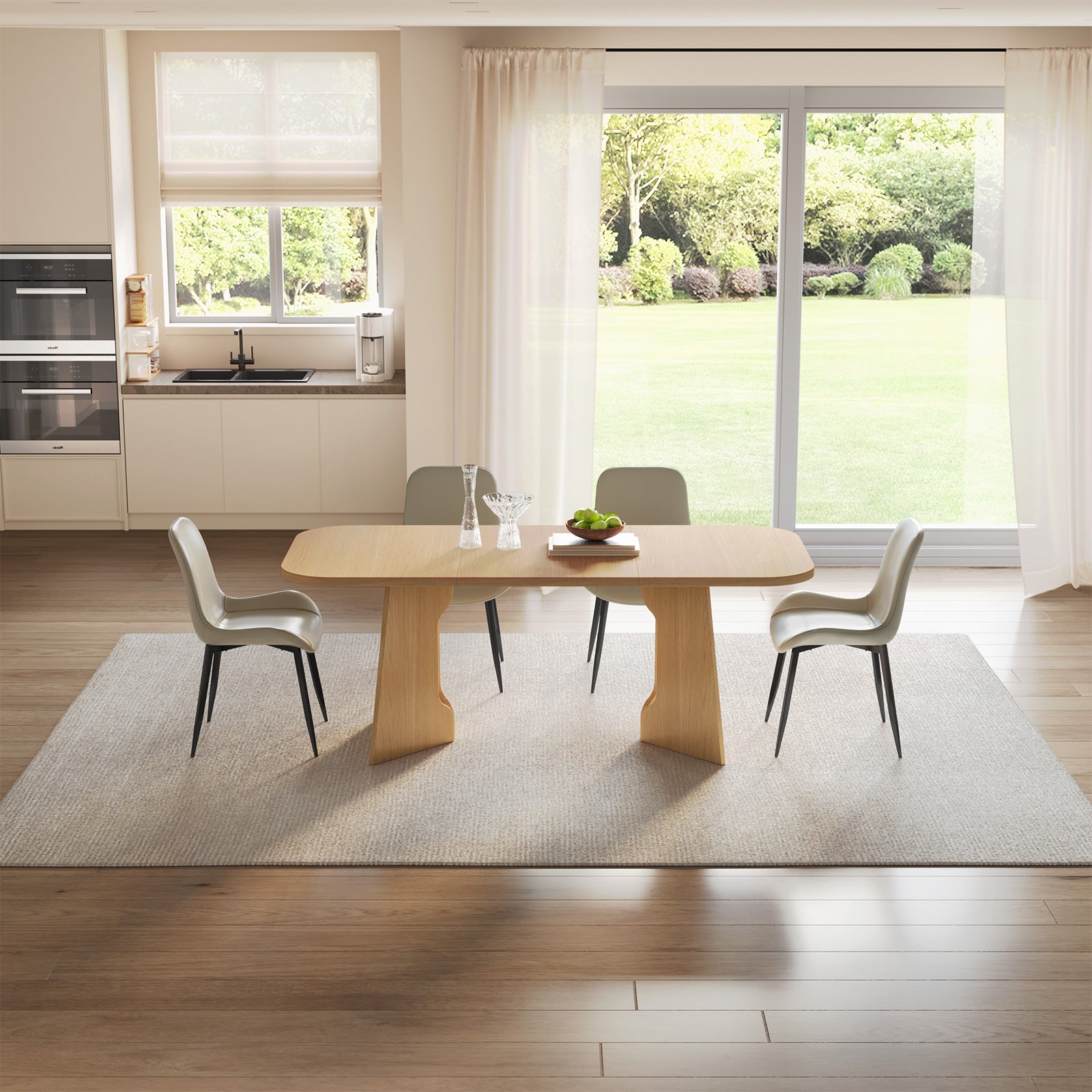 The natural wood finish and clean lines create a farmhouse aesthetic that blends rustic warmth with modern sophistication. Paired with 4-8 upholstered chairs, this dining set offers soft, breathable cushions for superior comfort, ideal for long conversations and mealtime enjoyment.