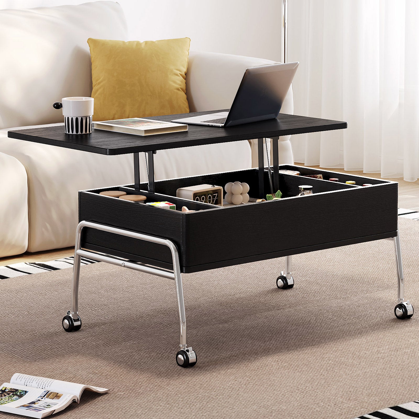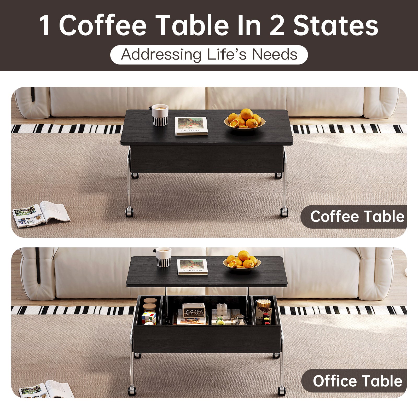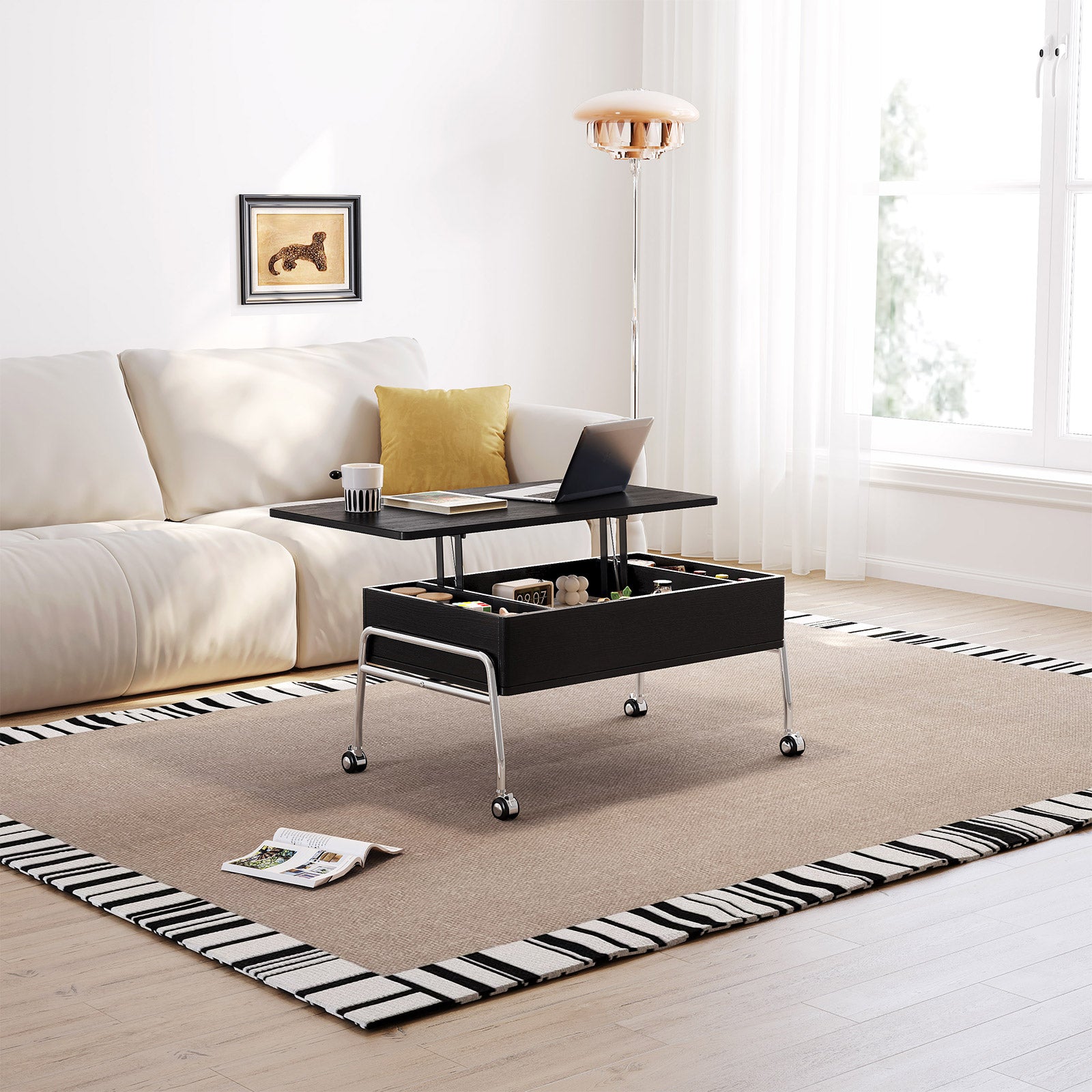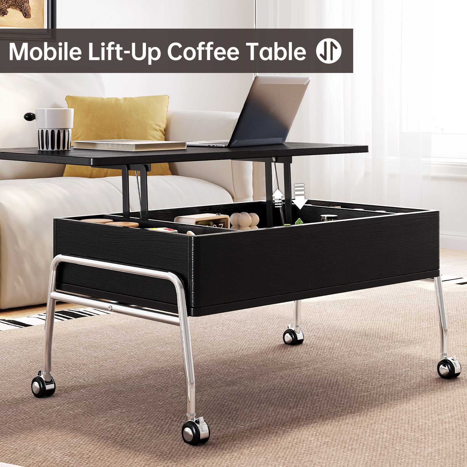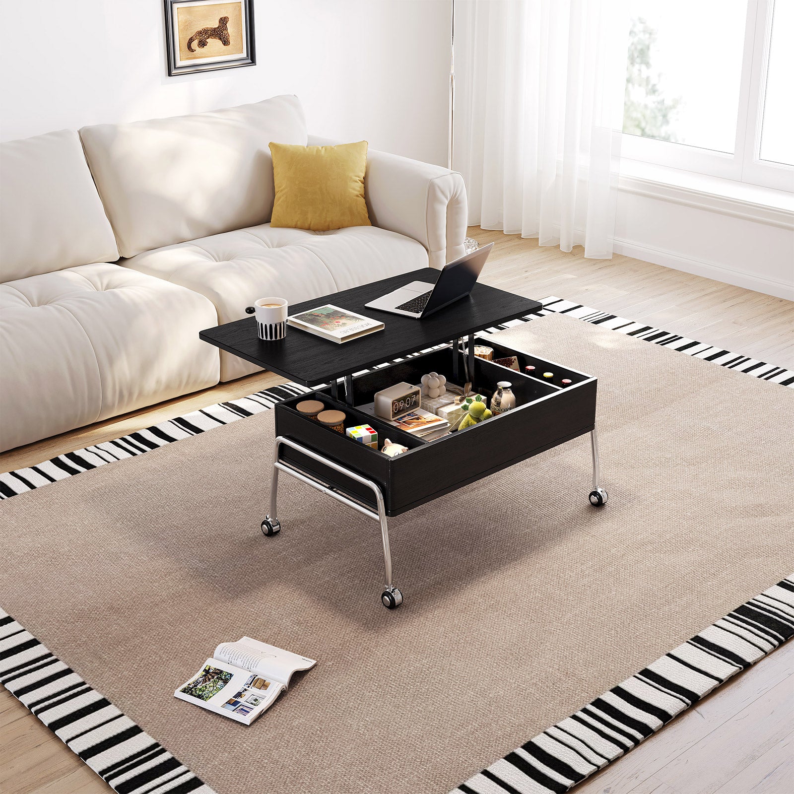 Guyii Black Lift Top Coffee Table – Adjustable Height Table with Storage & Wheels for Living Room & Home Office