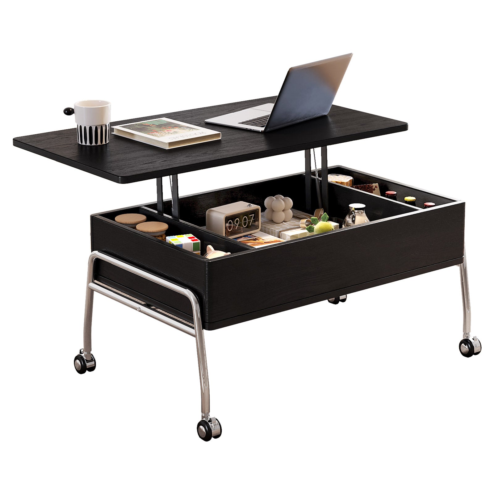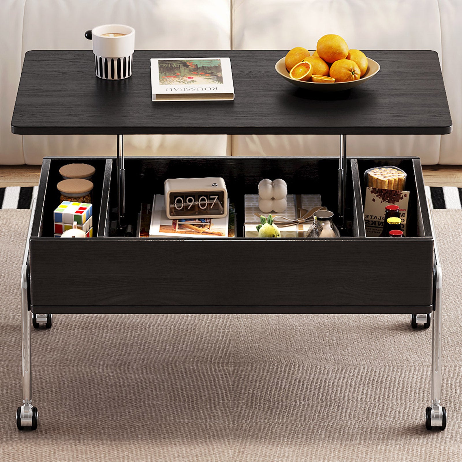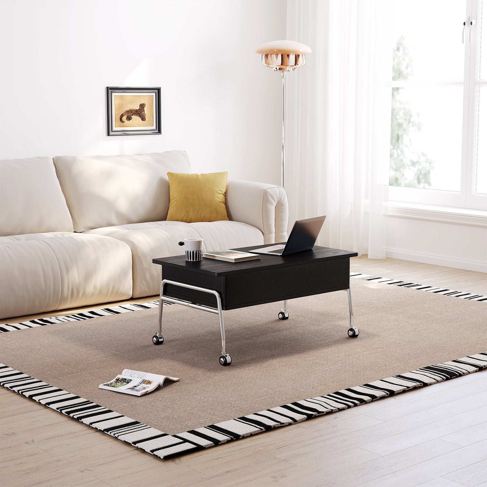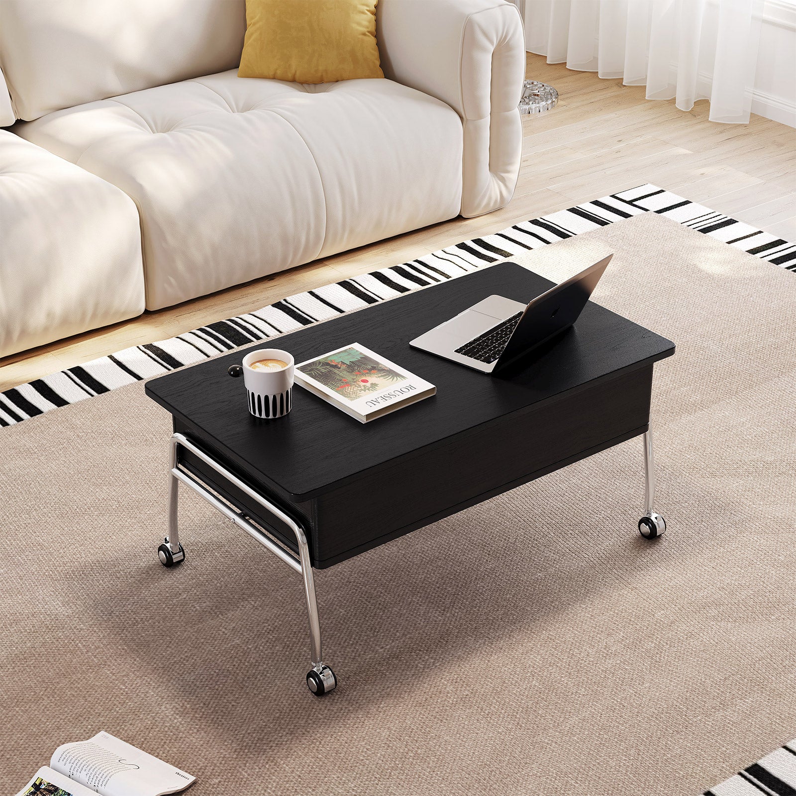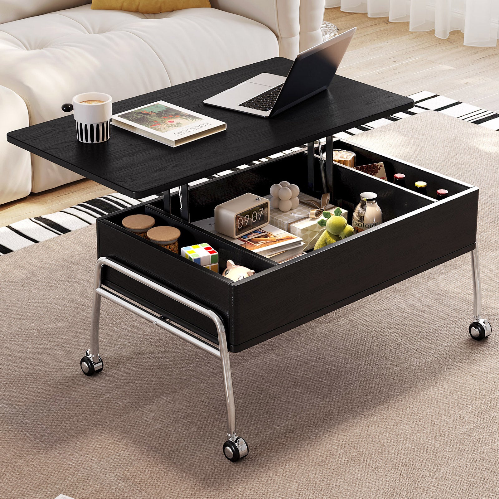 Guyii Black Lift Top Coffee Table – Adjustable Height Table with Storage & Wheels for Living Room & Home Office
