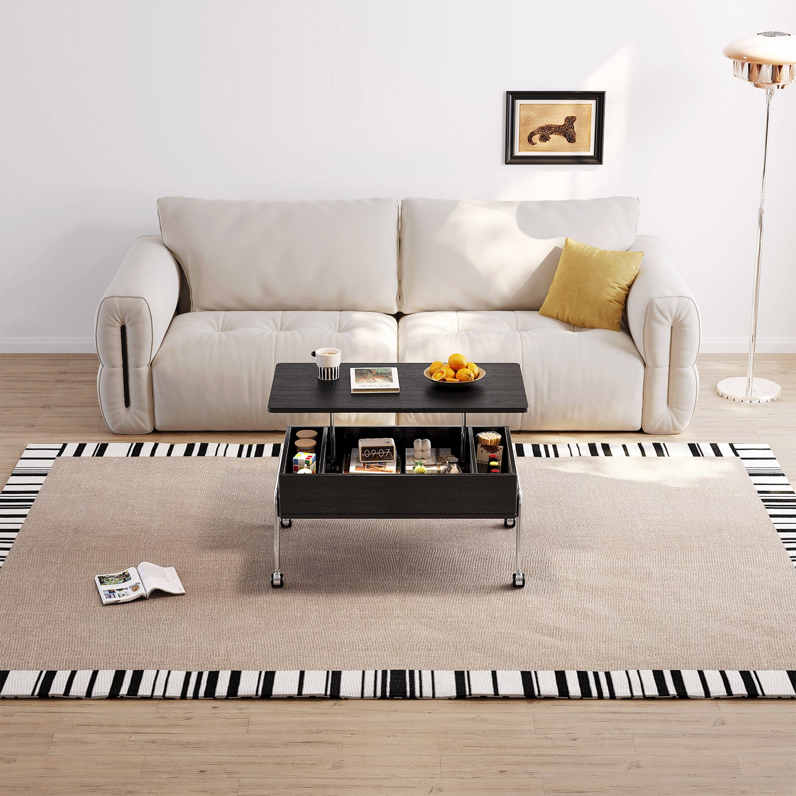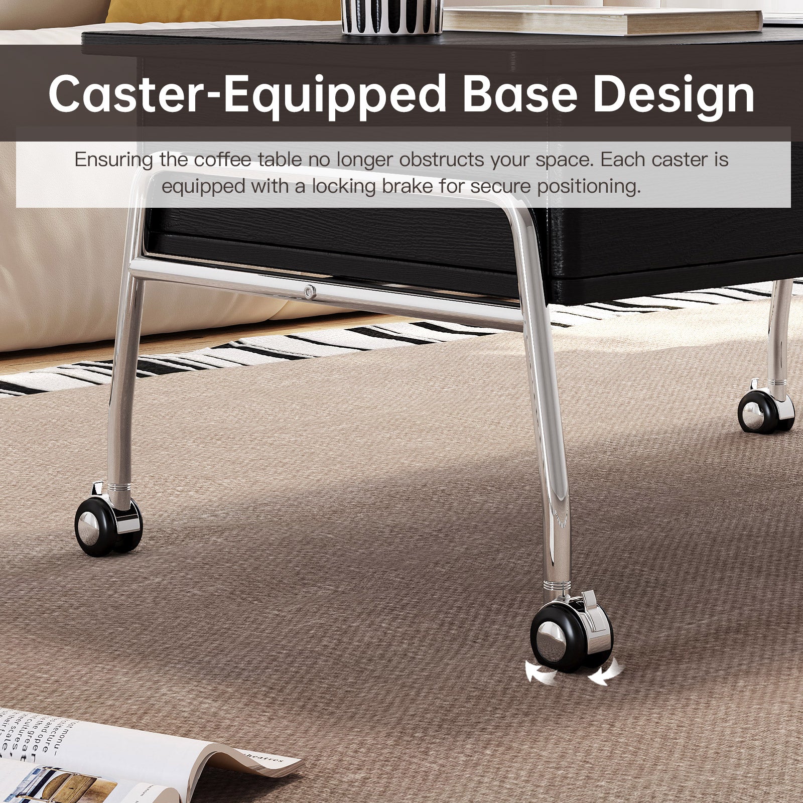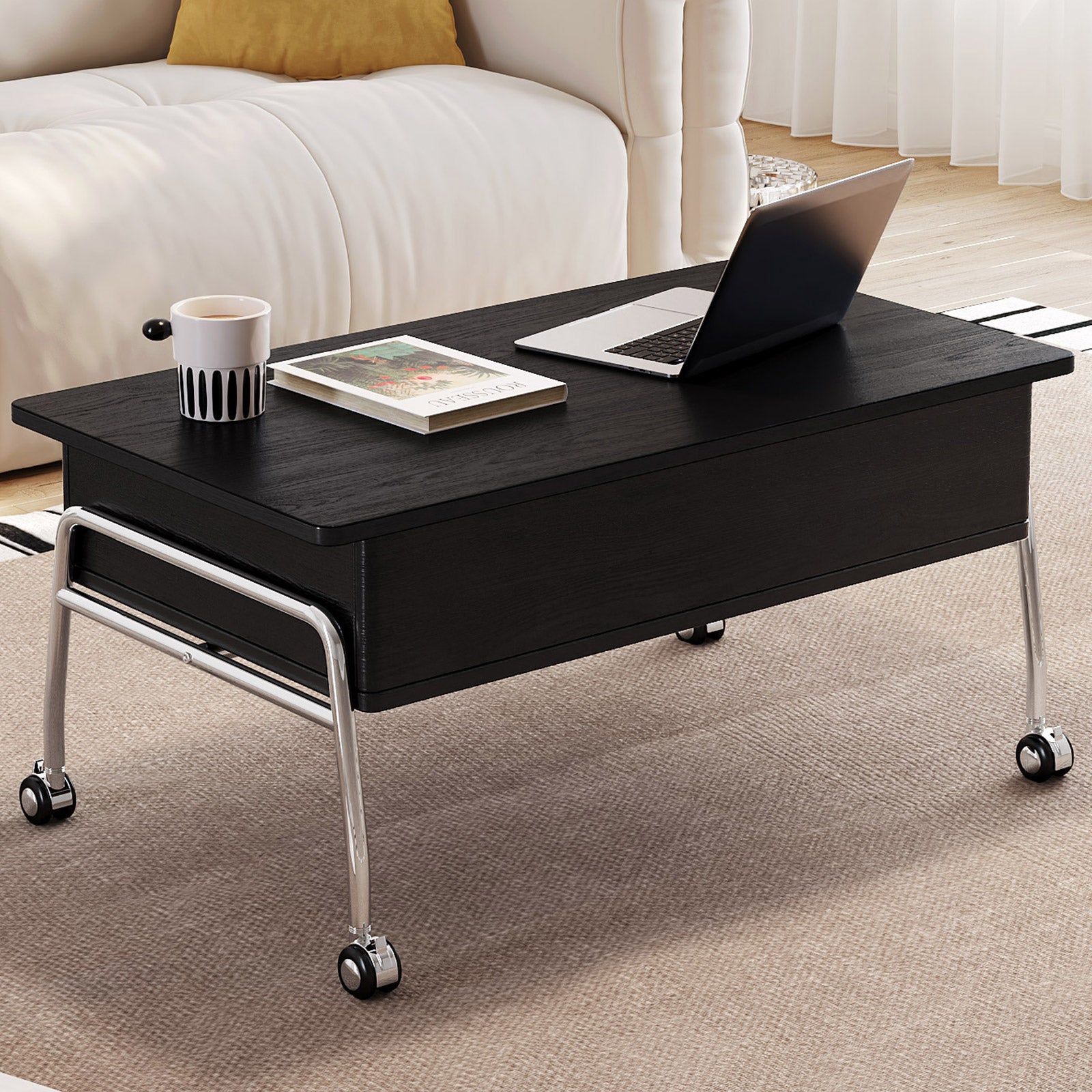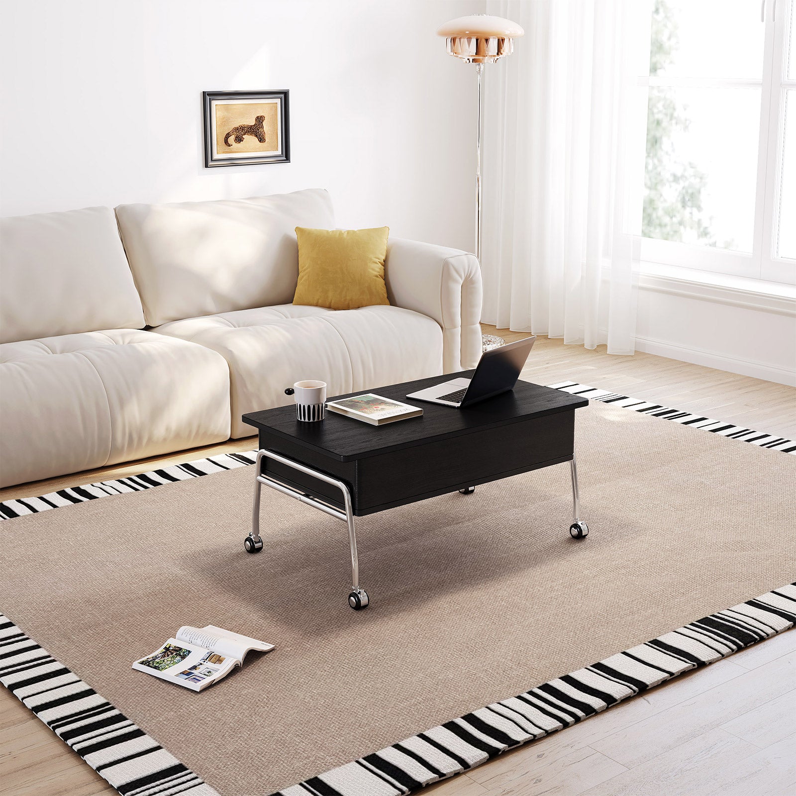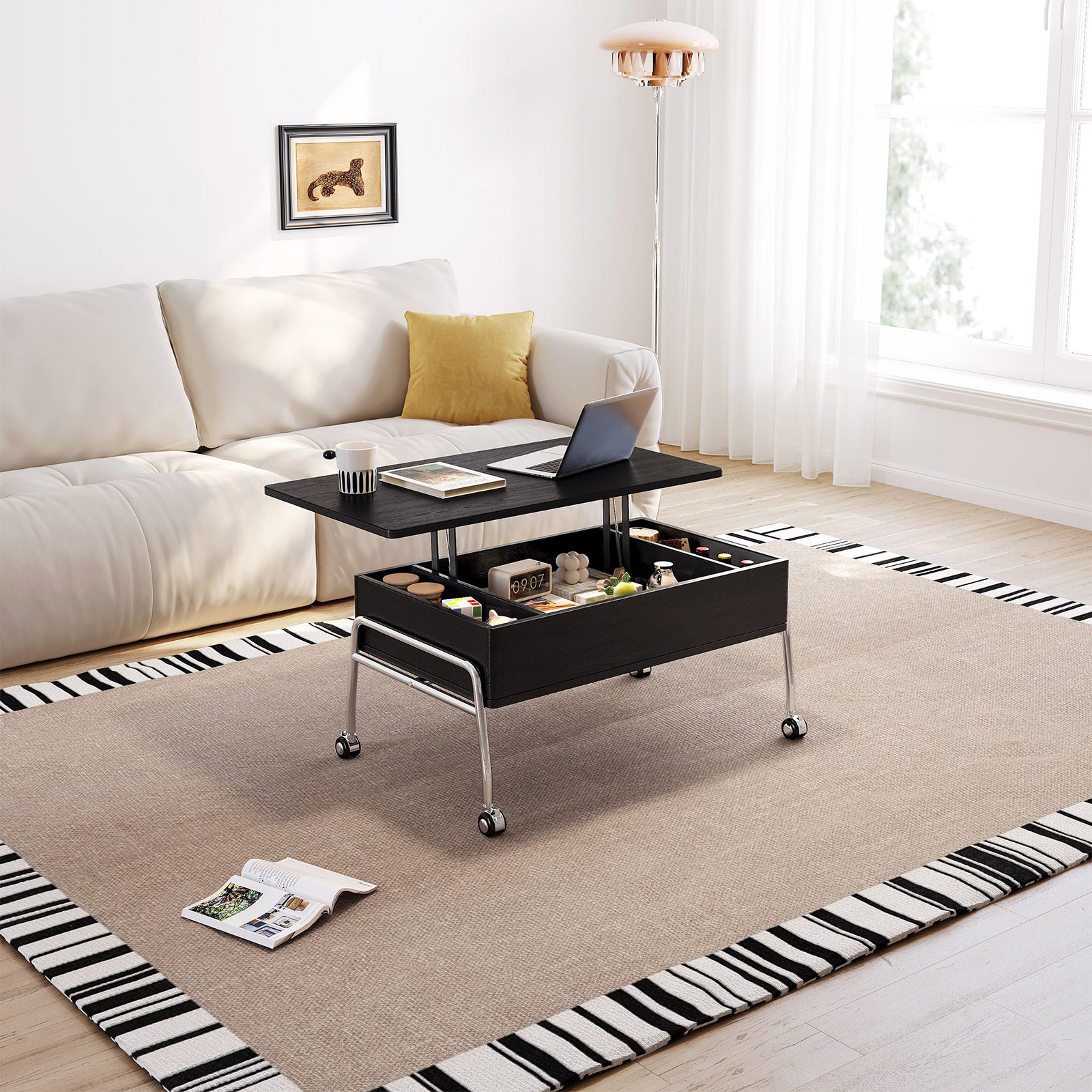 Guyii Black Lift Top Coffee Table – Adjustable Height Table with Storage & Wheels for Living Room & Home Office