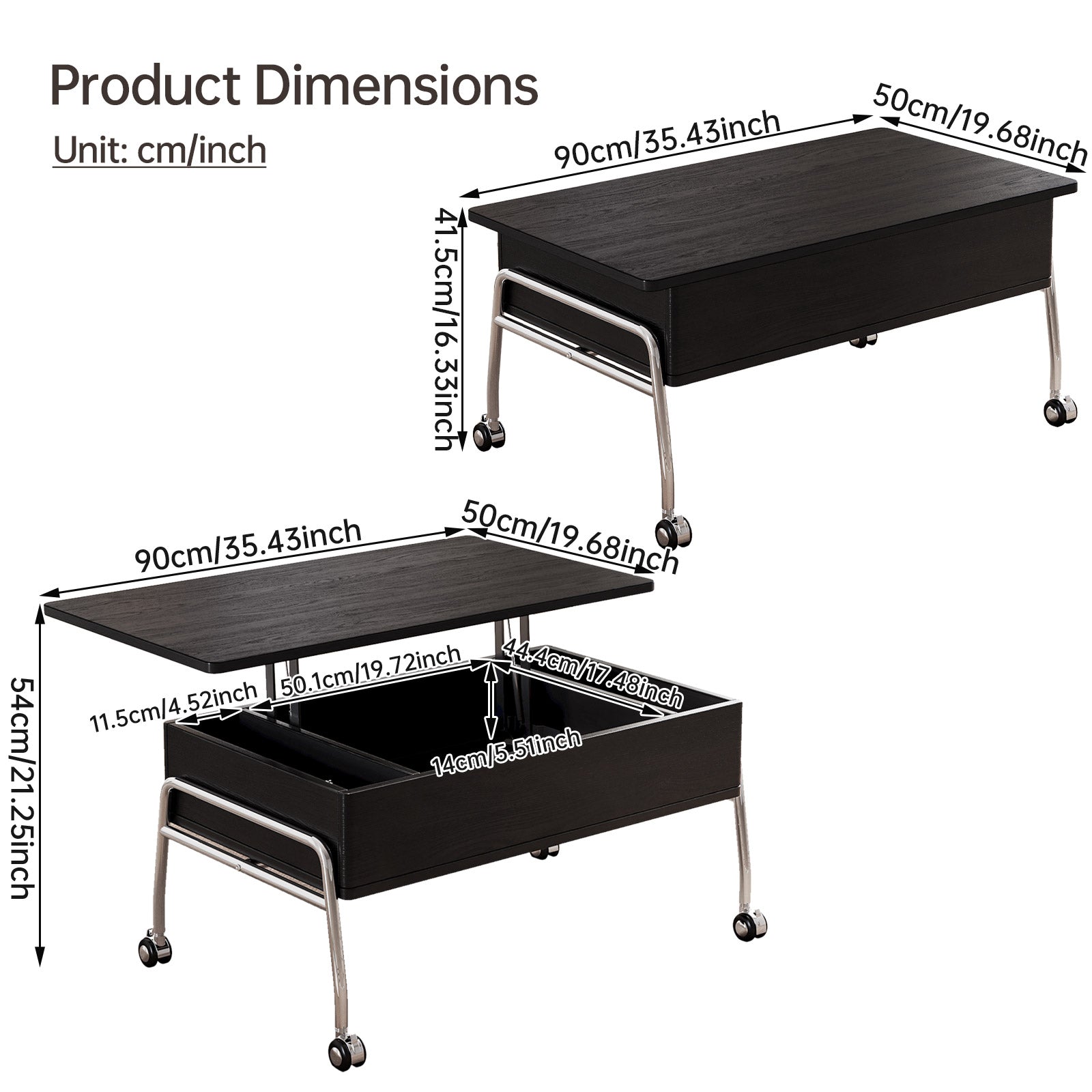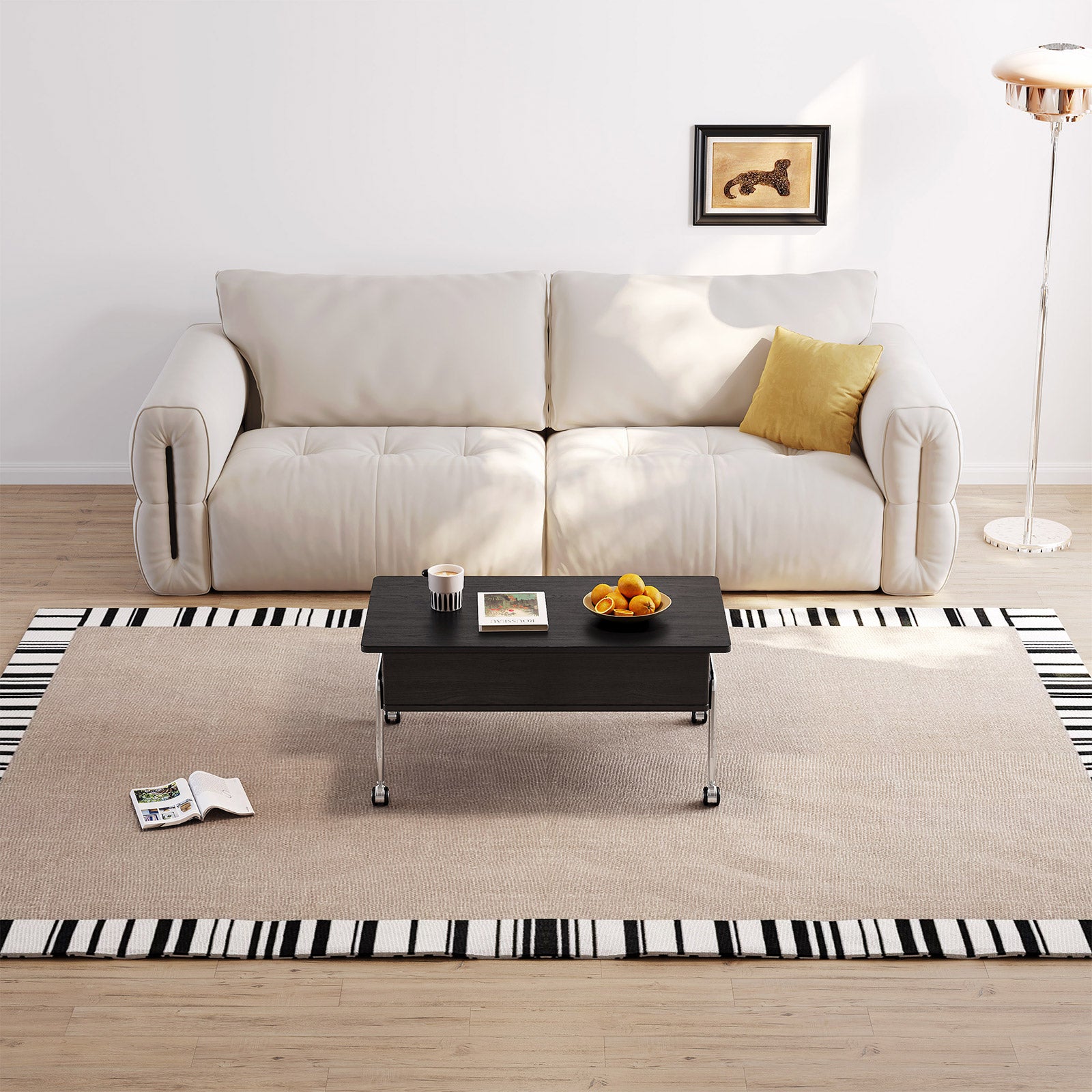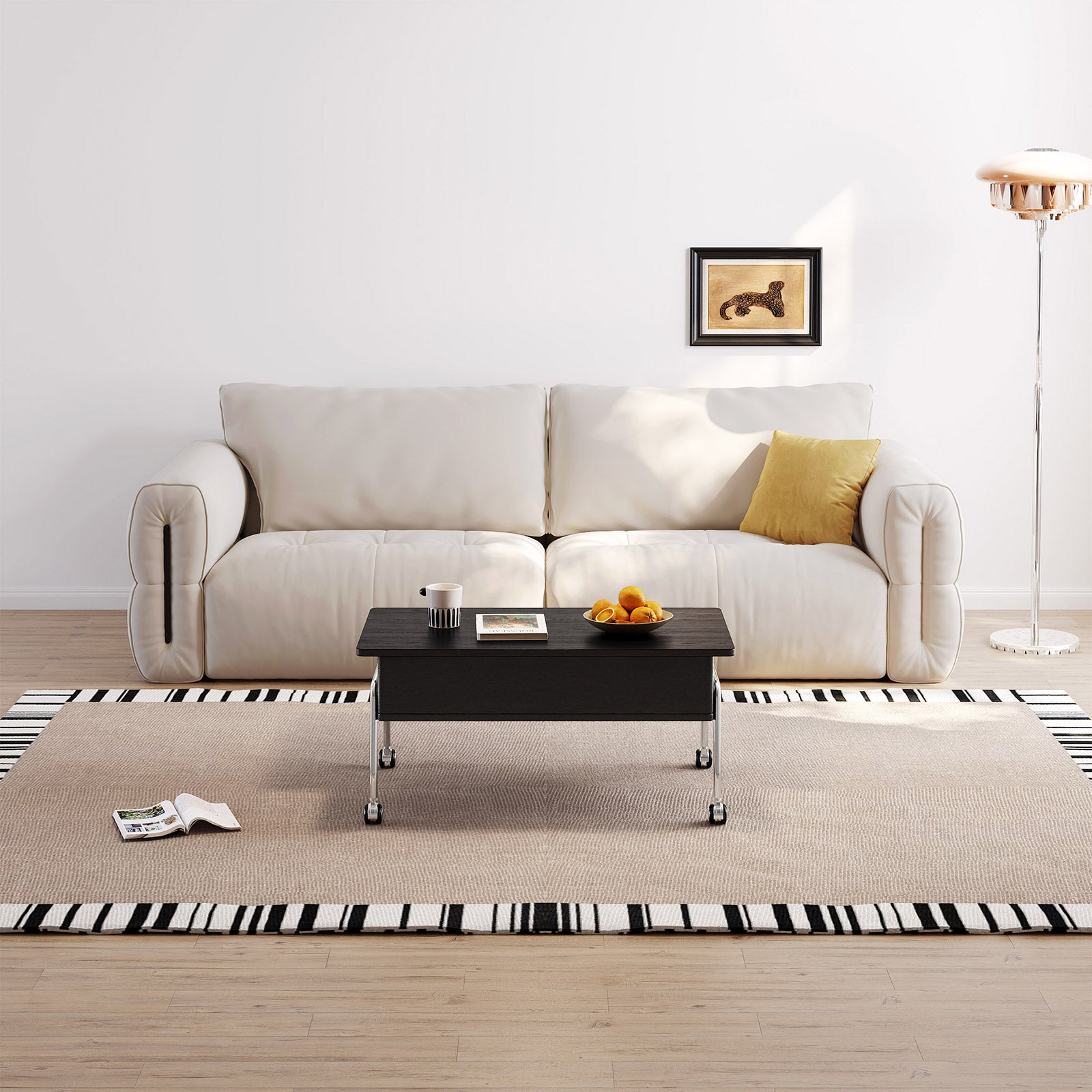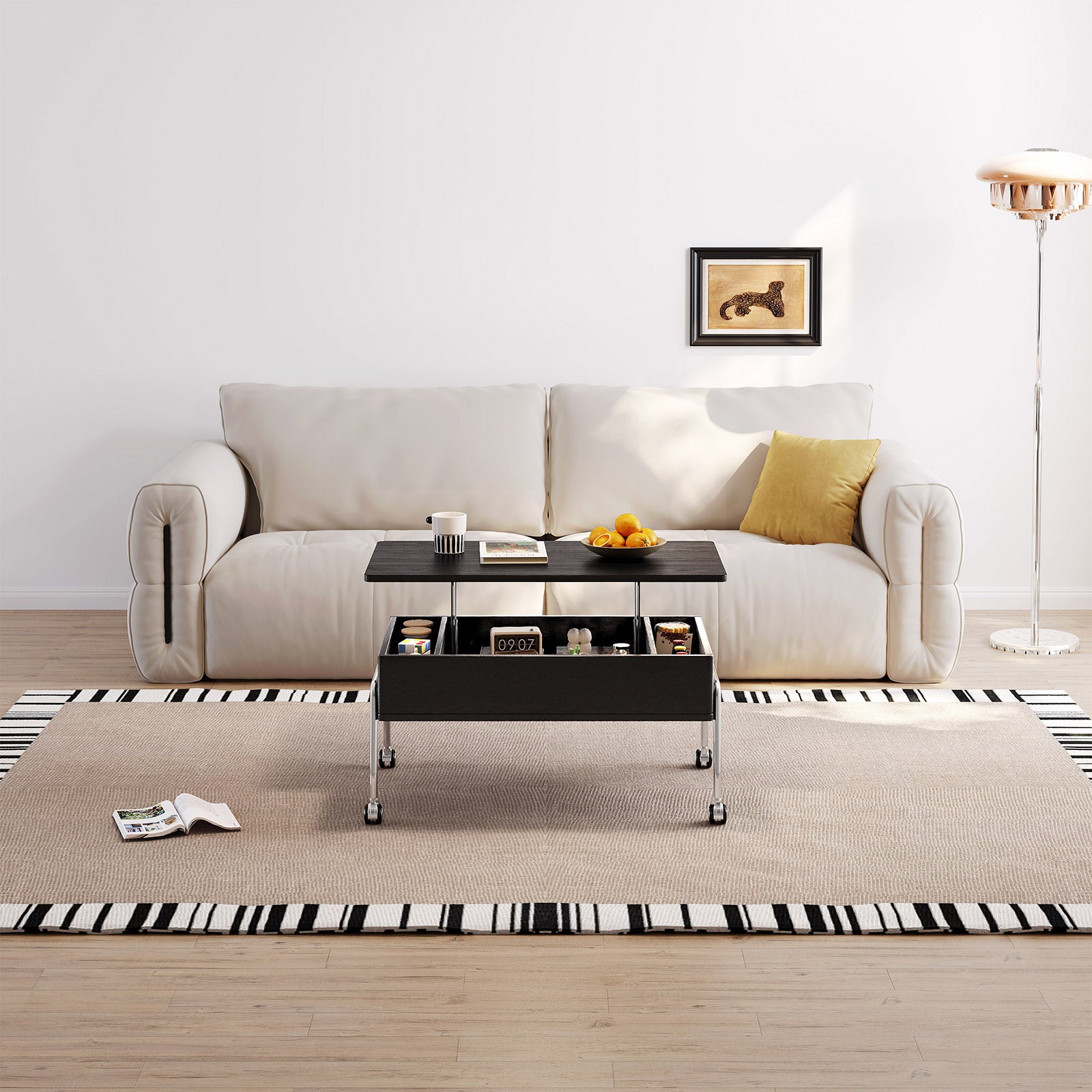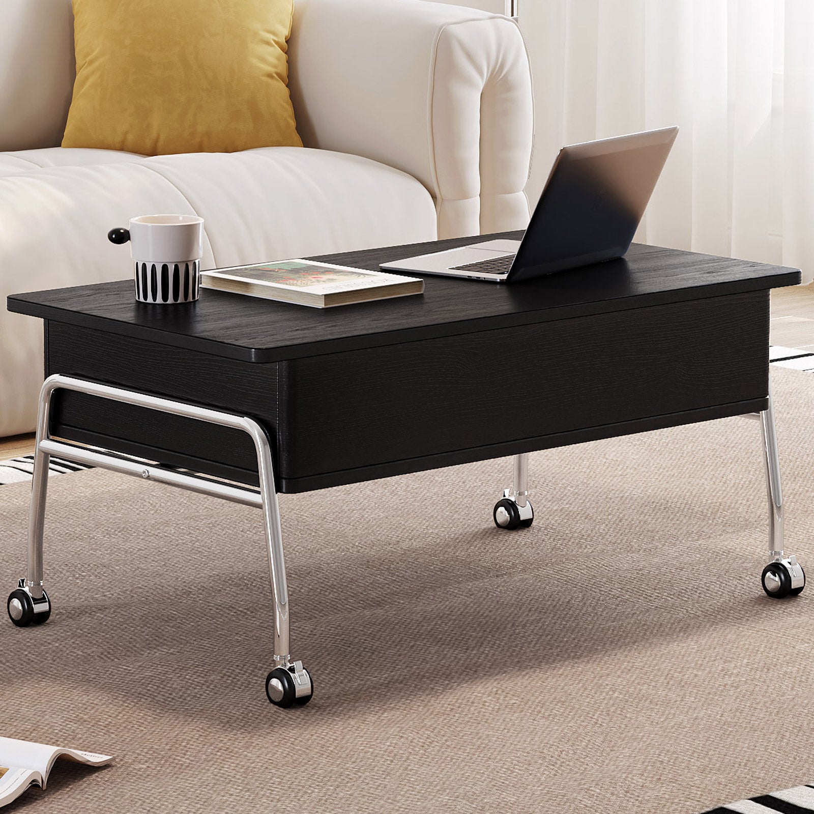 Guyii Black Lift Top Coffee Table – Adjustable Height Table with Storage & Wheels for Living Room & Home Office
