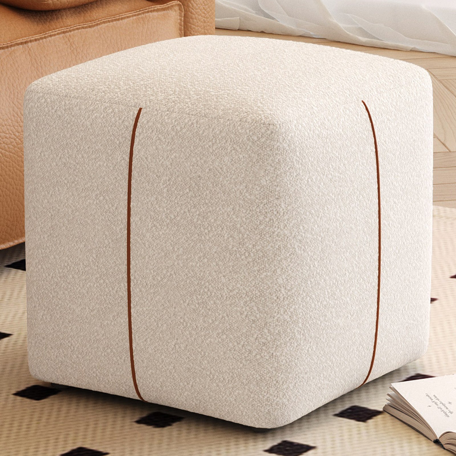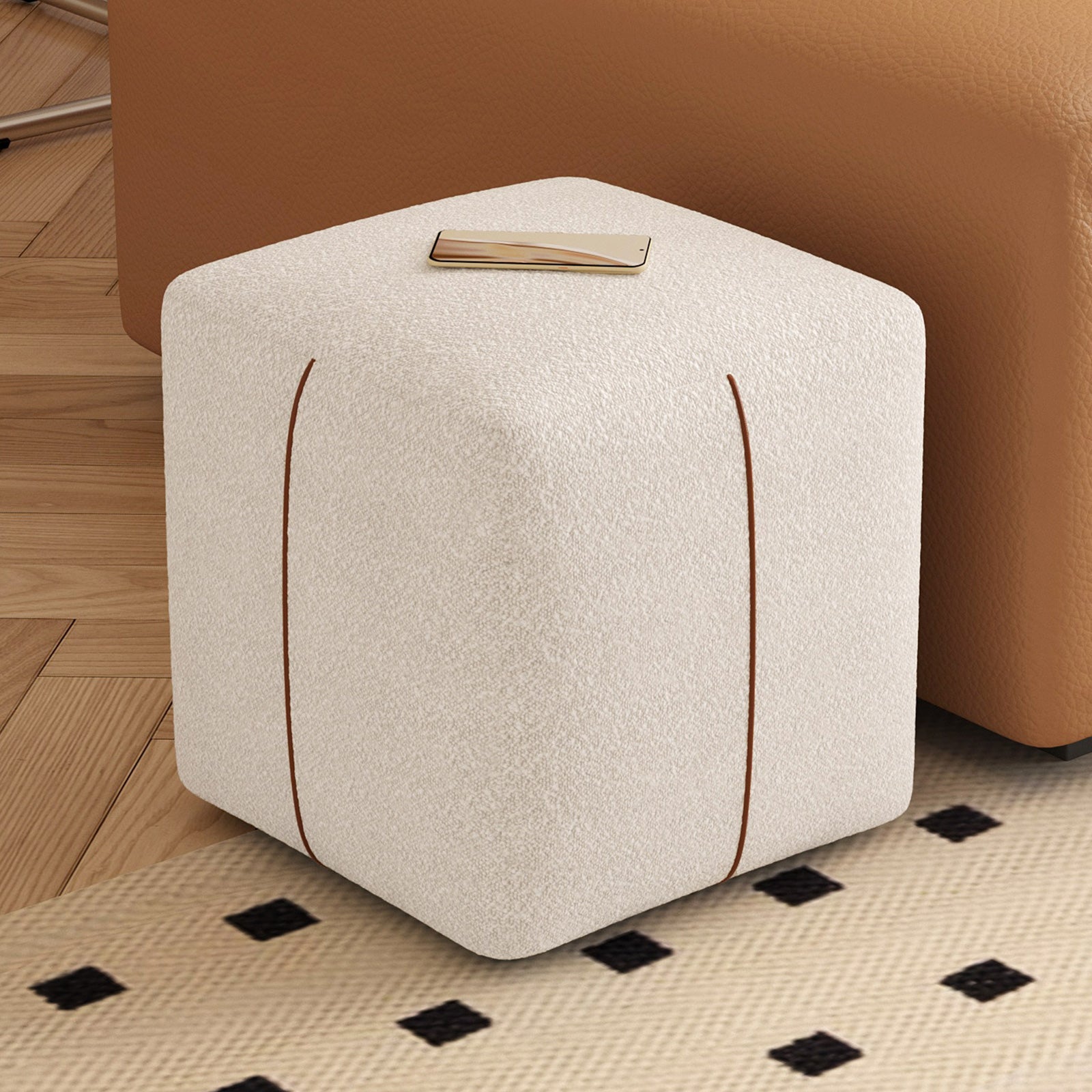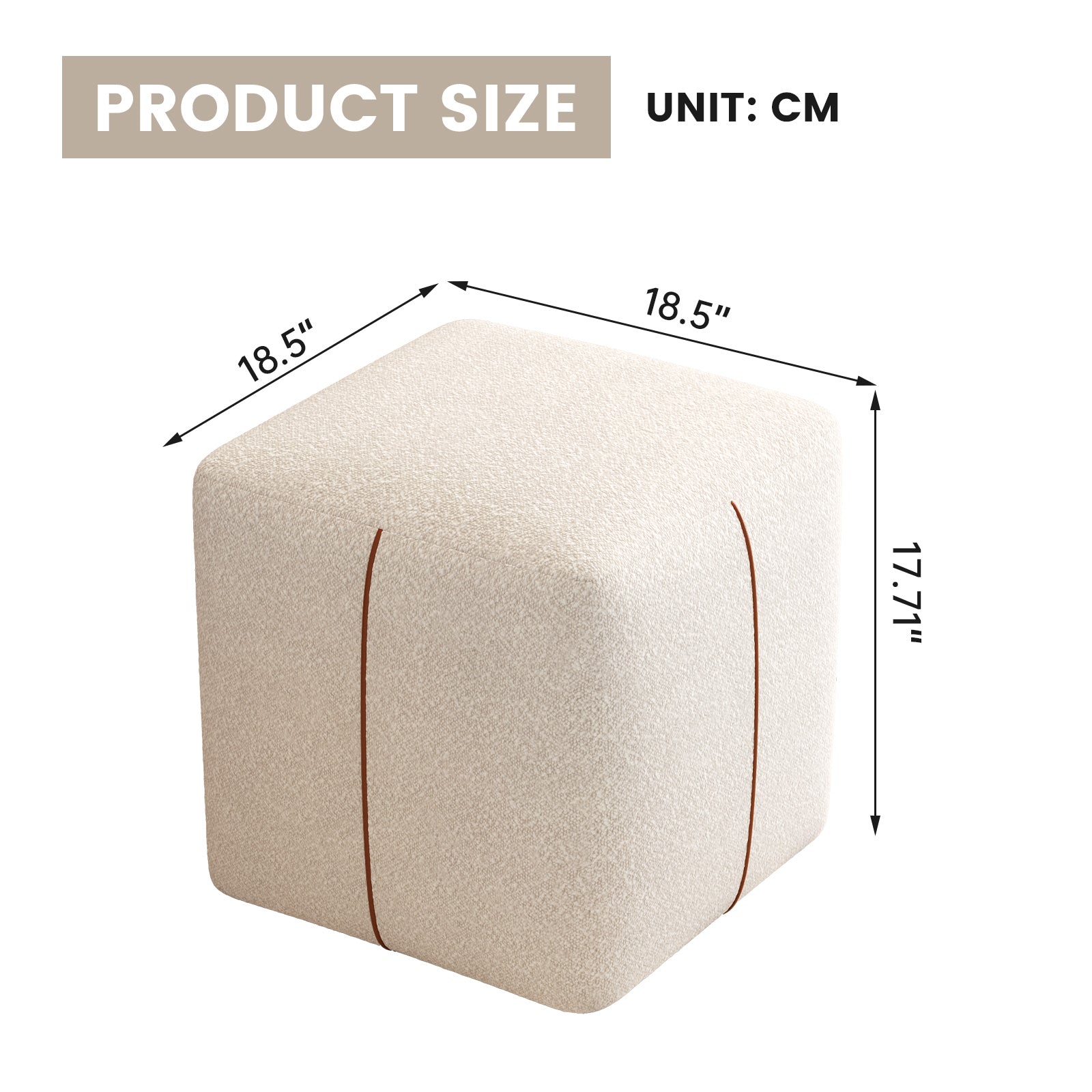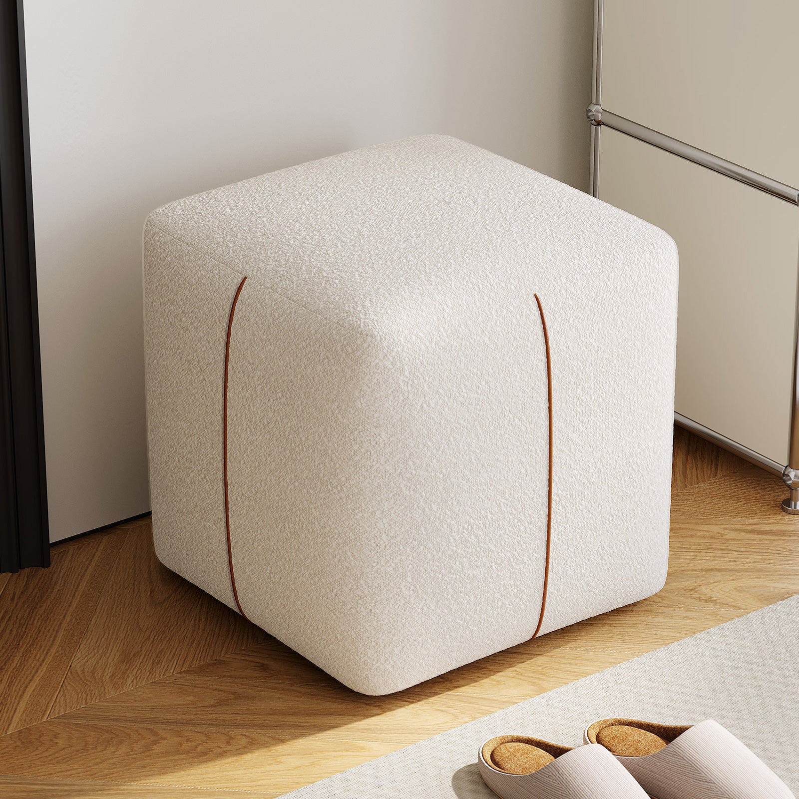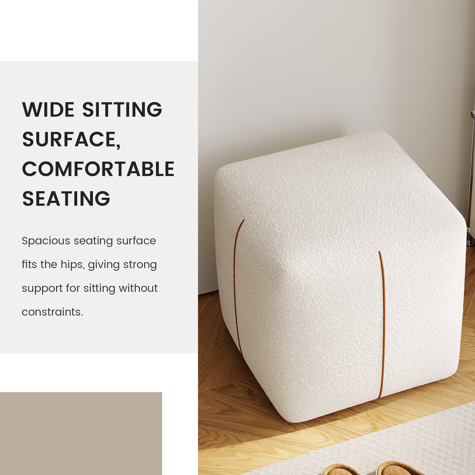 Add comfort and elegance to any space with this modern square stool. Upholstered in soft fleece fabric and filled with high-density sponge, it offers plush support and long-lasting shape. The 17.71" height and ergonomic seat make it ideal for makeup, lounging, or putting on shoes. Minimalist yet versatile, this beige ottoman fits beautifully in bedrooms, living rooms, or entryways.
