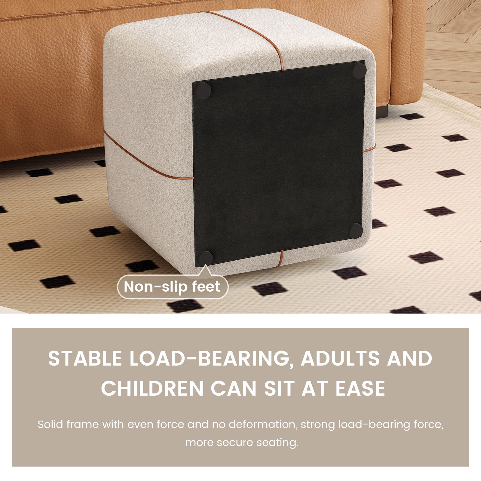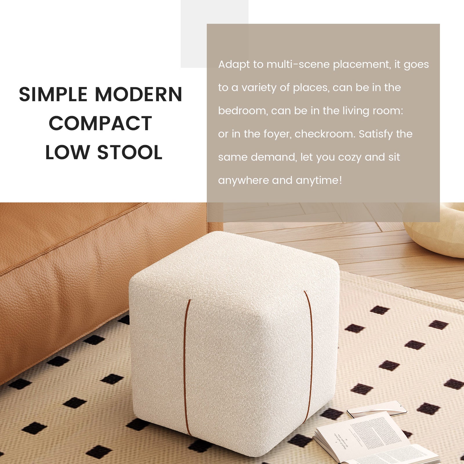 Guyii Beige Square Stool – Modern Upholstered Low Ottoman for Bedroom, Living Room, Entryway
