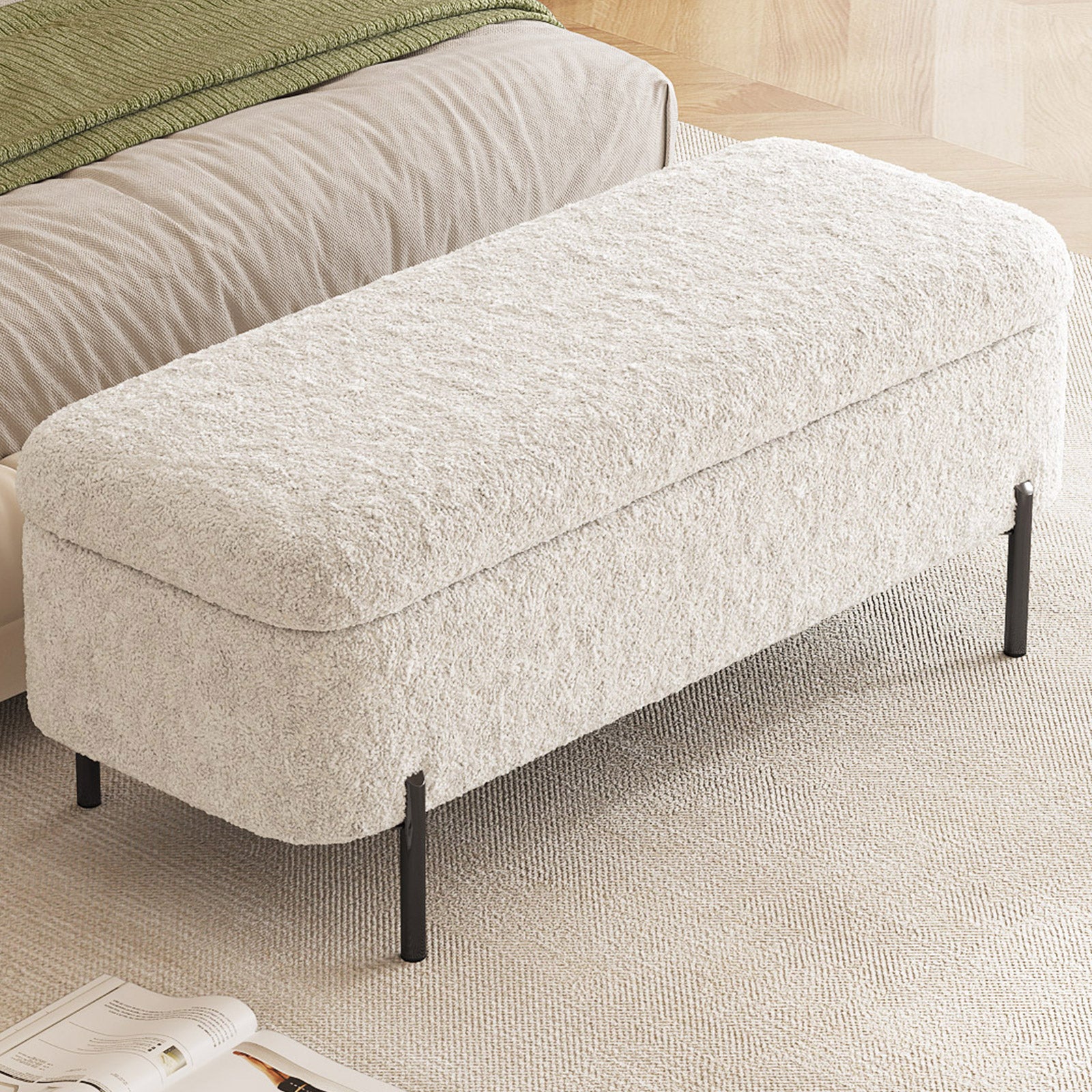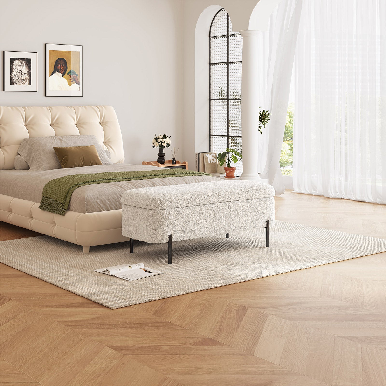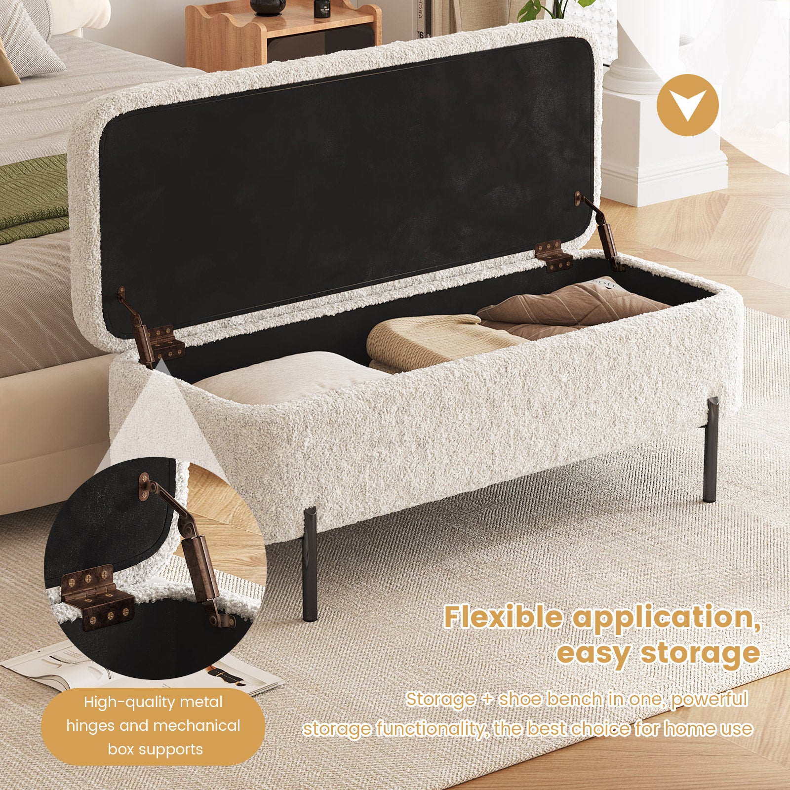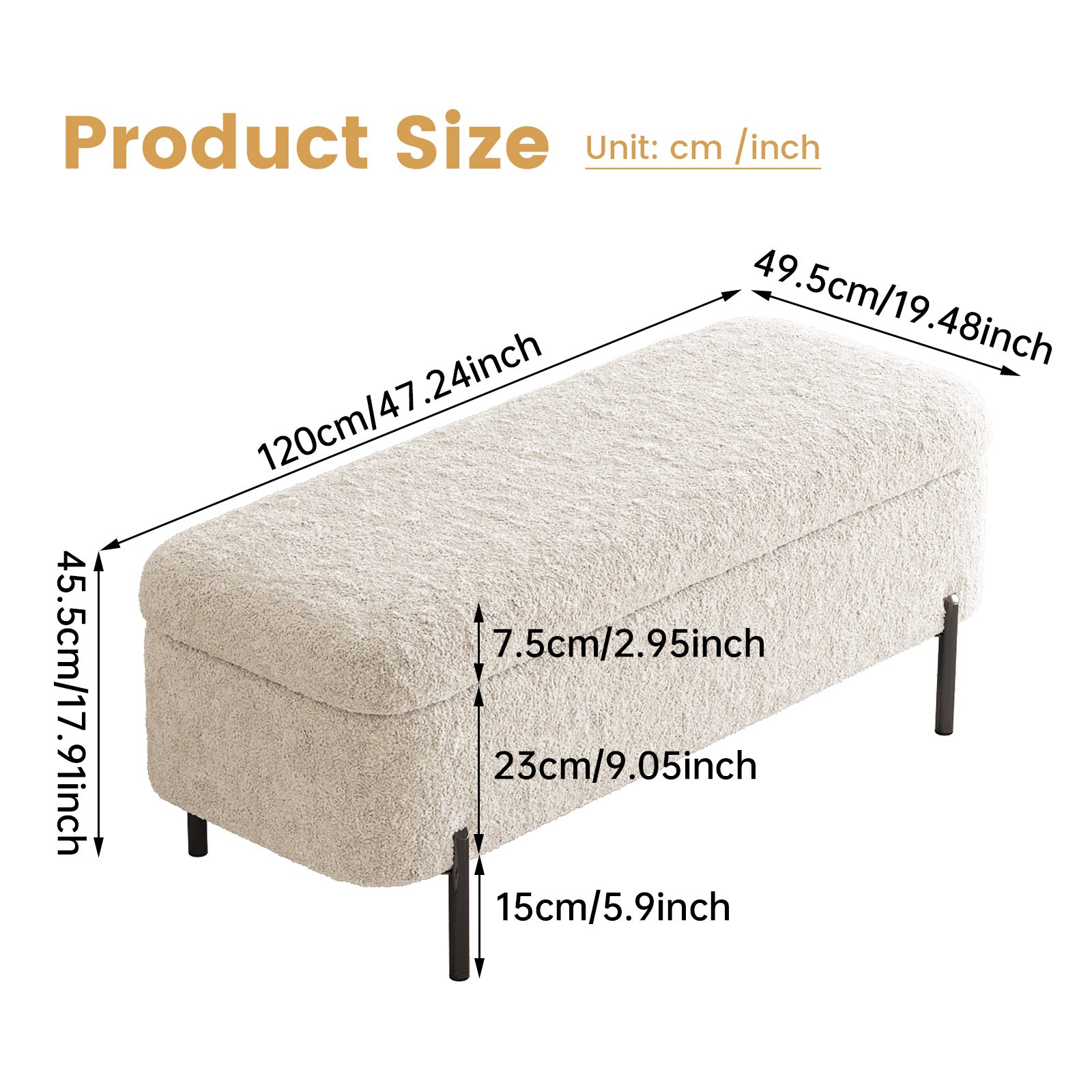 Guyii 47.2" Beige Storage Ottoman Bench – Modern Upholstered Long Bench with Hidden Storage for Bedroom & Entryway