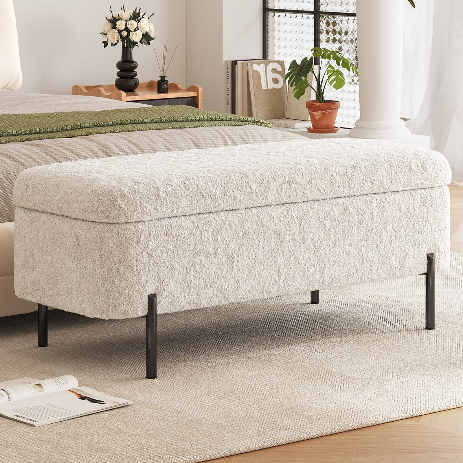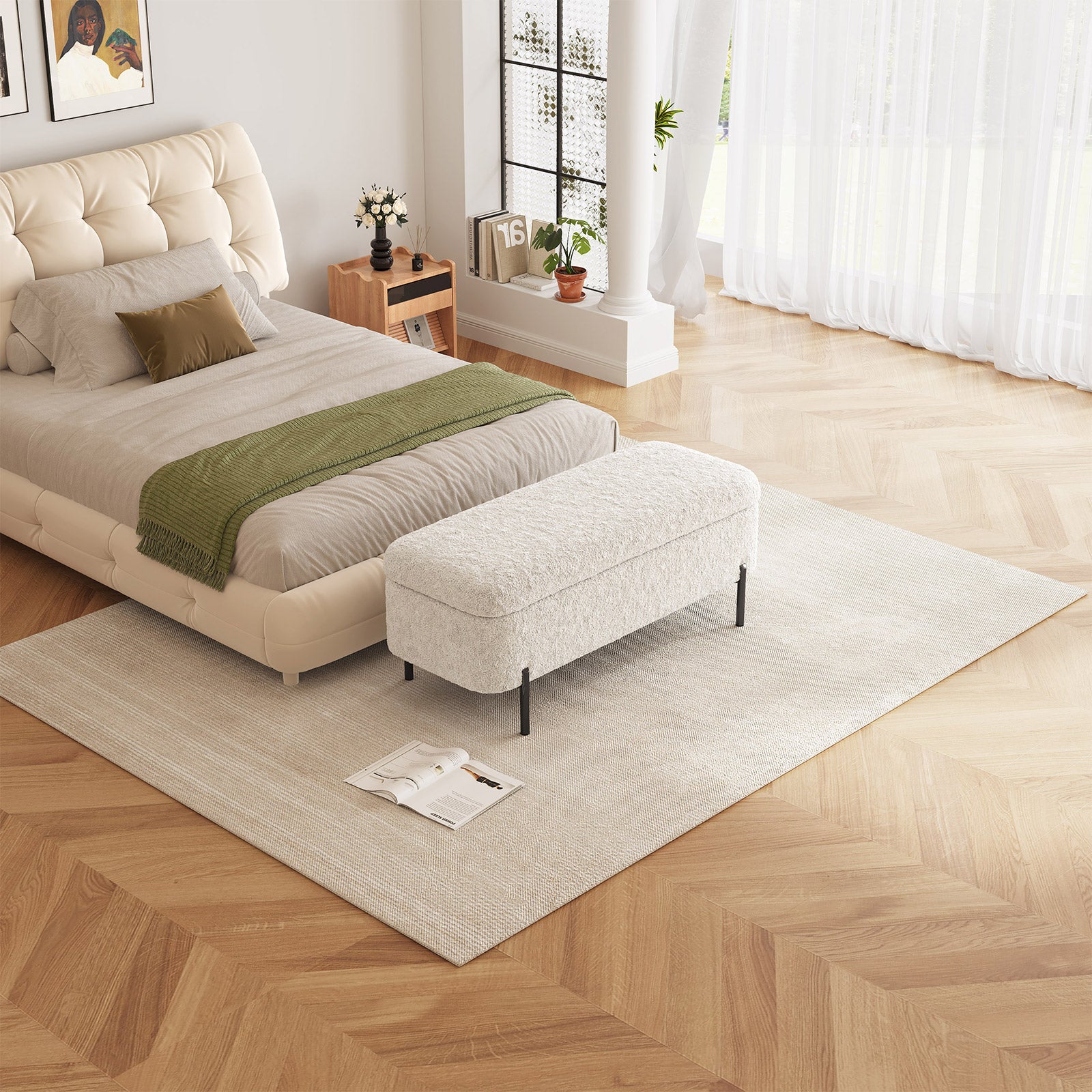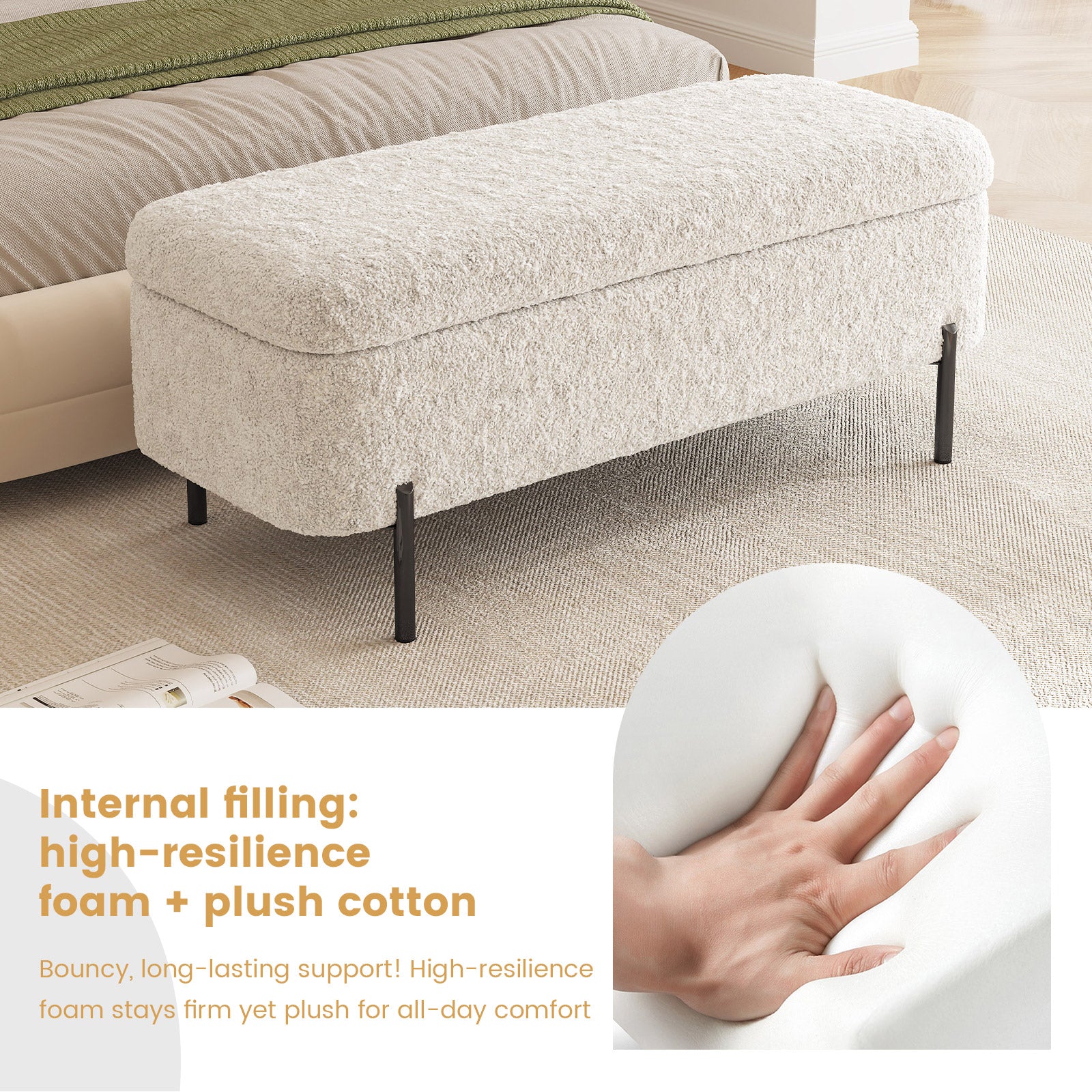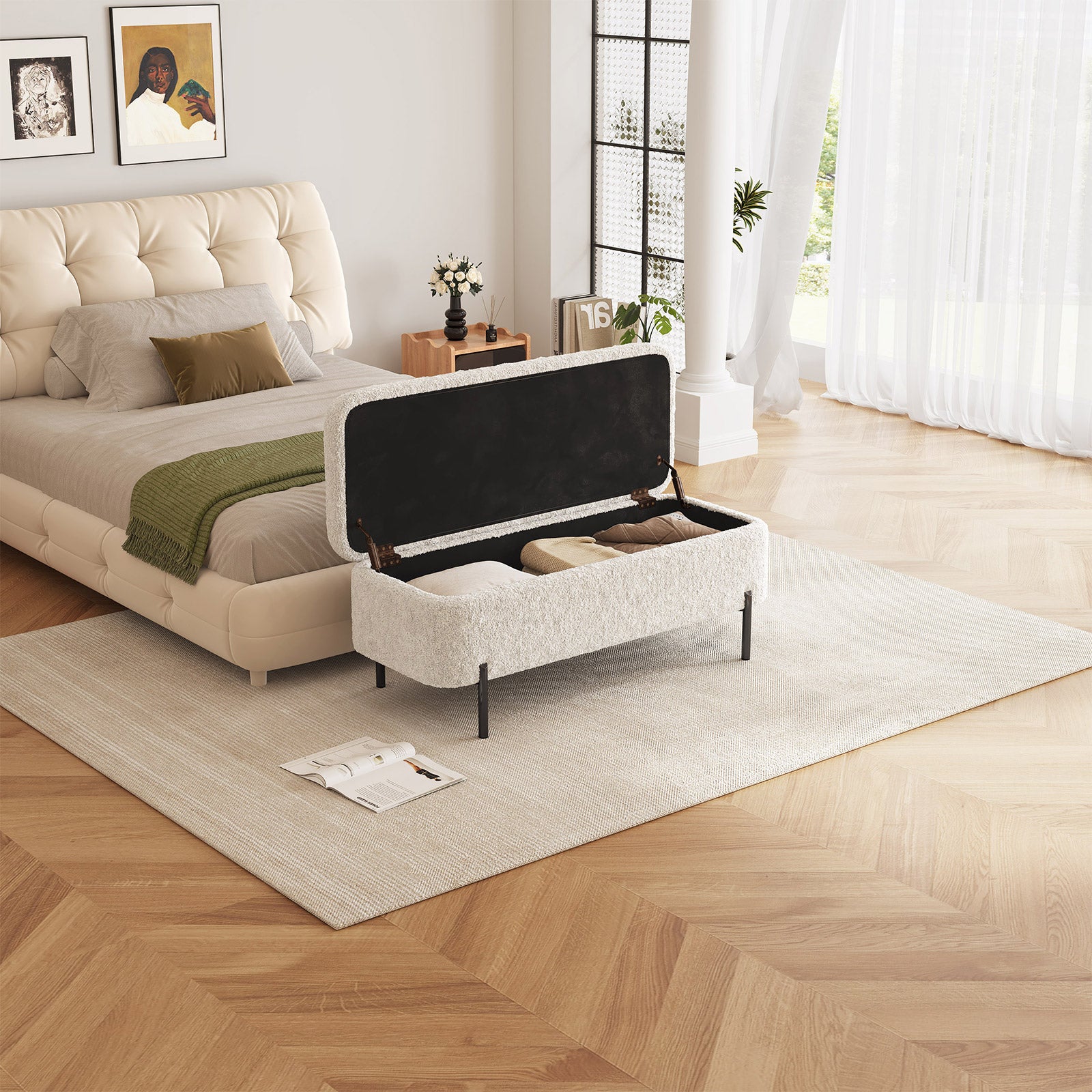 Guyii 47.2" Beige Storage Ottoman Bench – Modern Upholstered Long Bench with Hidden Storage for Bedroom & Entryway