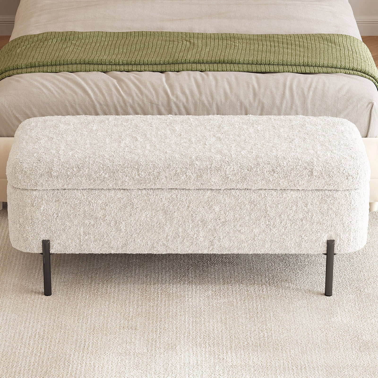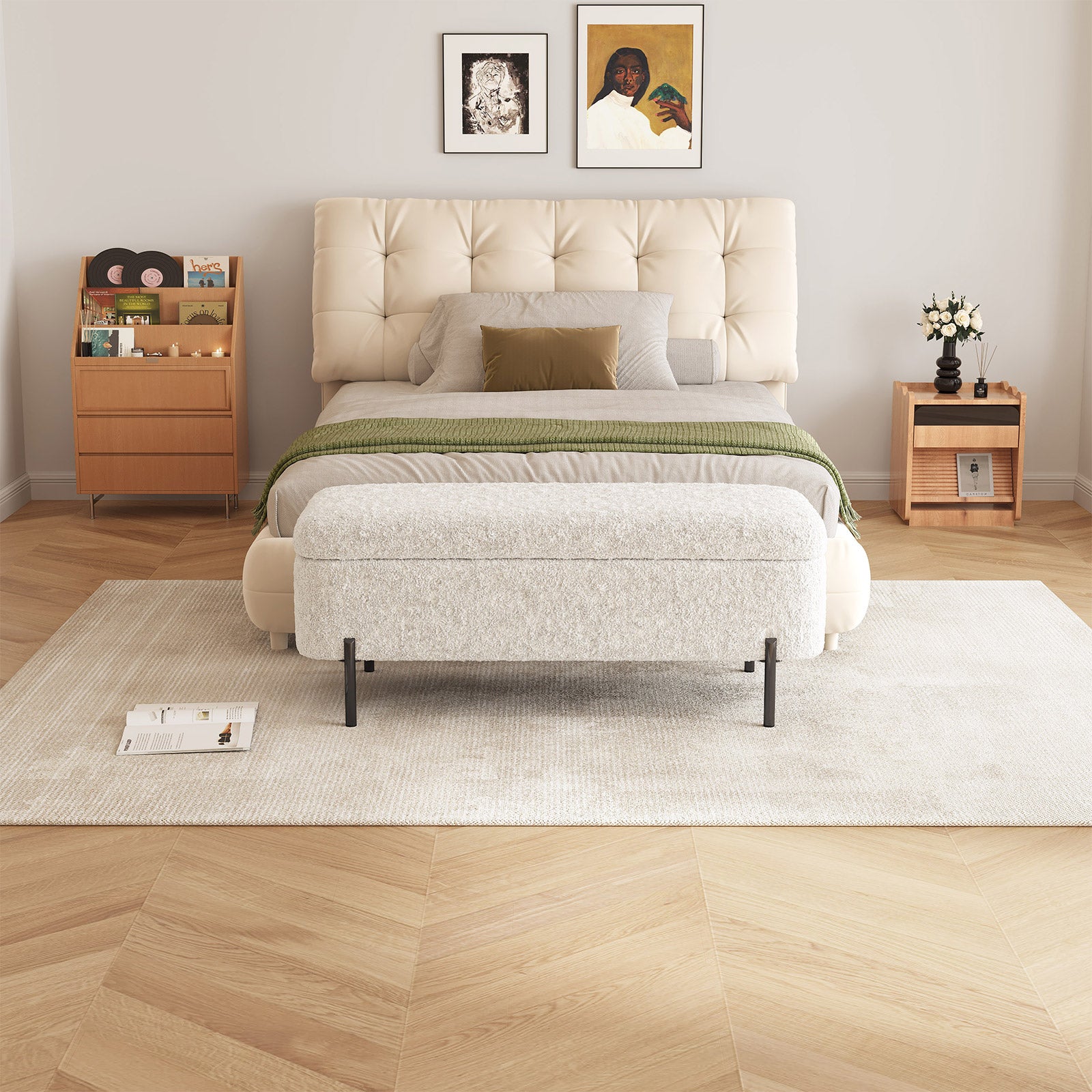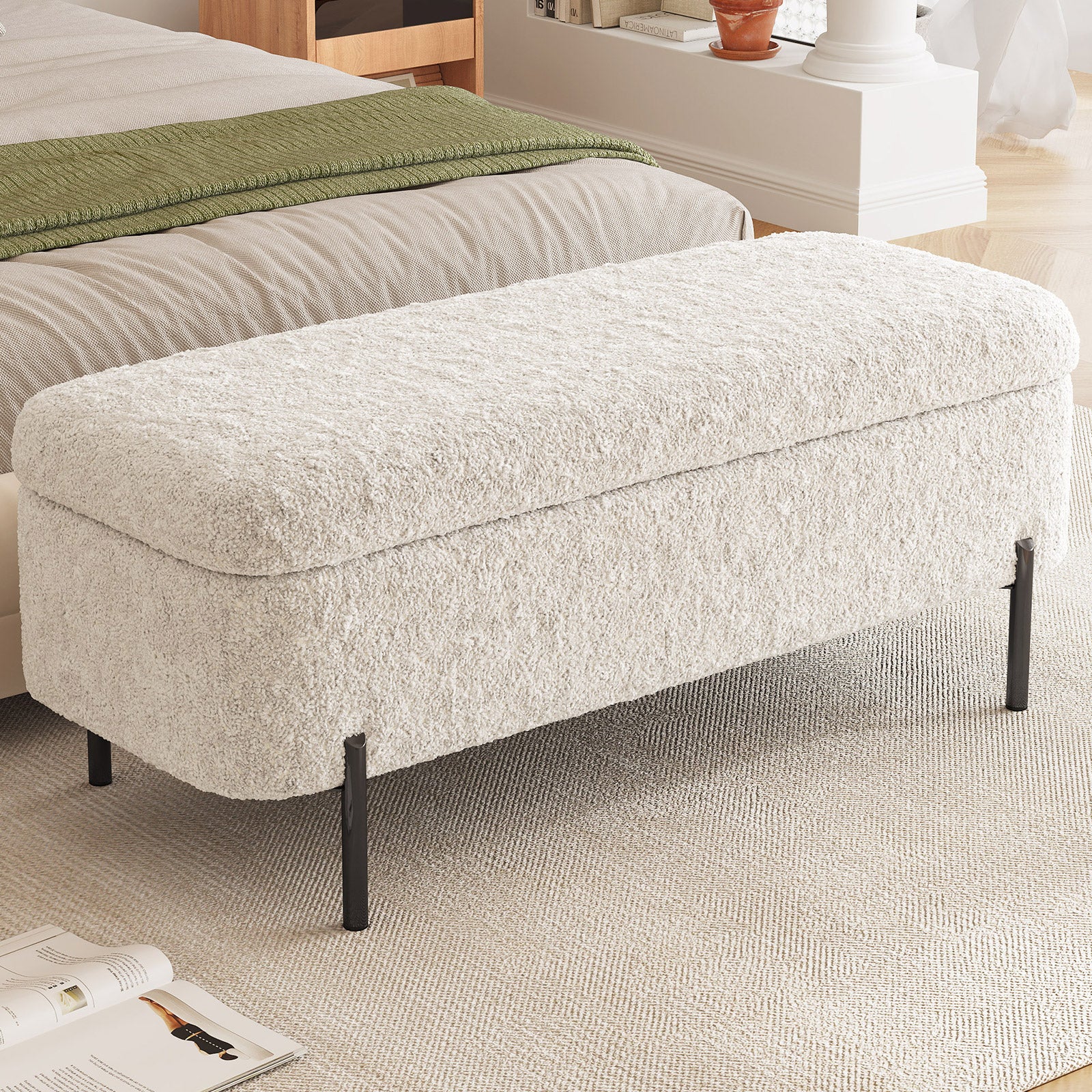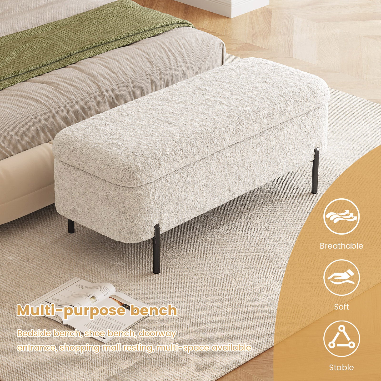 Guyii 47.2" Beige Storage Ottoman Bench – Modern Upholstered Long Bench with Hidden Storage for Bedroom & Entryway