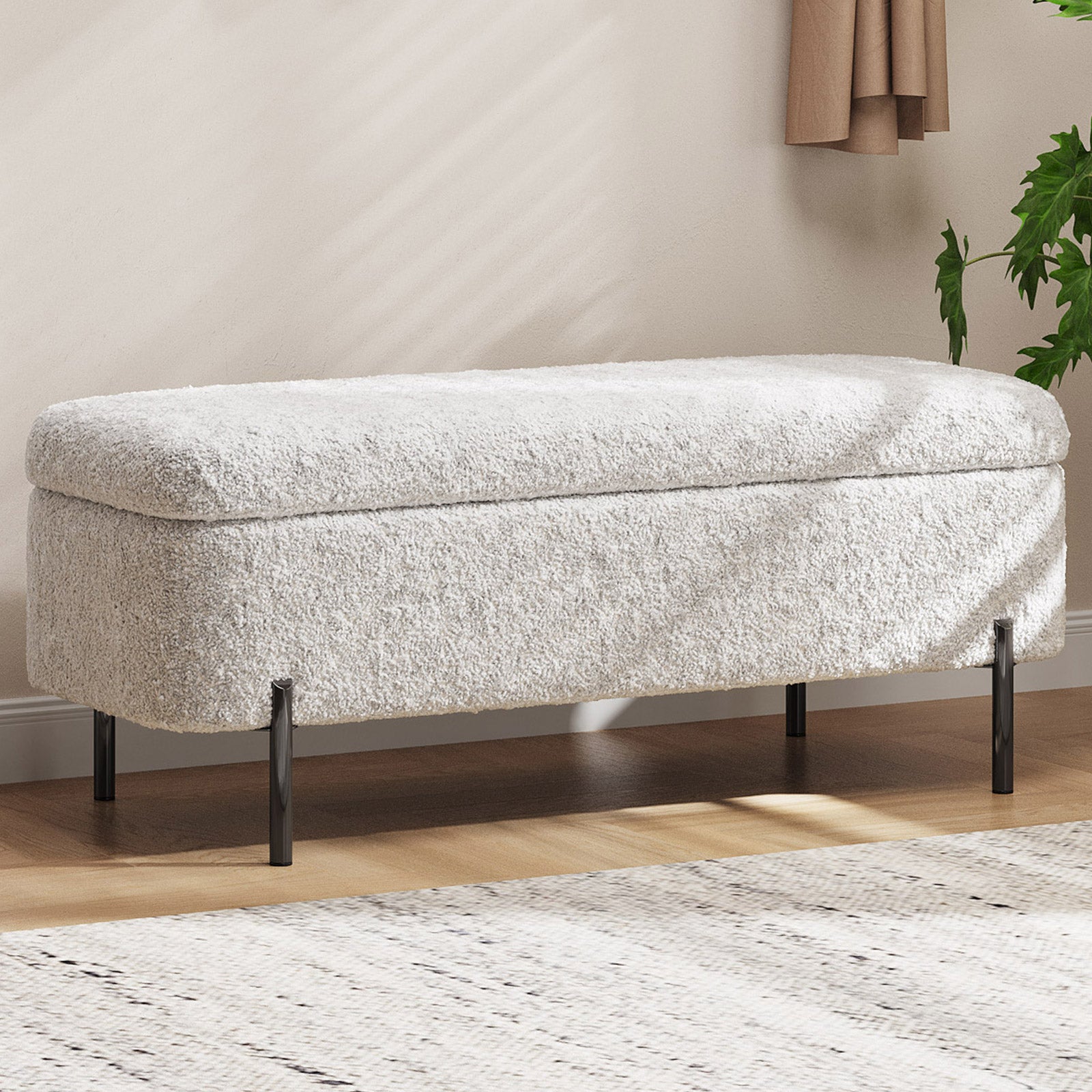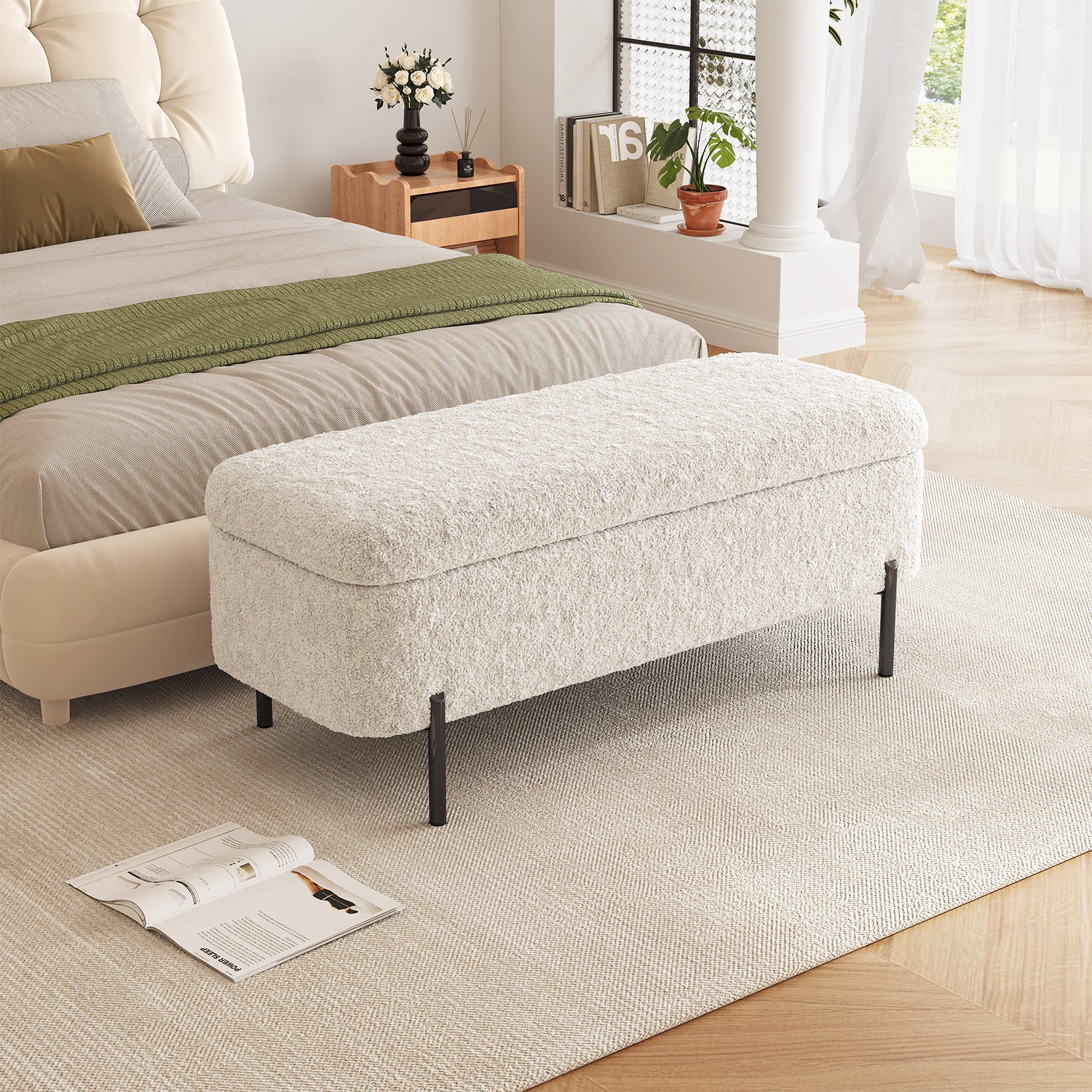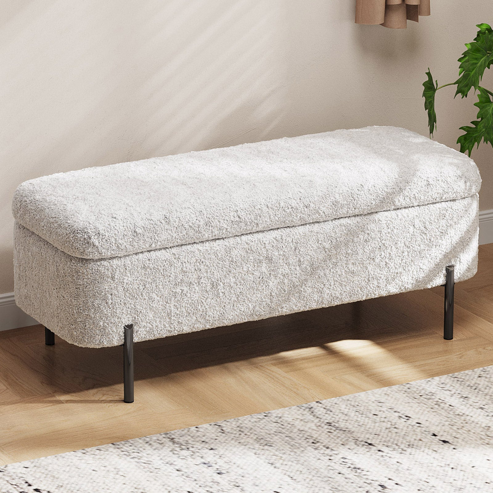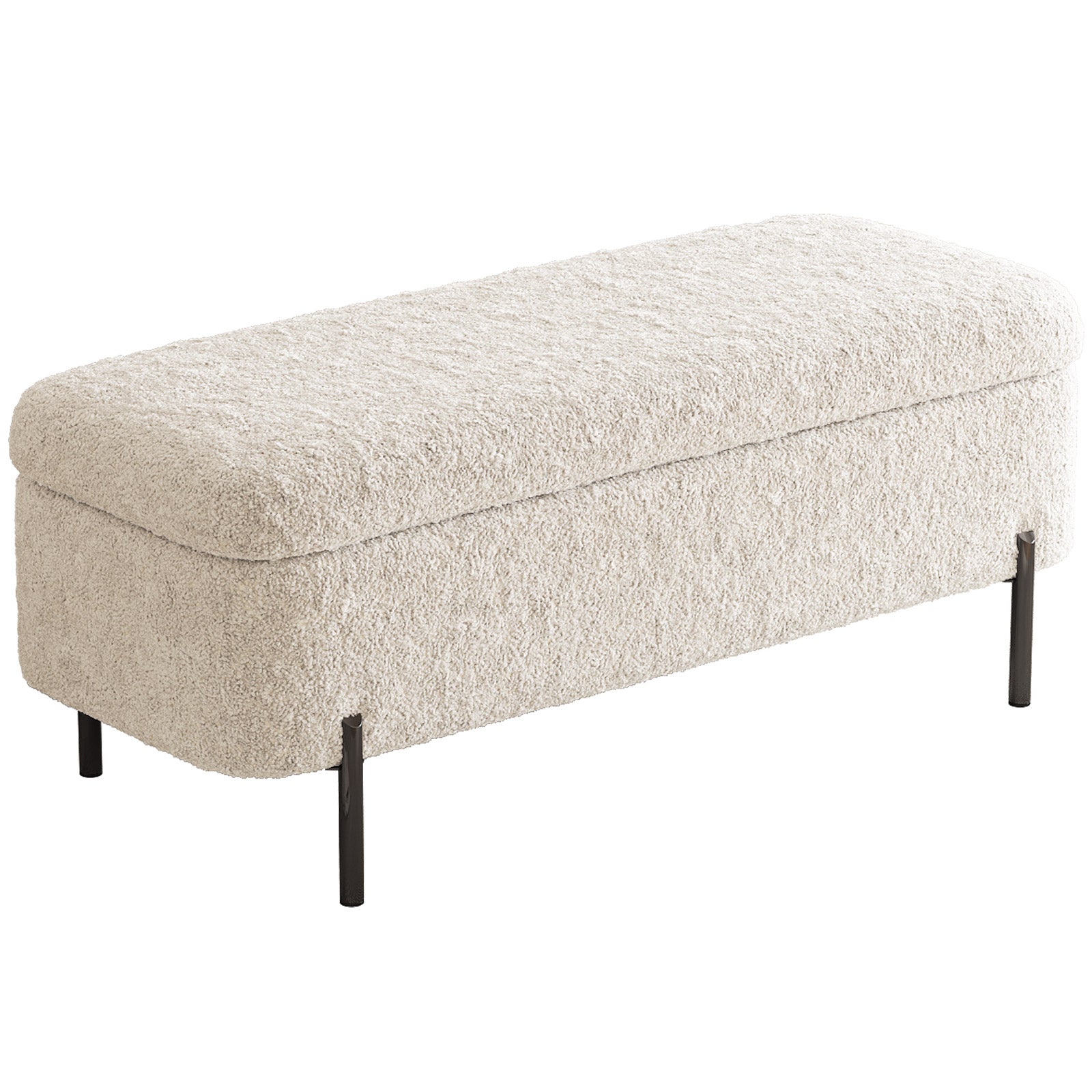 Guyii 47.2" Beige Storage Ottoman Bench – Modern Upholstered Long Bench with Hidden Storage for Bedroom & Entryway