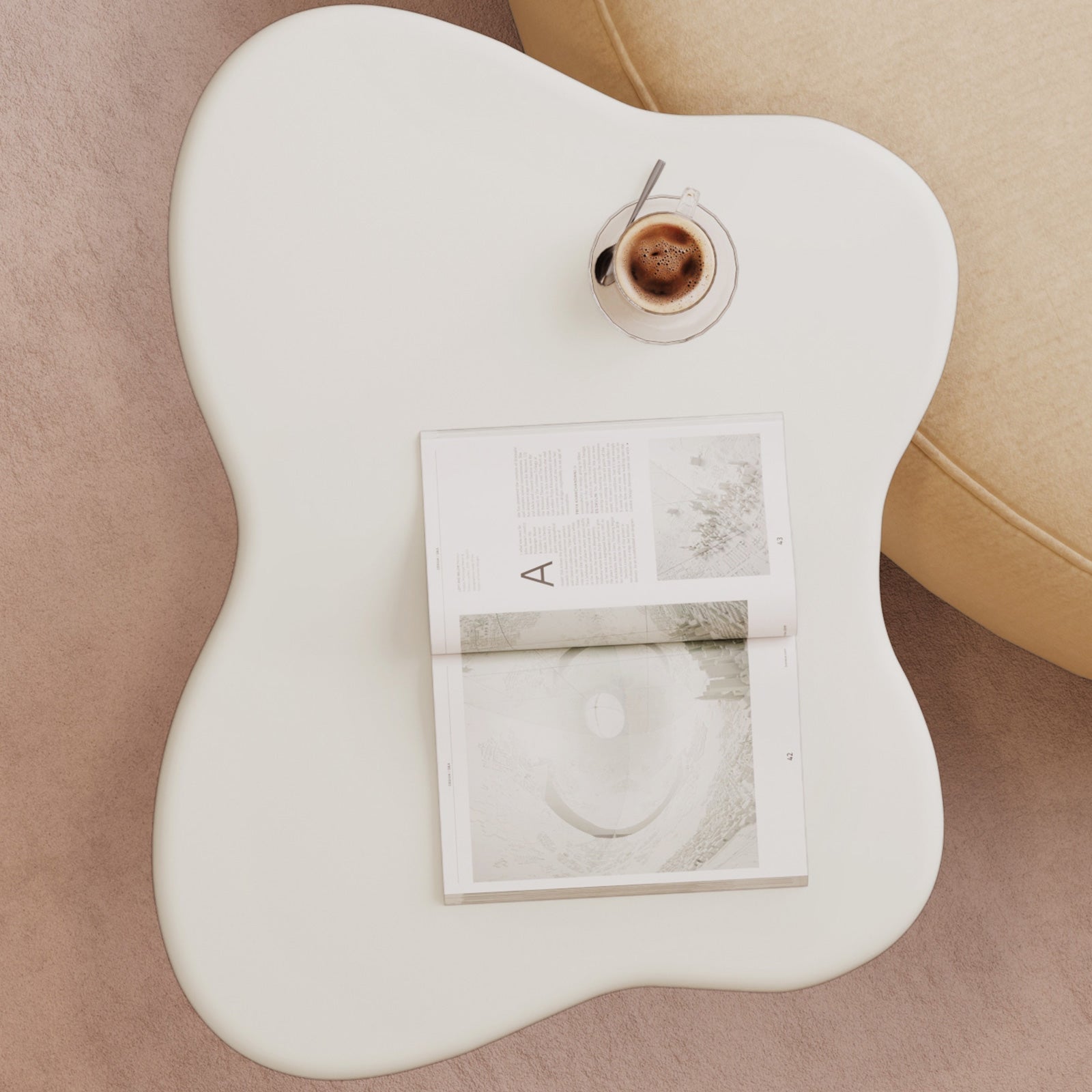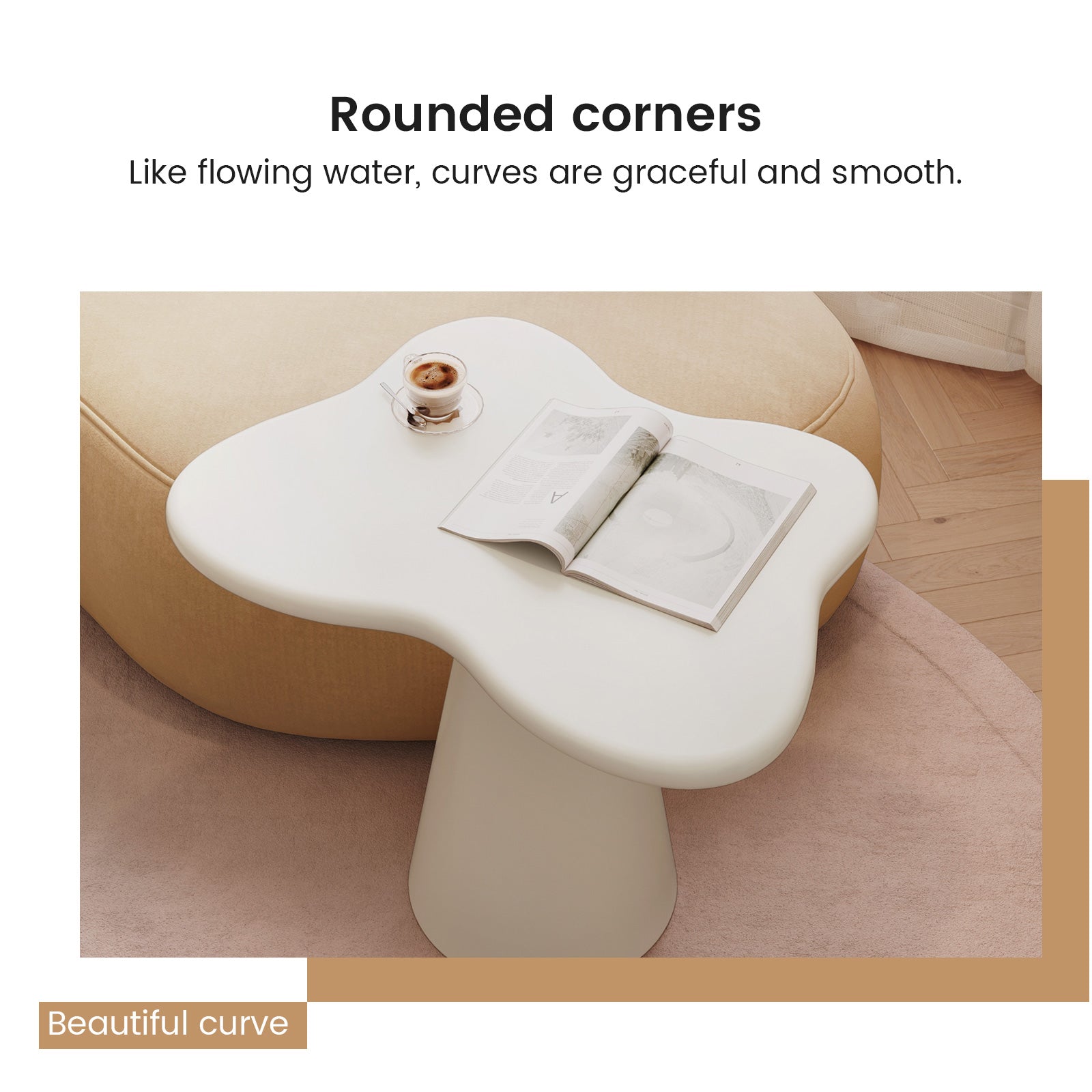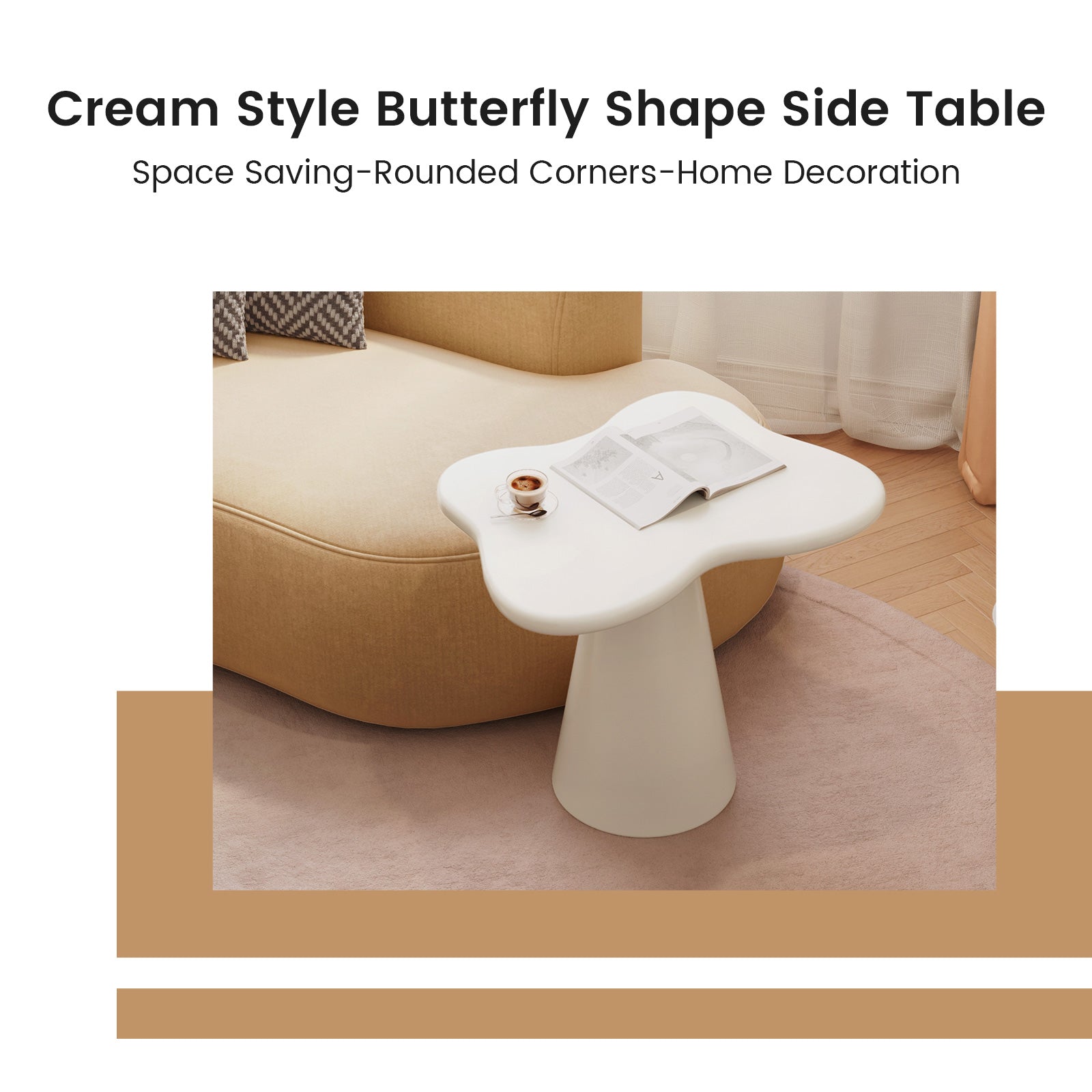 Guyii Cream White Butterfly-Shaped Side Table – Modern End Table with Wide Base, Round Corners, and Easy Assembly for Living Room & Bedroom|GY18991HW-UK