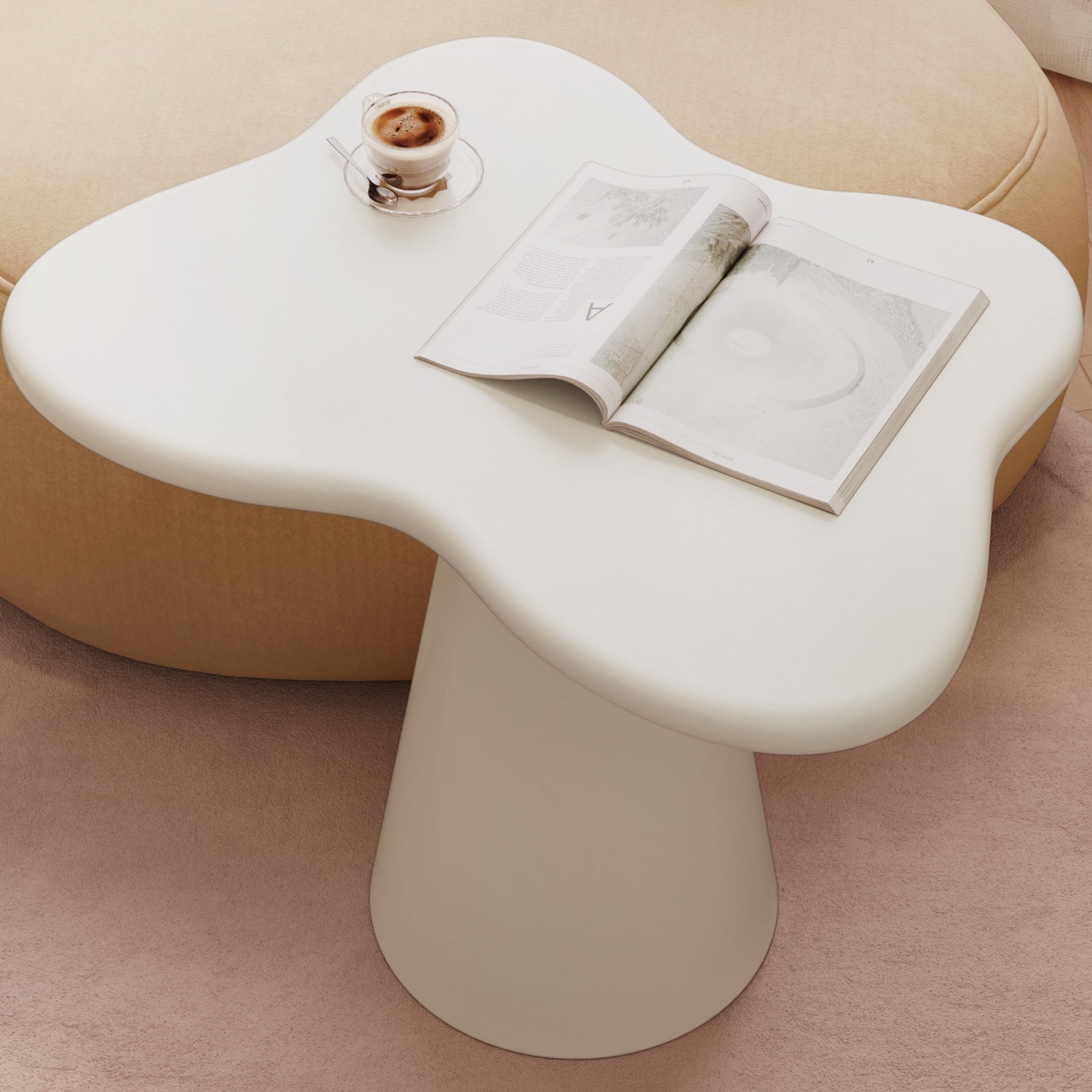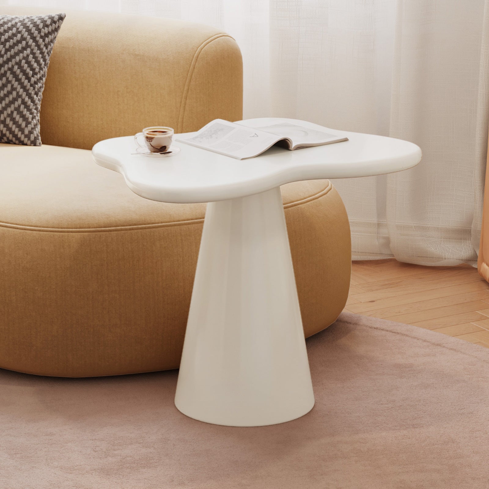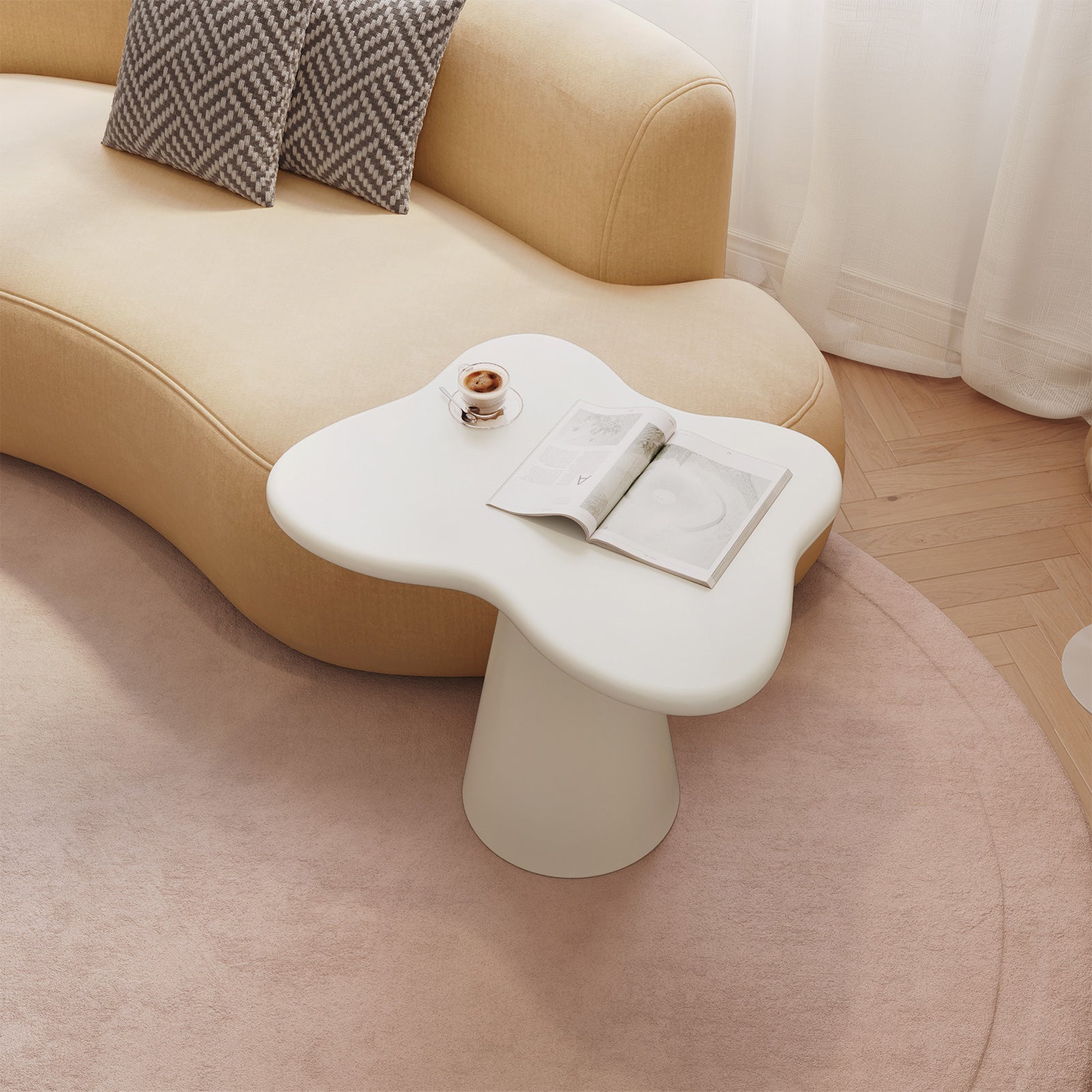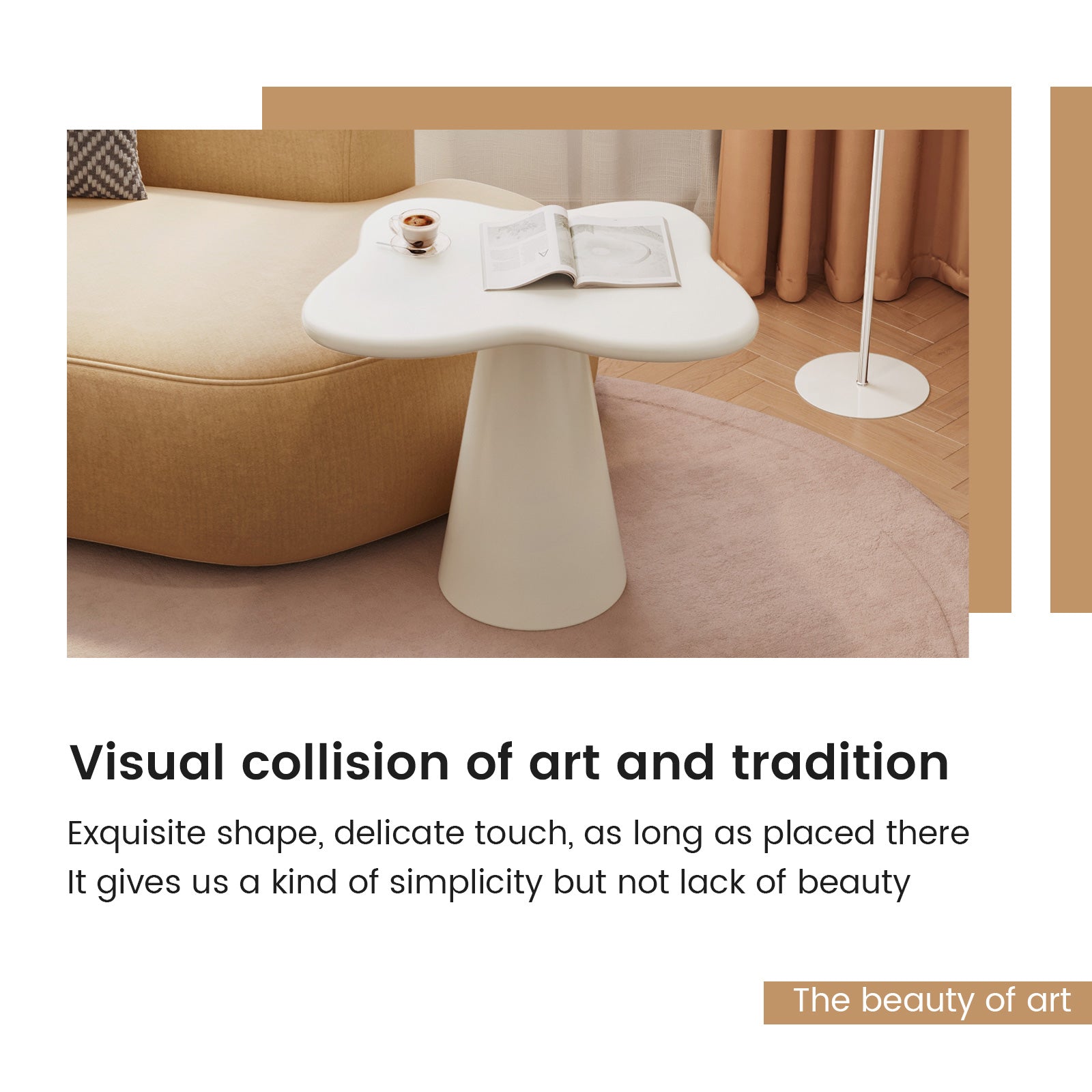 Guyii Cream White Butterfly-Shaped Side Table – Modern End Table with Wide Base, Round Corners, and Easy Assembly for Living Room & Bedroom|GY18991HW-UK
