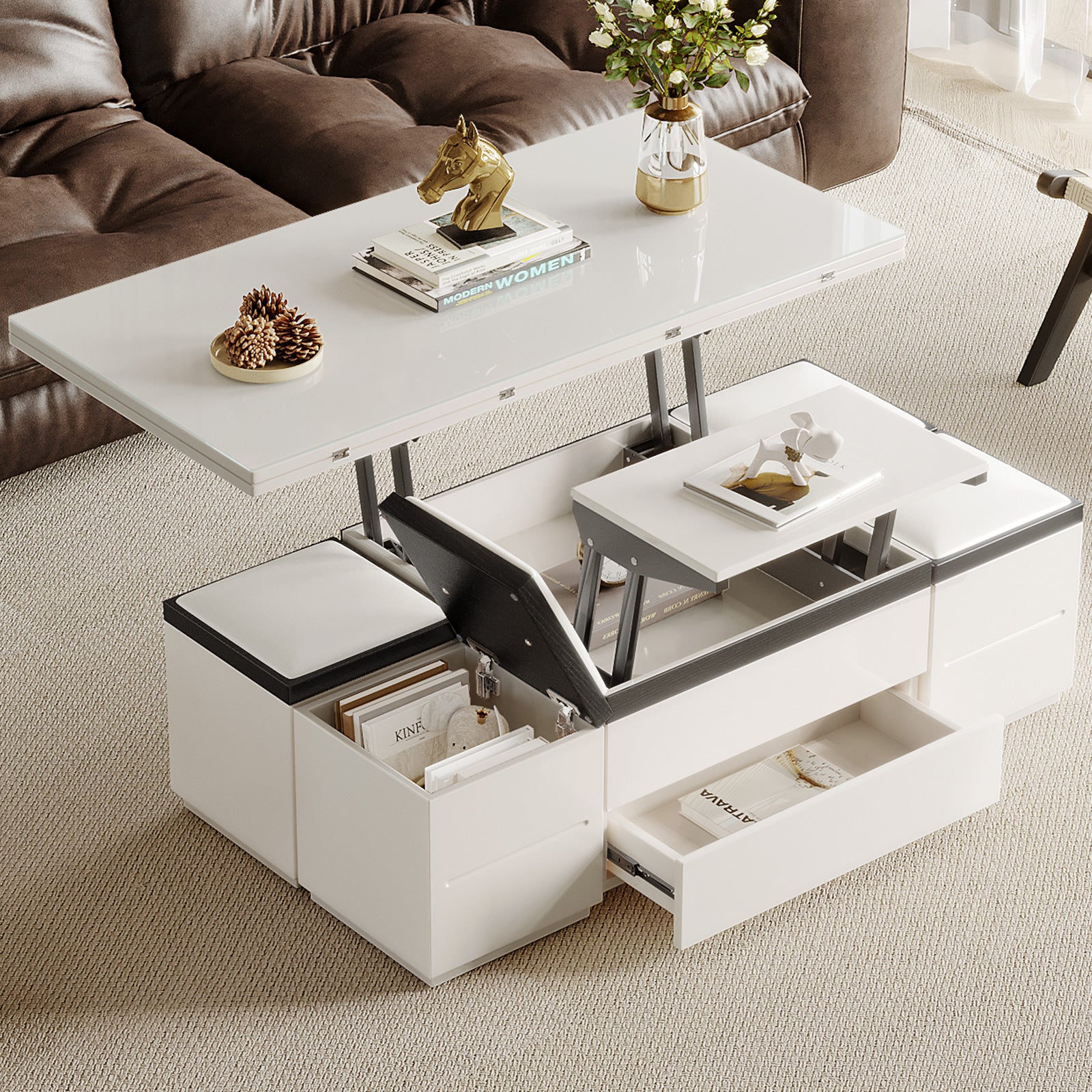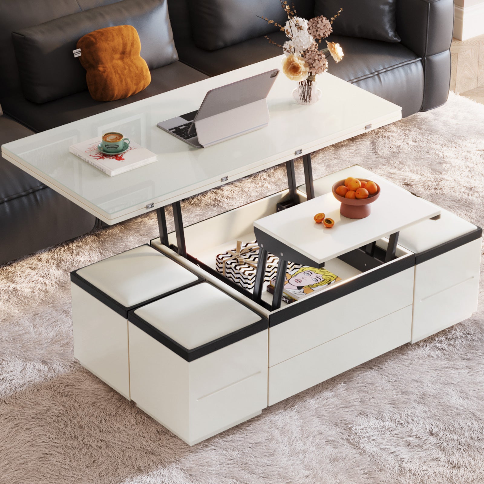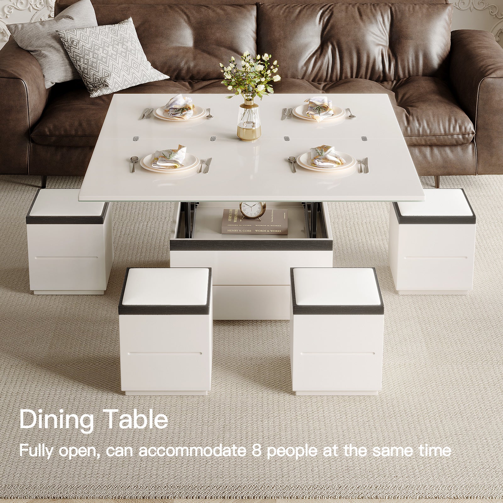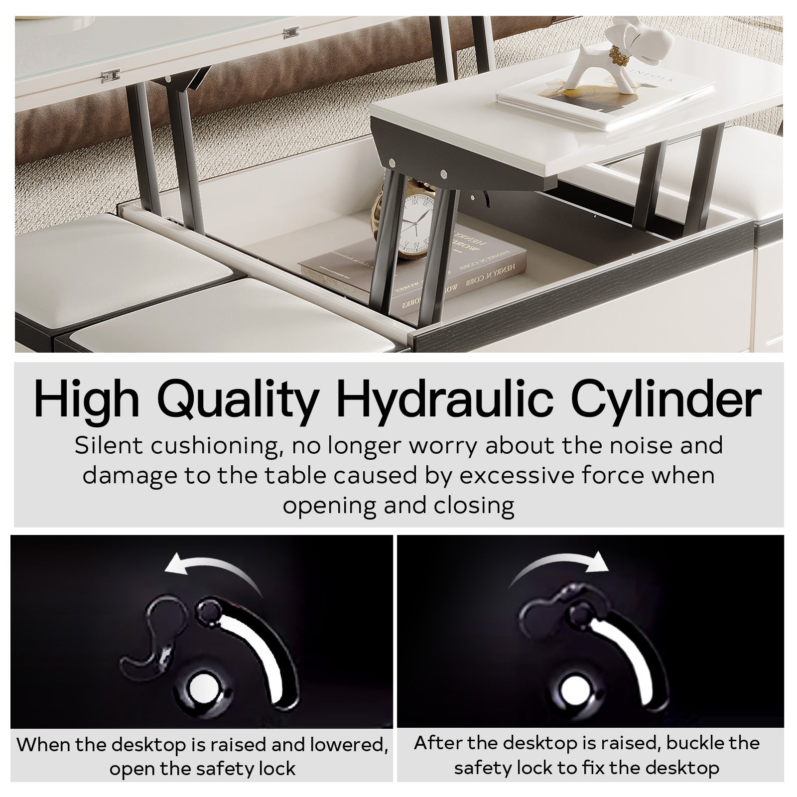 Guyii Extendable Coffee Table with 4 Storage Stools, Multifunctional Lift Top Folding Dining Table for Living Room|G520-UK
