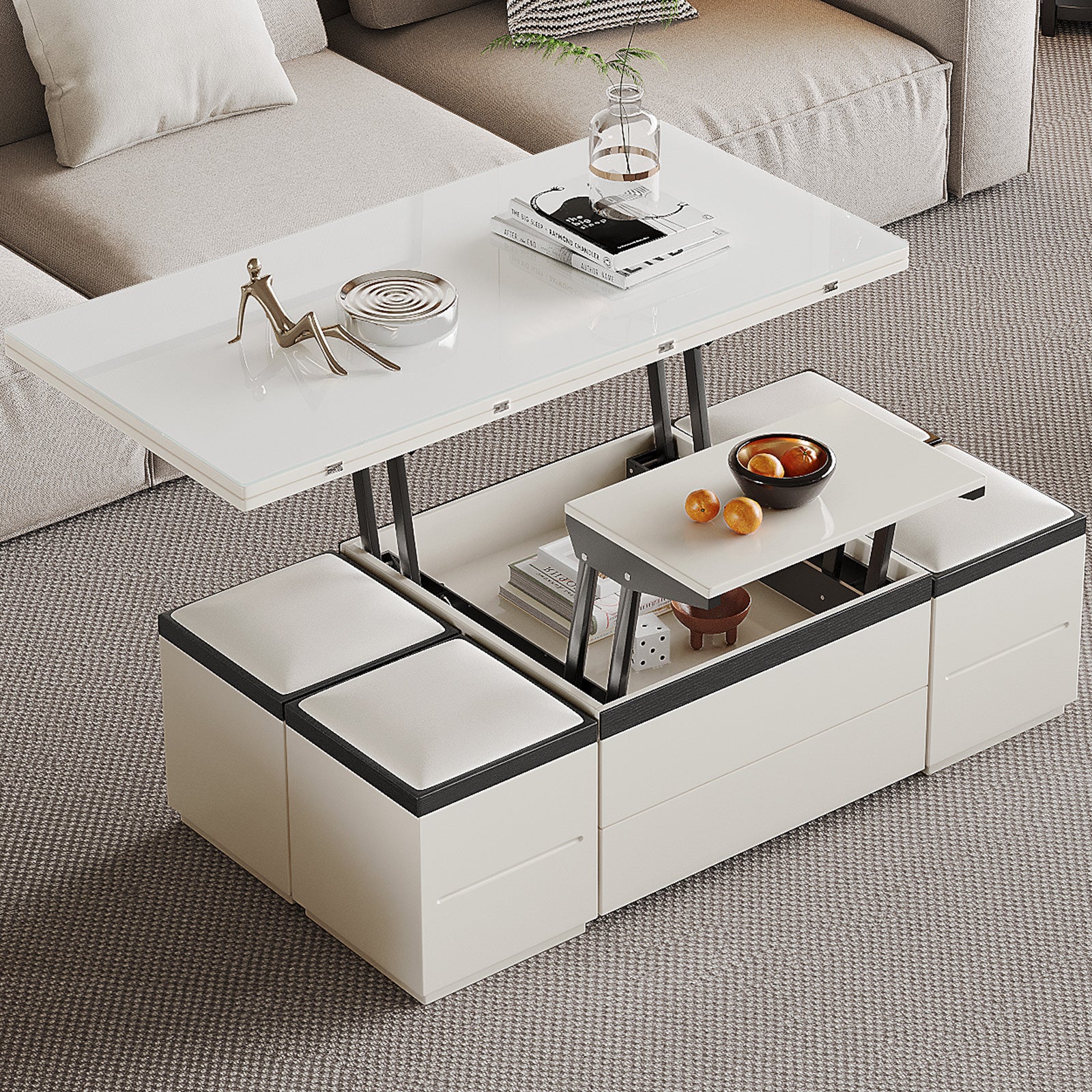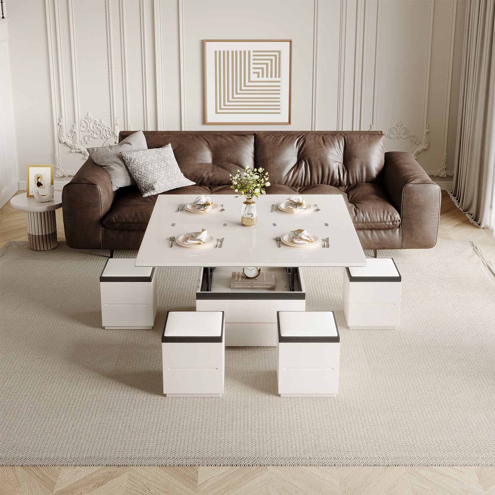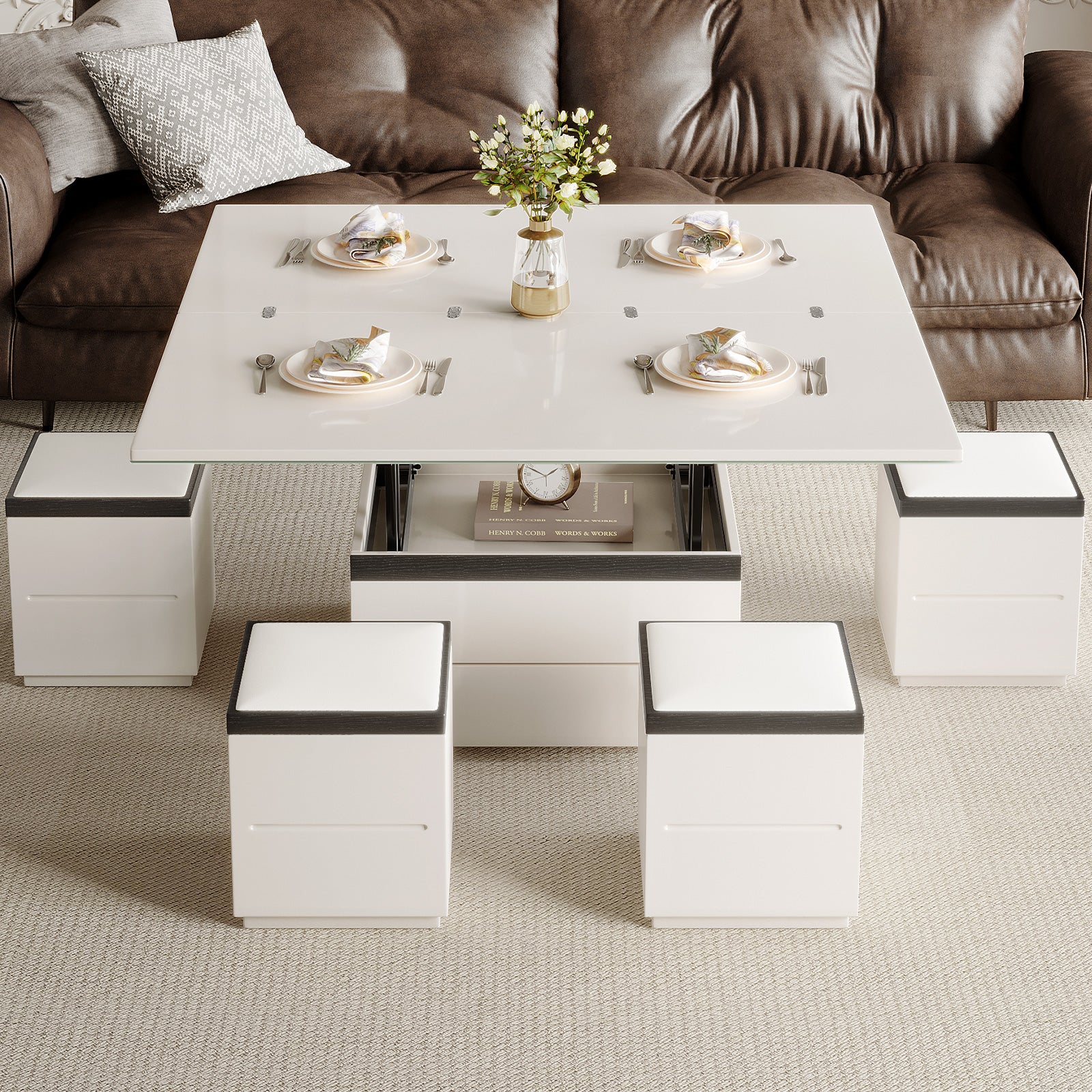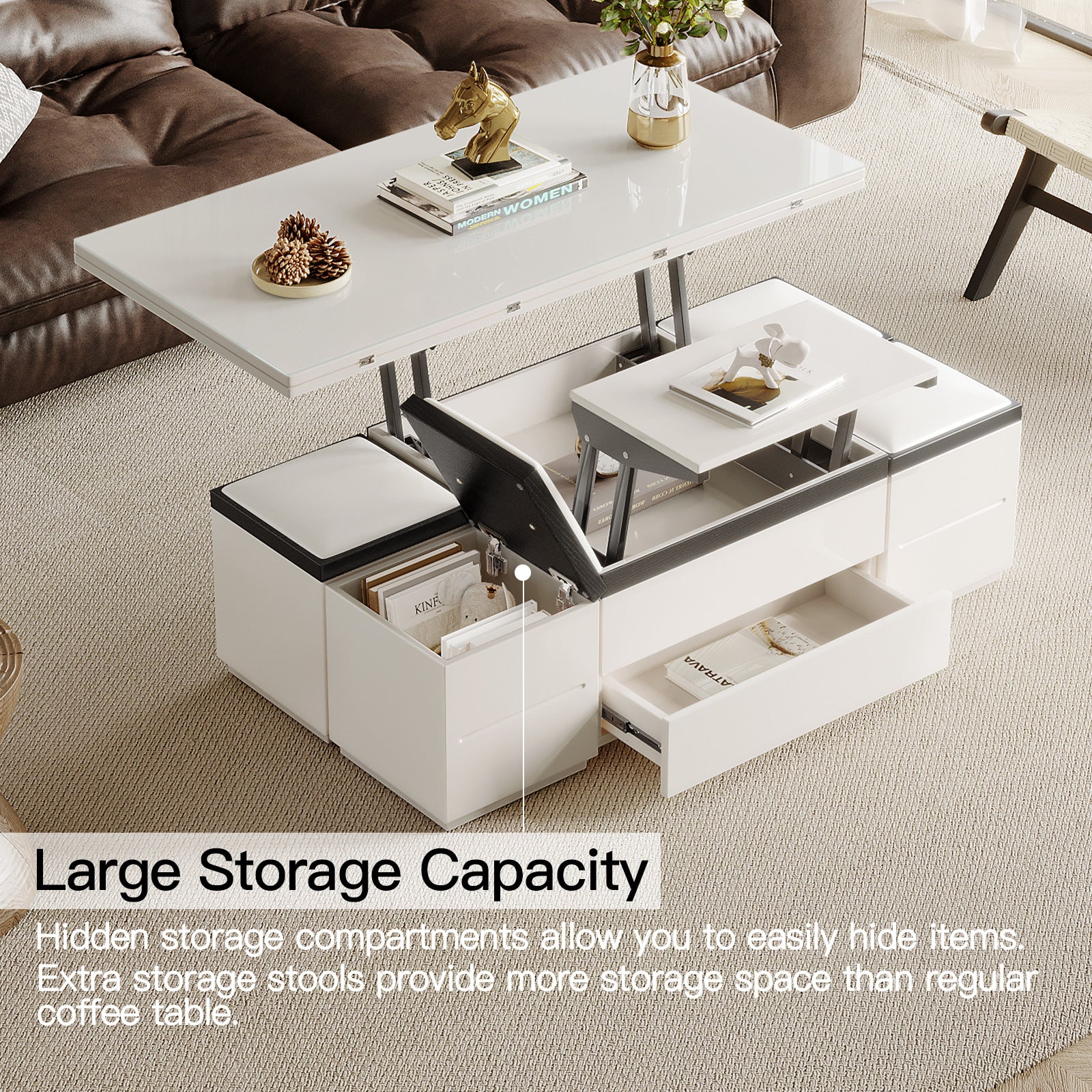 Guyii Extendable Coffee Table with 4 Storage Stools, Multifunctional Lift Top Folding Dining Table for Living Room|G520-UK