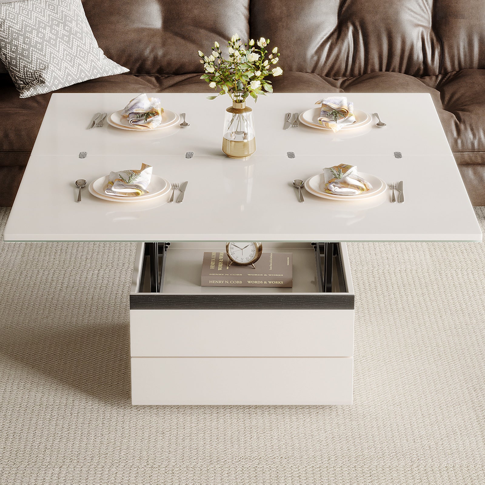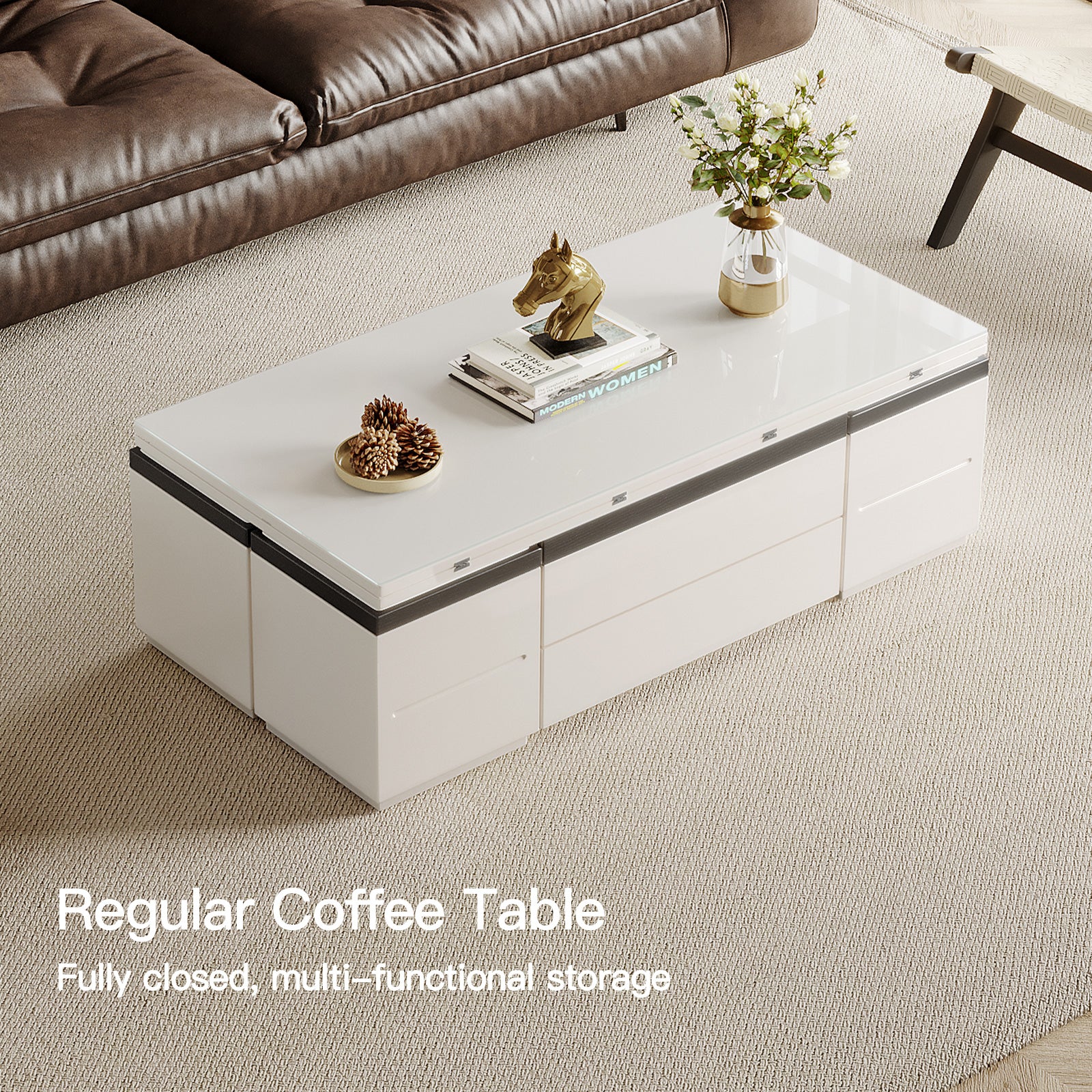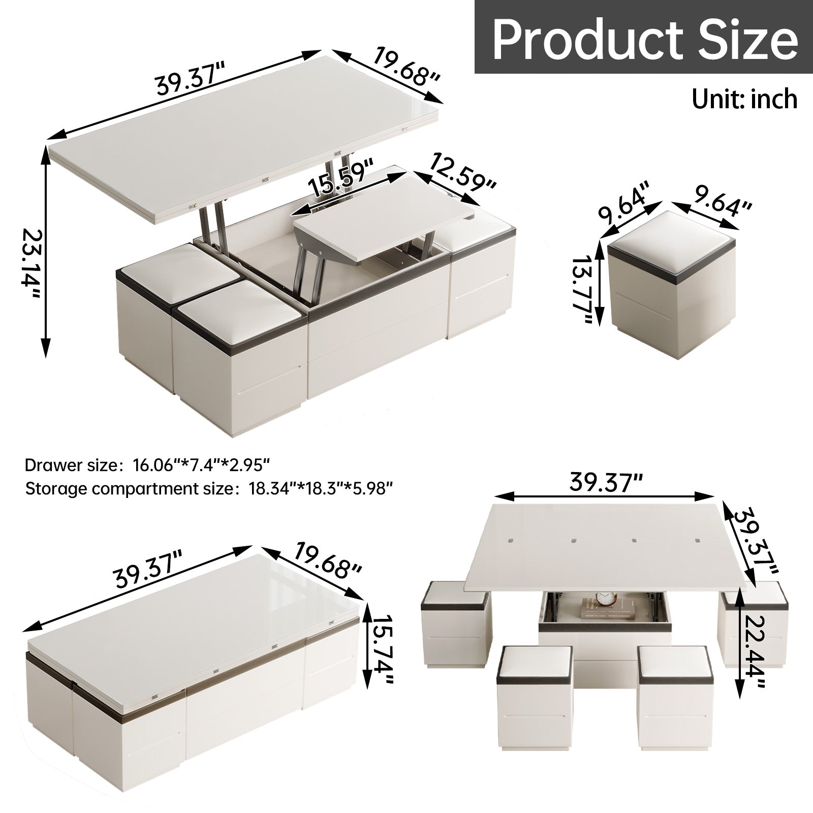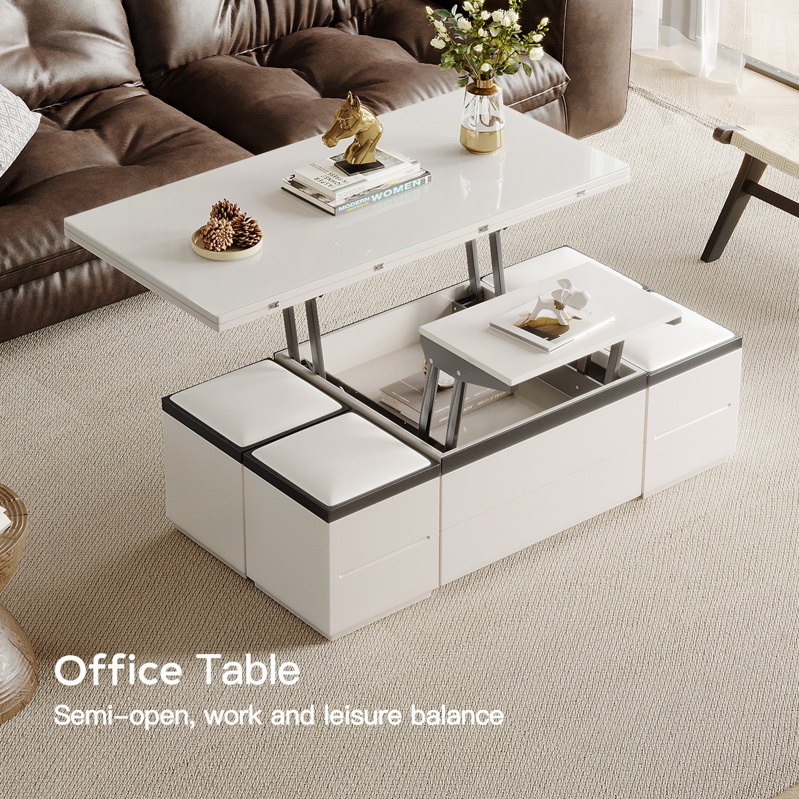 Guyii Extendable Coffee Table with 4 Storage Stools, Multifunctional Lift Top Folding Dining Table for Living Room|G520-UK