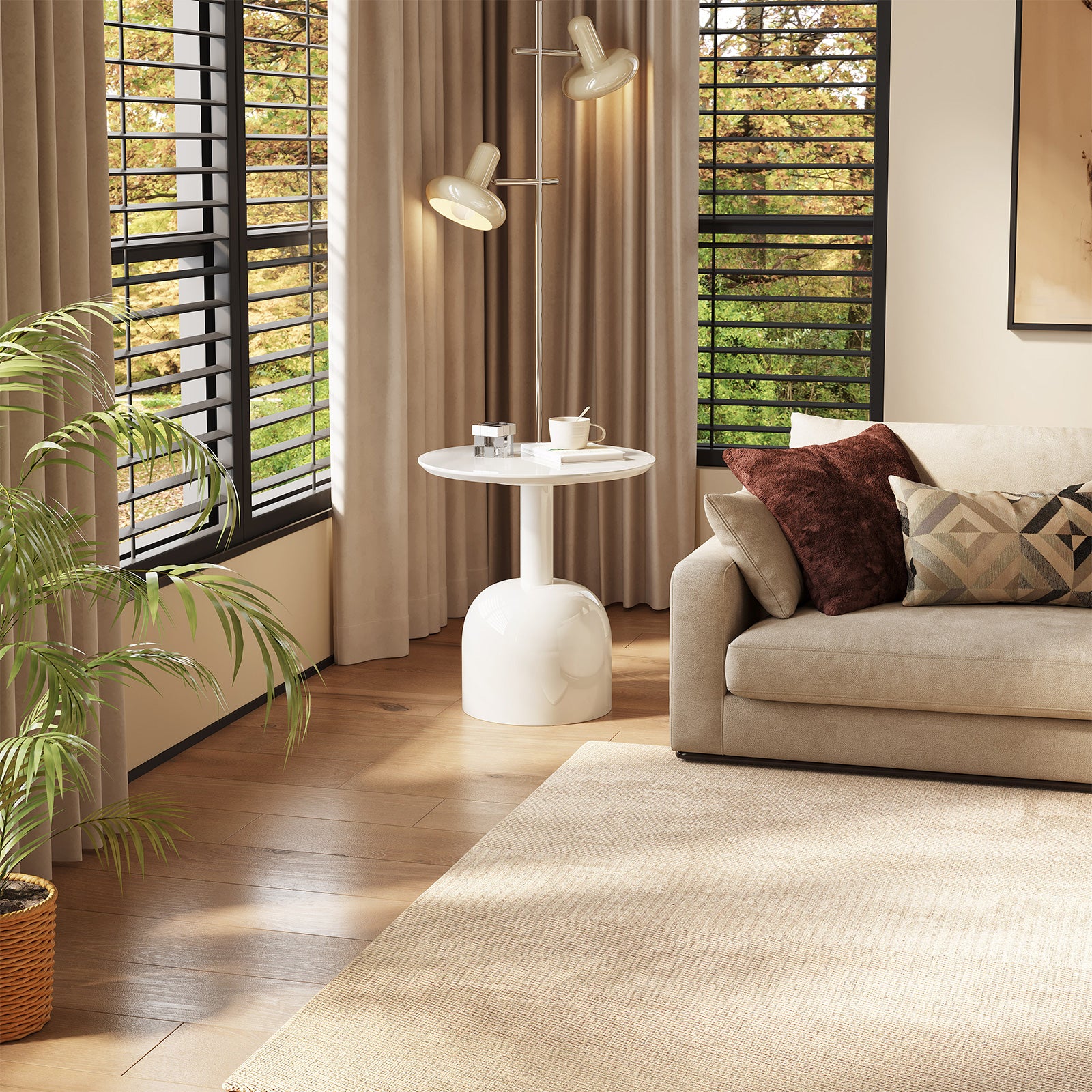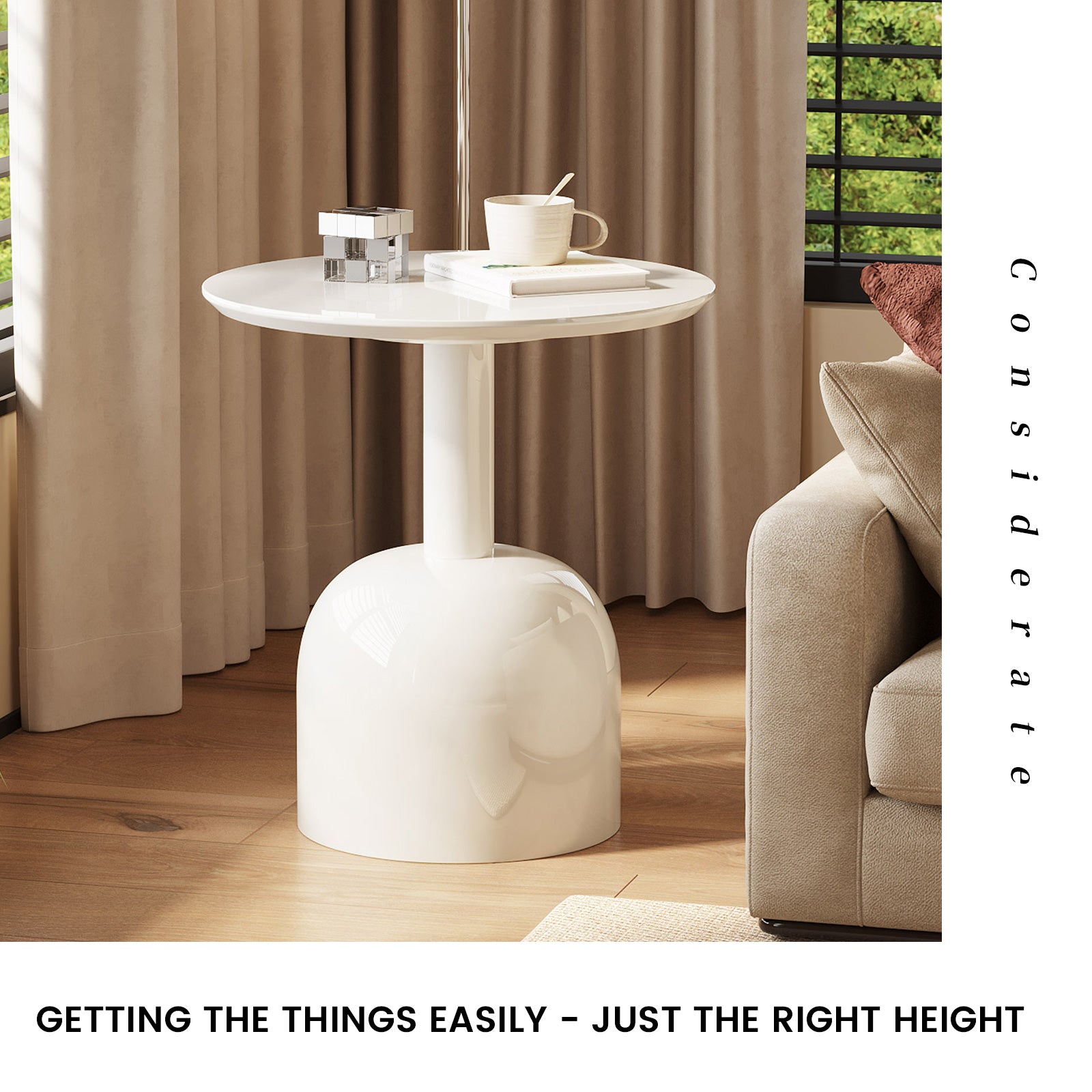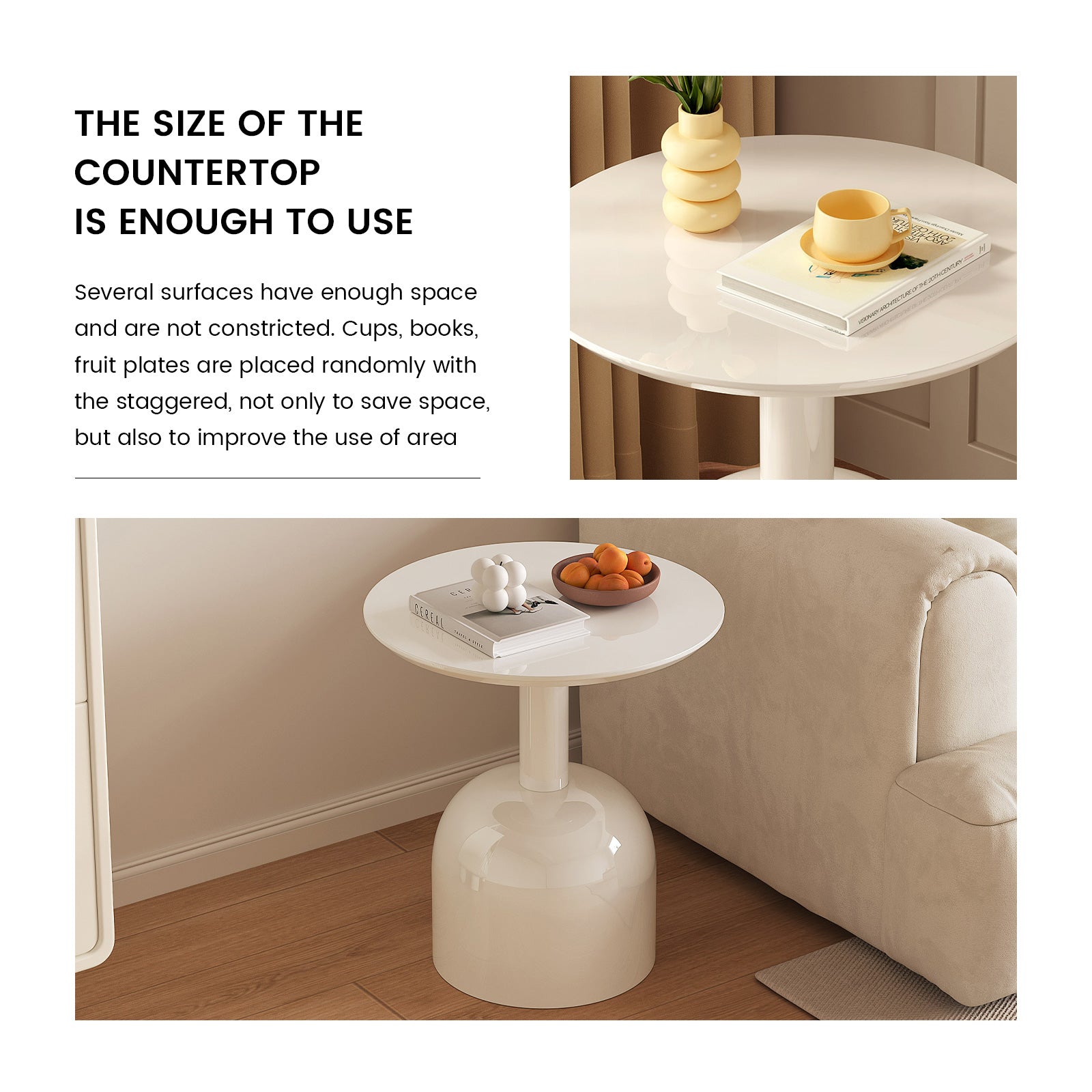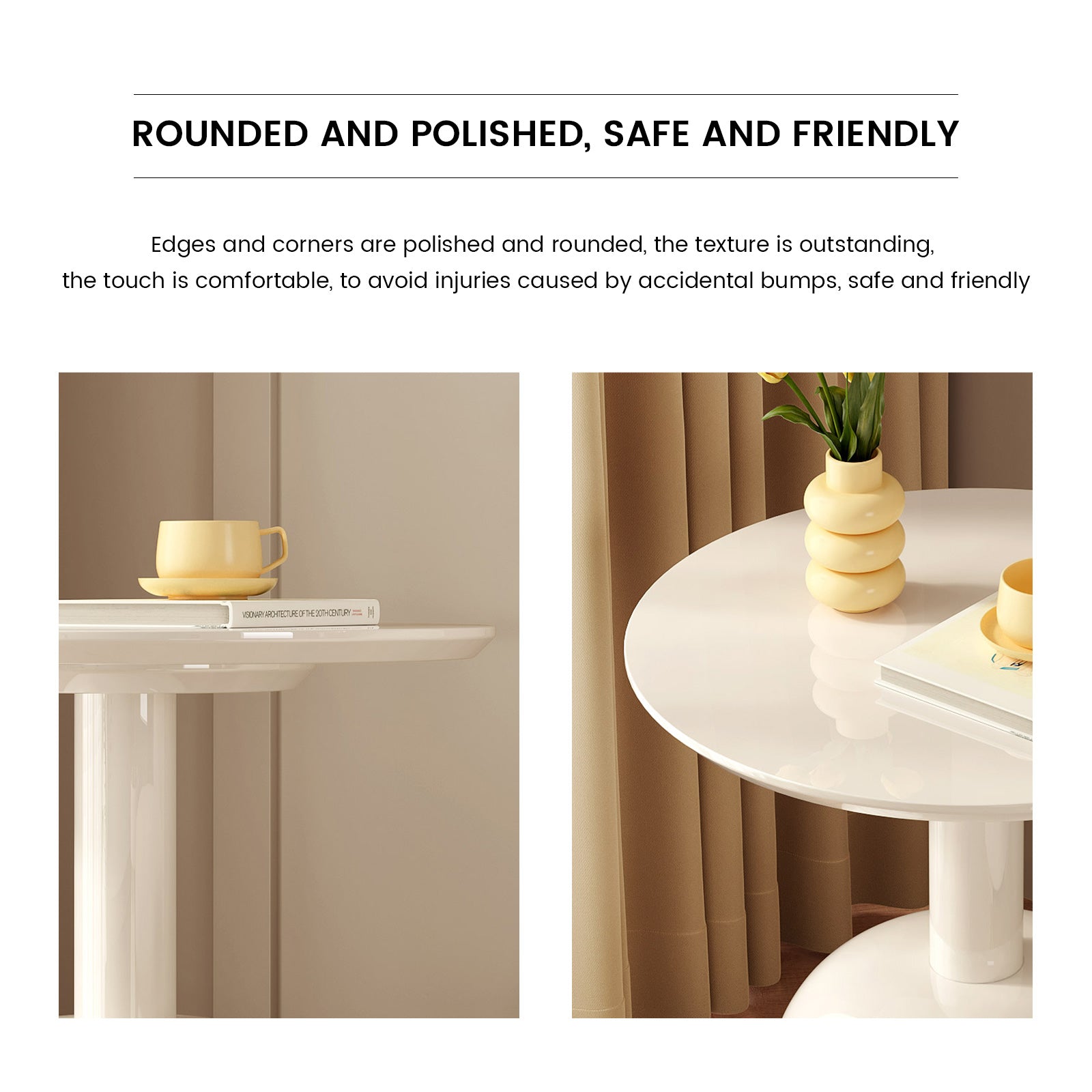 Elevate your space with the Guyii 24.8" Round Side Table, featuring a refined Cream White finish that complements minimalist décor. Its smooth, rounded edges prioritize safety, while distinctive wooden ball connectors add a subtle, elegant detail. Constructed from high-density MDF with a water-resistant coating, this table offers exceptional stability through its broad base and reinforced design. Compact yet versatile, it functions seamlessly as a sofa side table, nightstand, outdoor drink table, or plant stand—perfect for enhancing small spaces with both style and practicality.