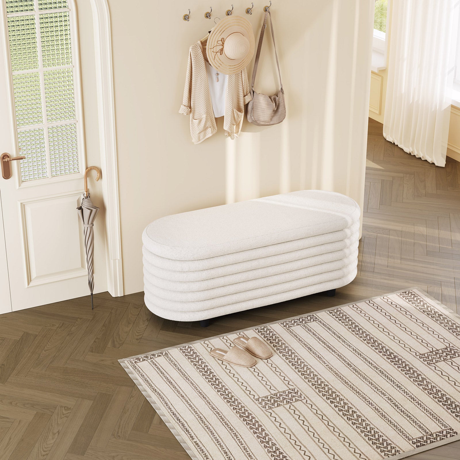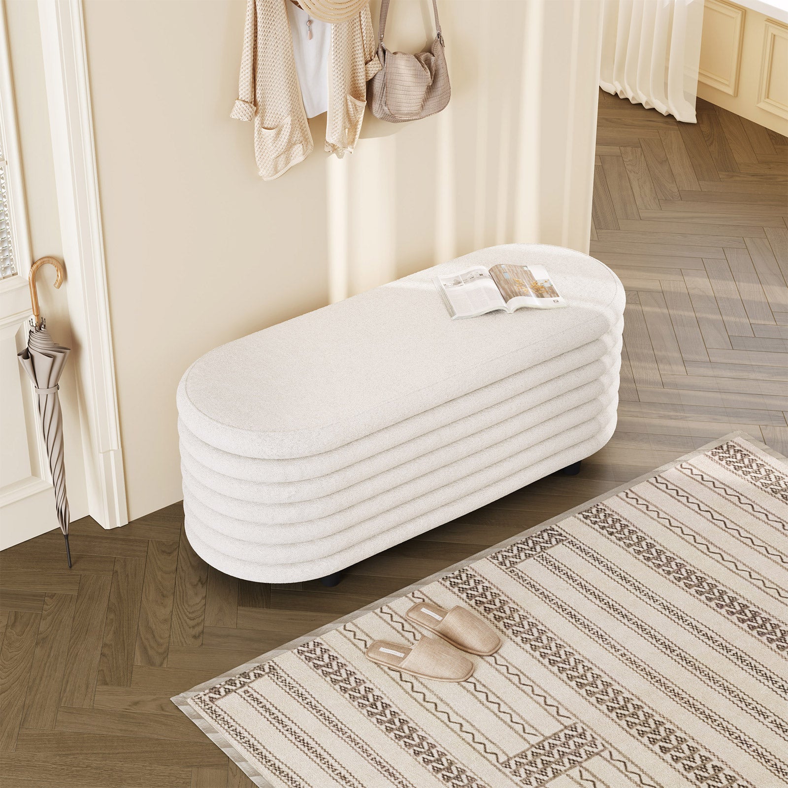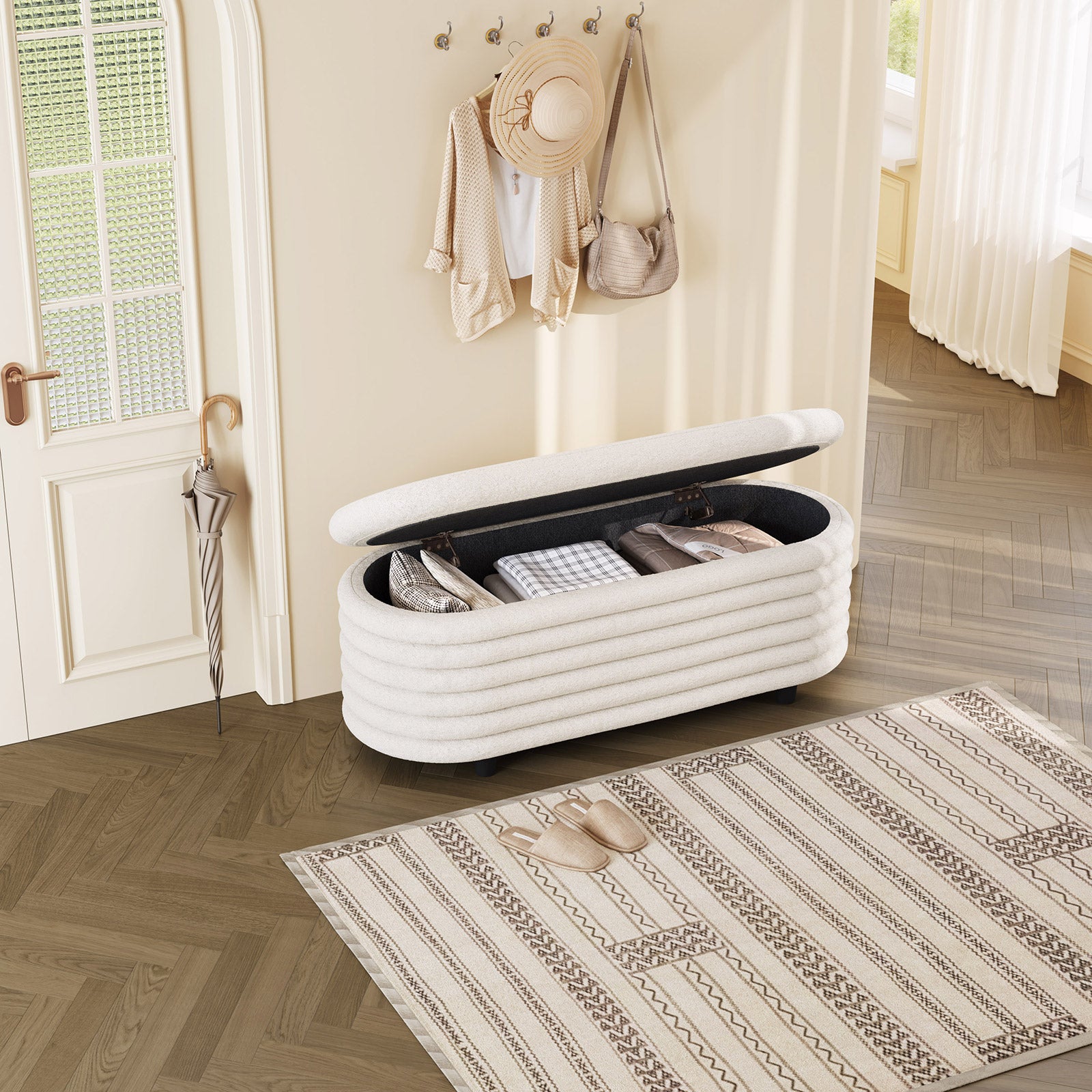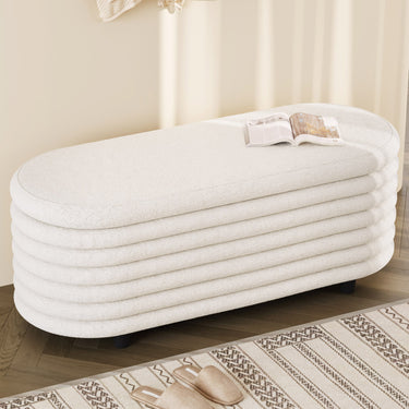 Guyii 45.9" Storage Ottoman Bench – Modern Beige Bedroom Footrest, Entryway Shoe Bench with Hidden Storage