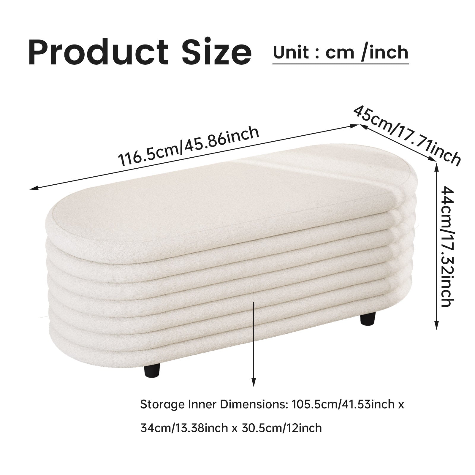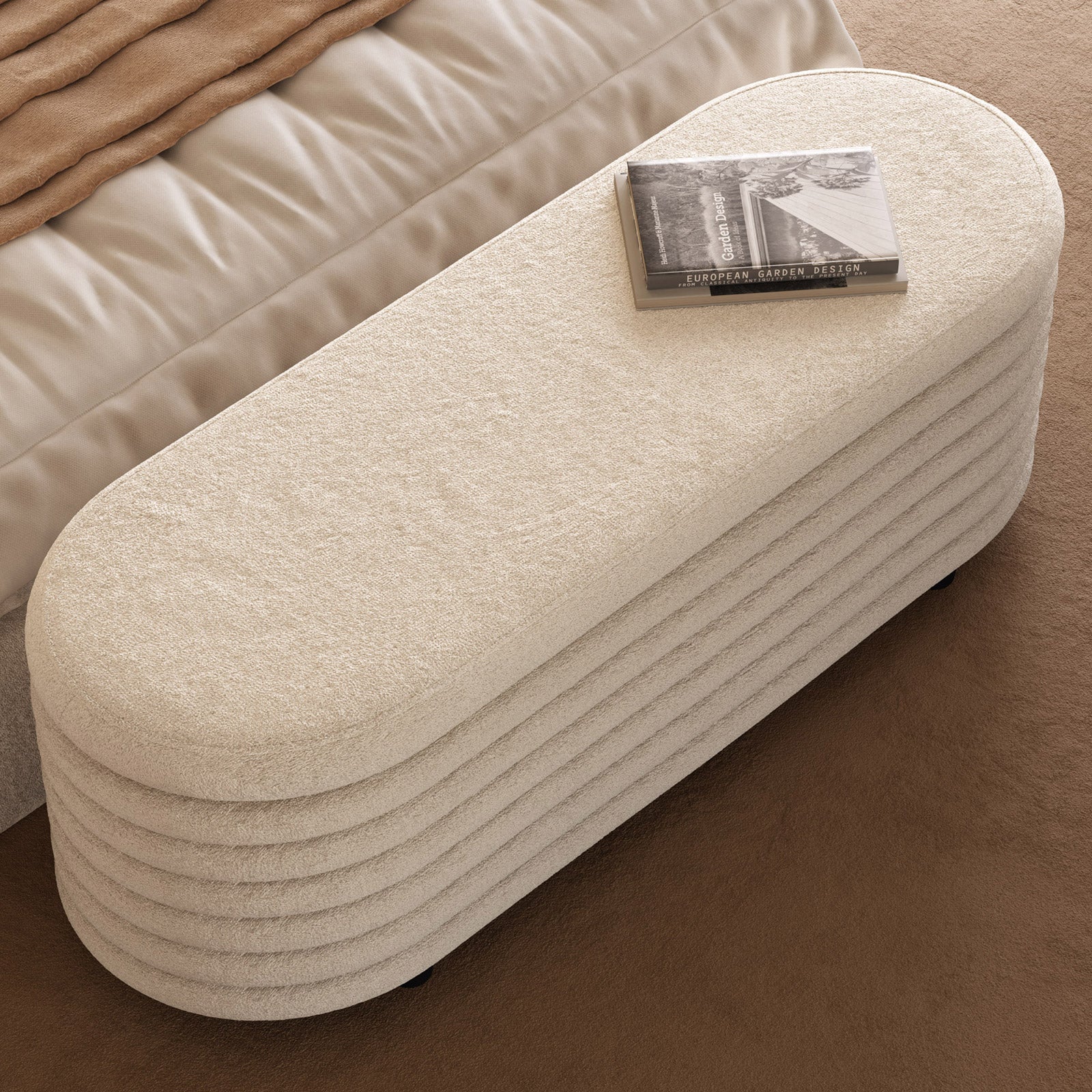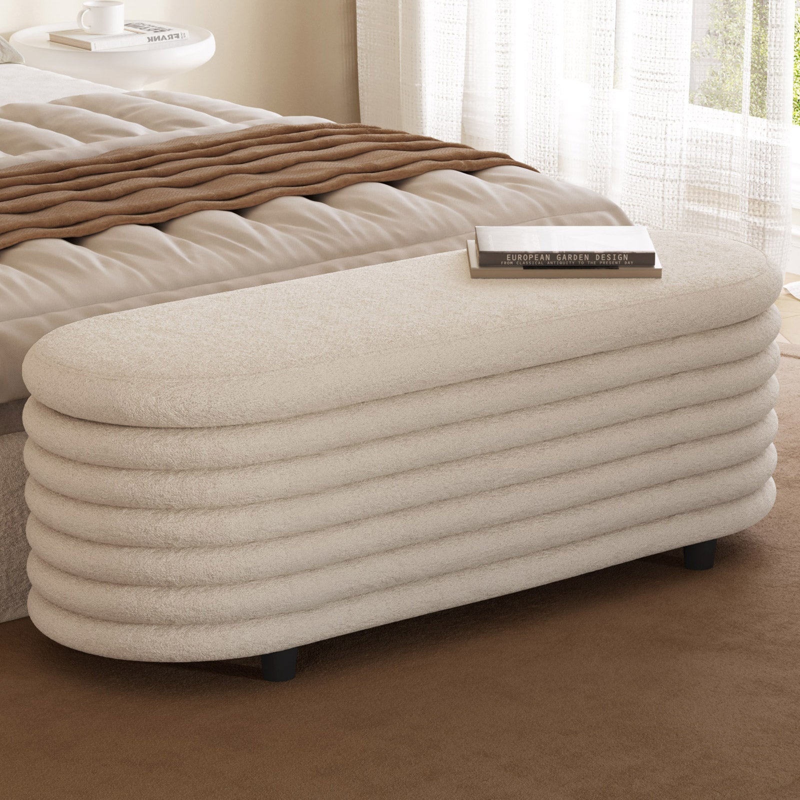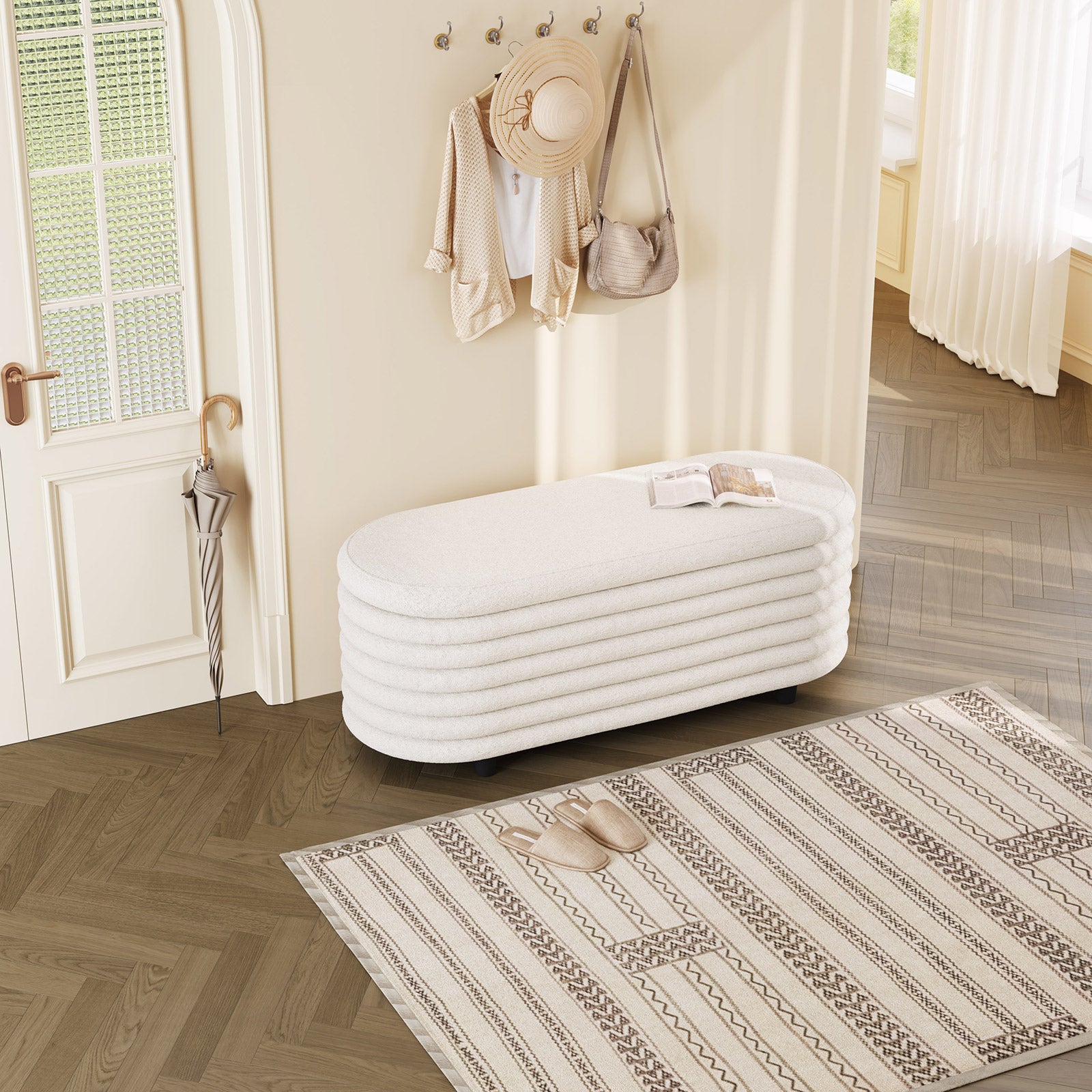 Guyii 45.9" Storage Ottoman Bench – Modern Beige Bedroom Footrest, Entryway Shoe Bench with Hidden Storage