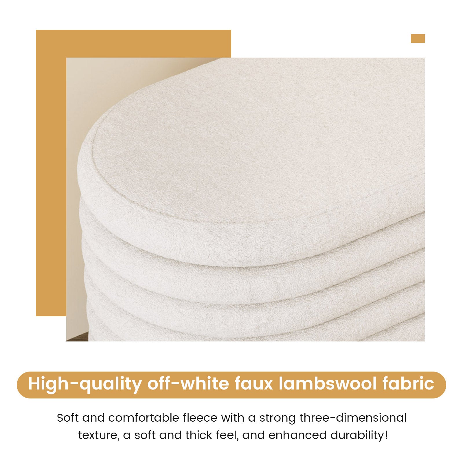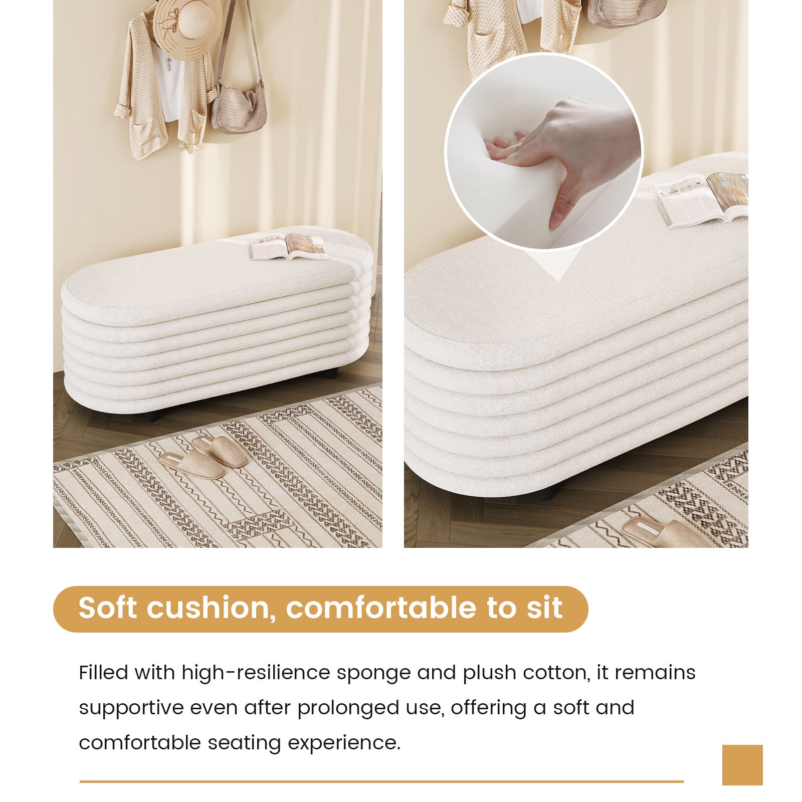 ✔ Cozy Ergonomic Design — Upholstered in plush faux lambswool in soothing beige, with high-density foam padding for lasting comfort as a shoe-changing stool, window seat, or footrest.