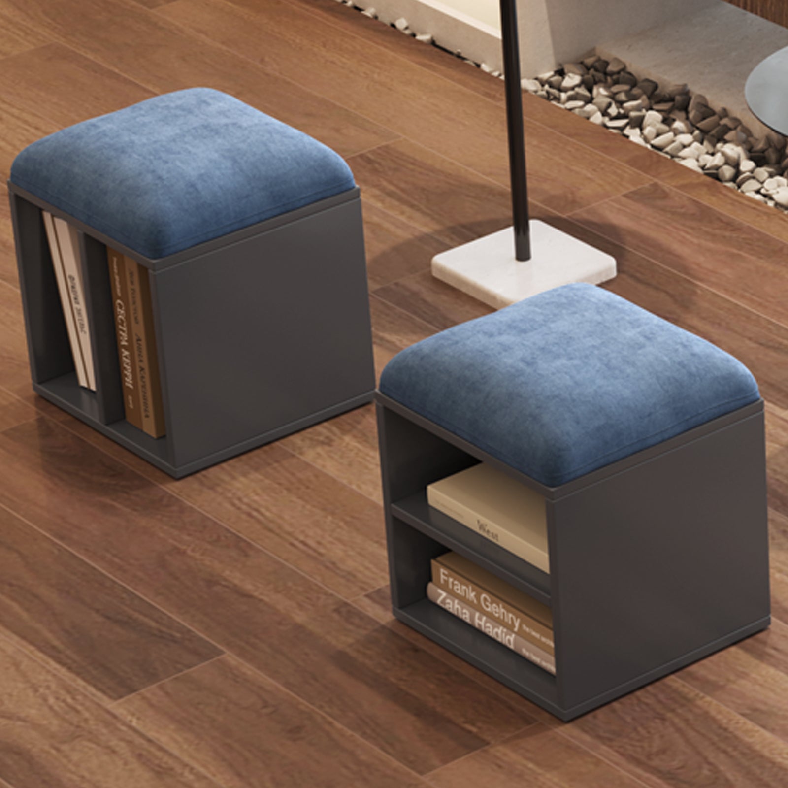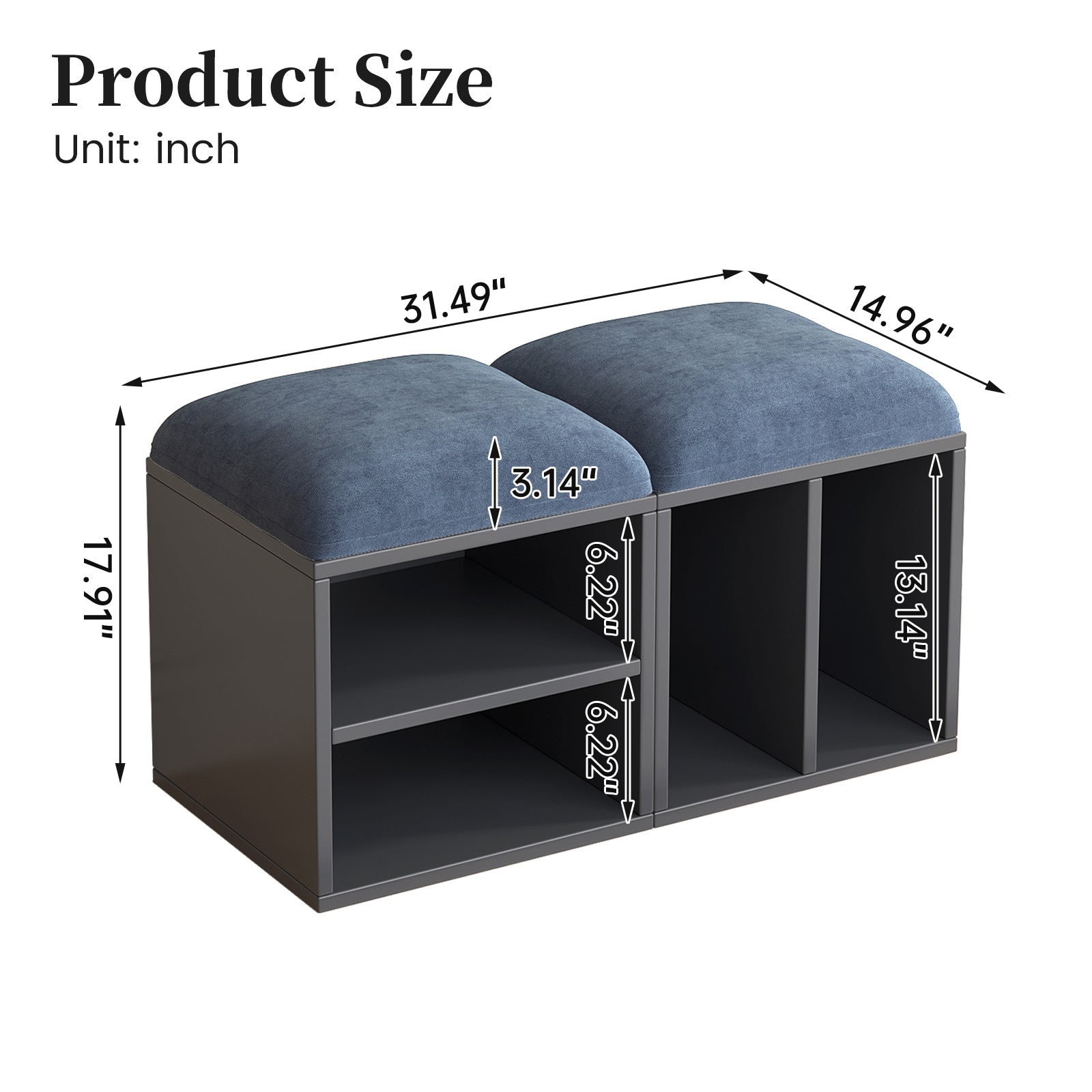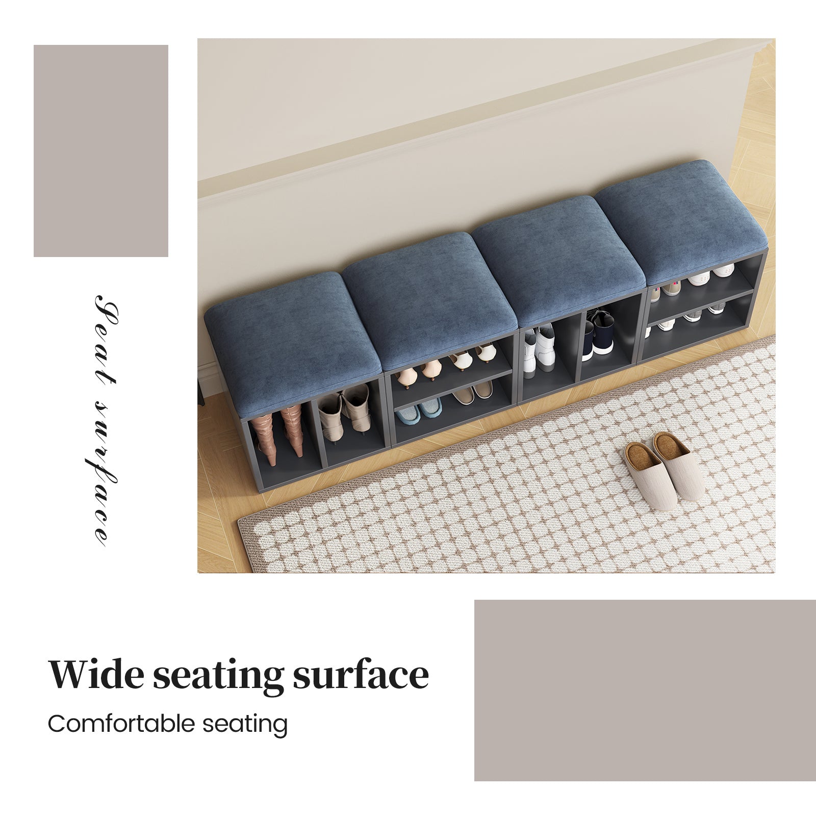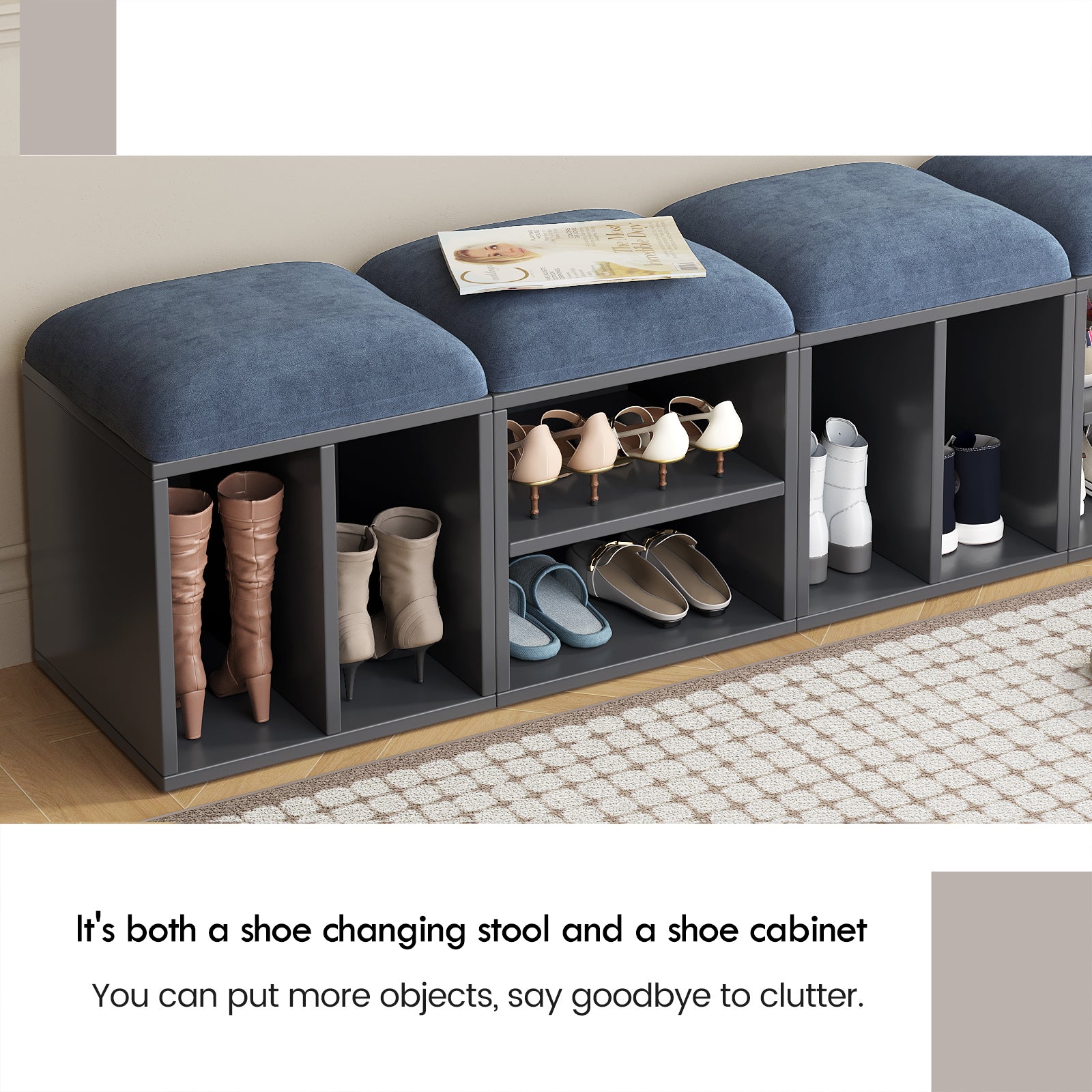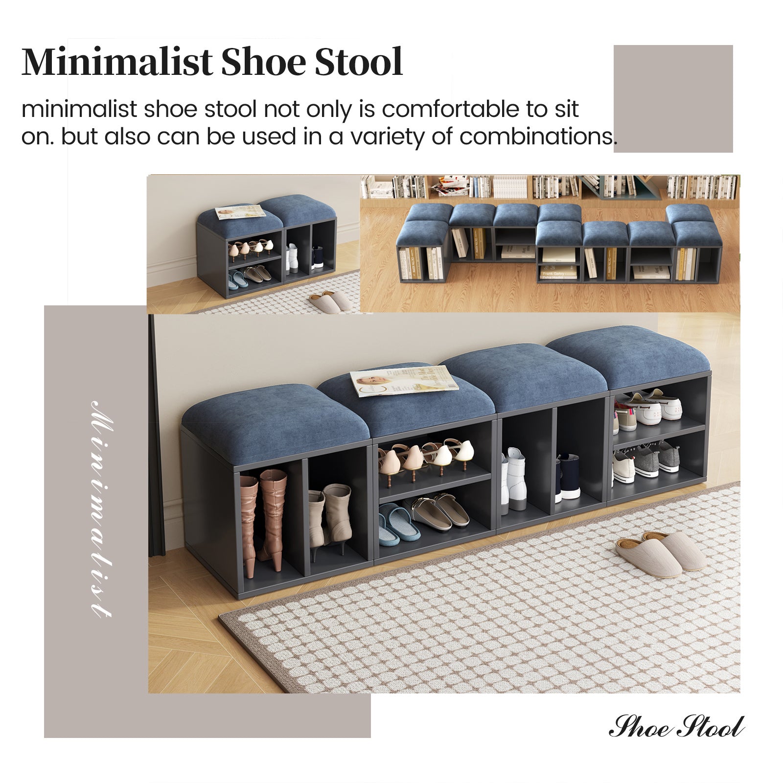 Guyii Velvet Shoe Stool with Padded Seat, Blue Entryway Stools with Storage, Multi-Functional Stool