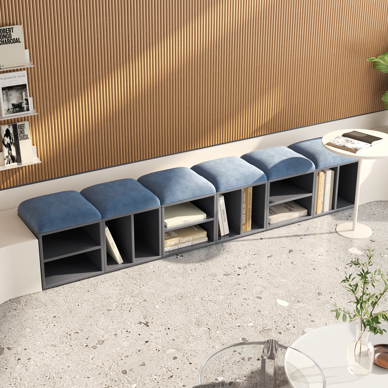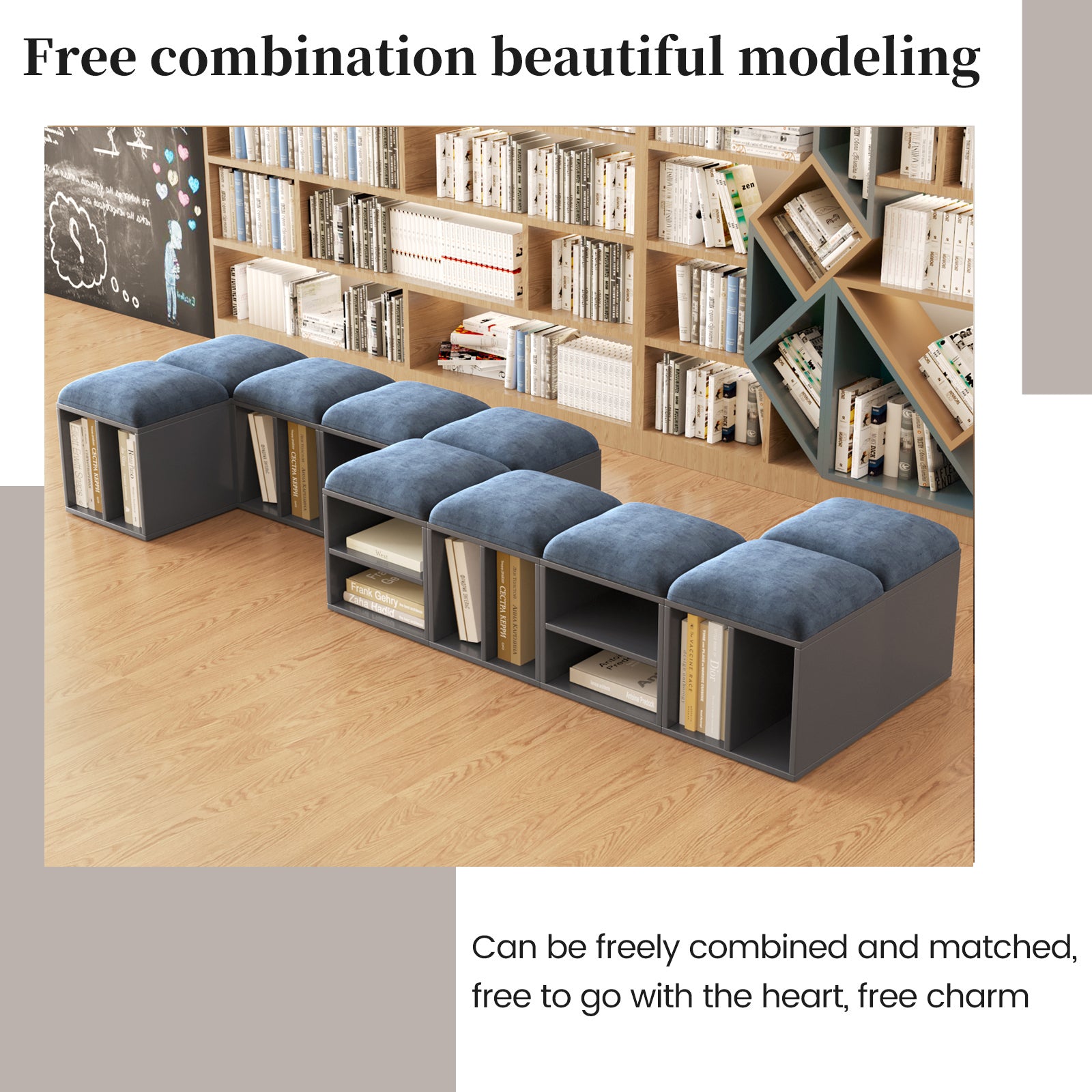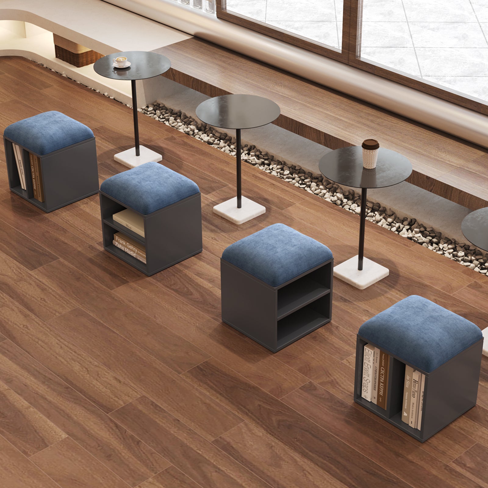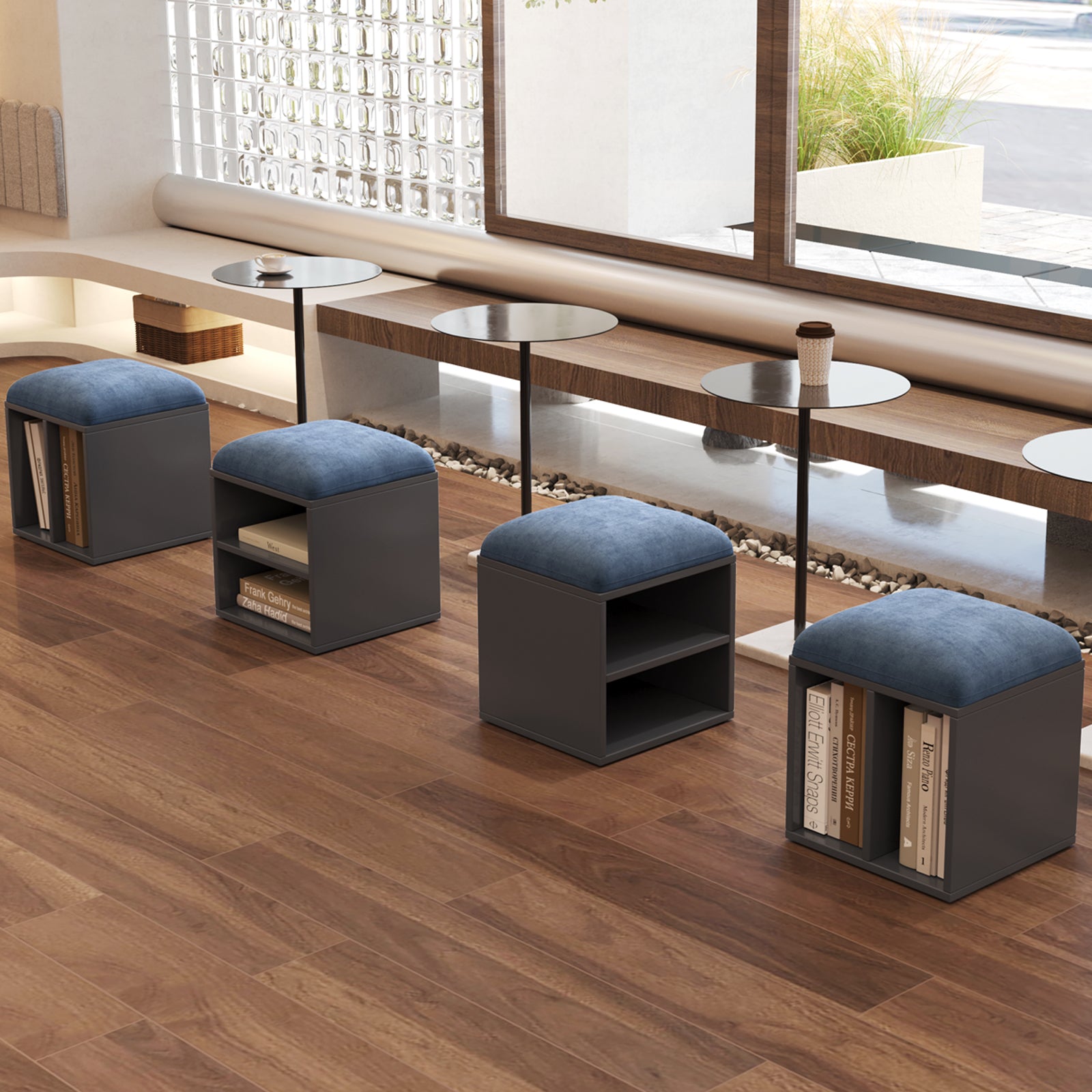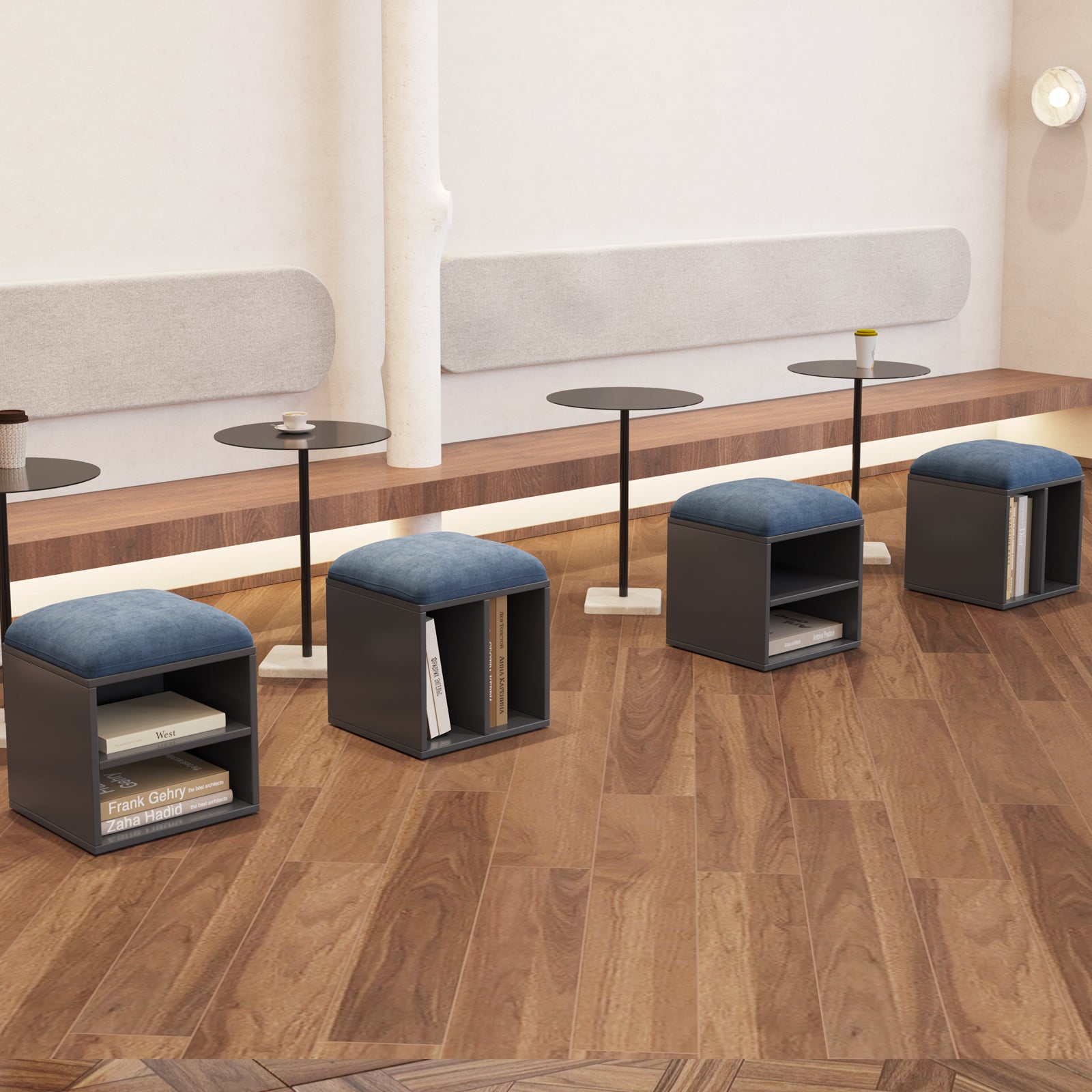 Guyii Velvet Shoe Stool with Padded Seat, Blue Entryway Stools with Storage, Multi-Functional Stool
